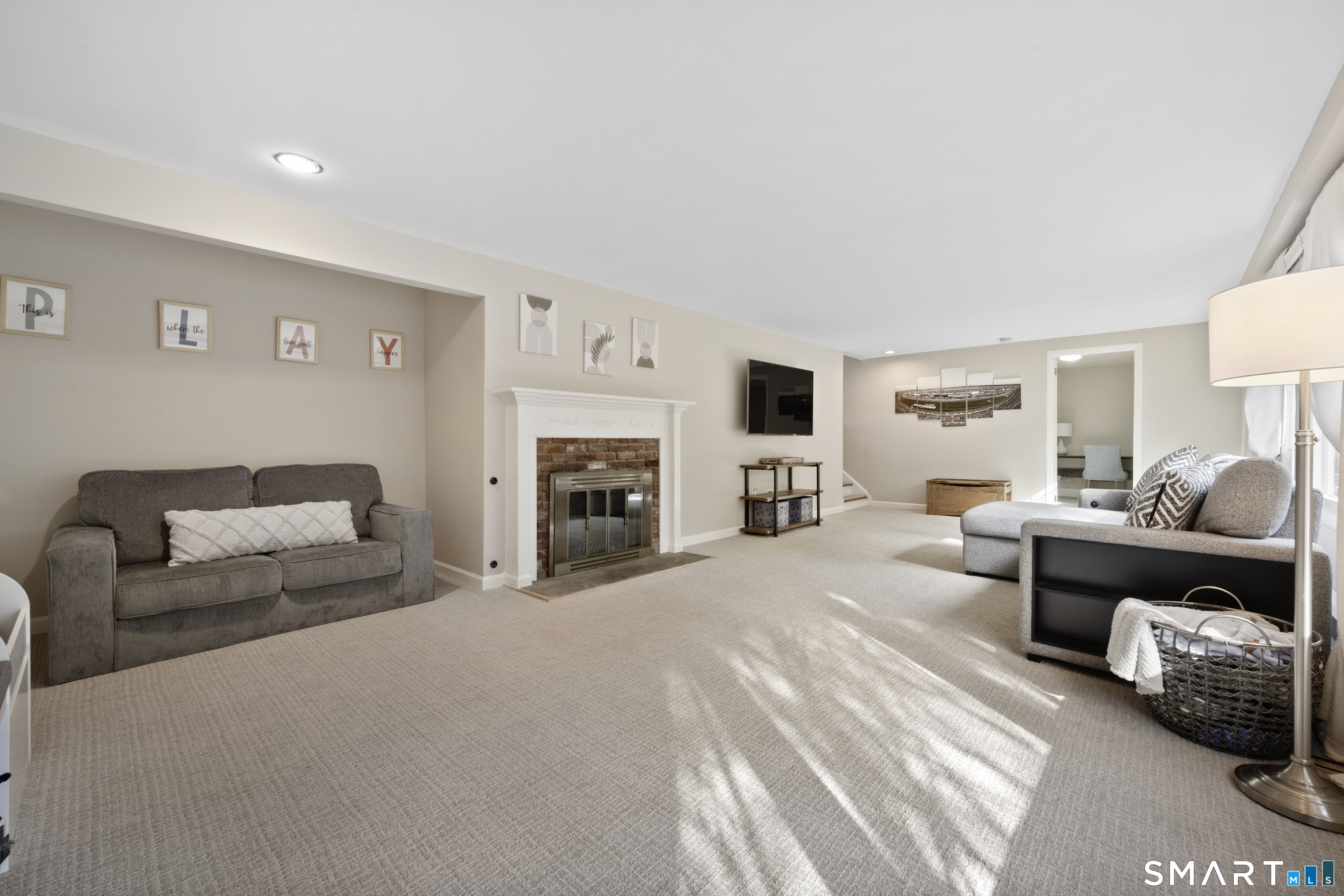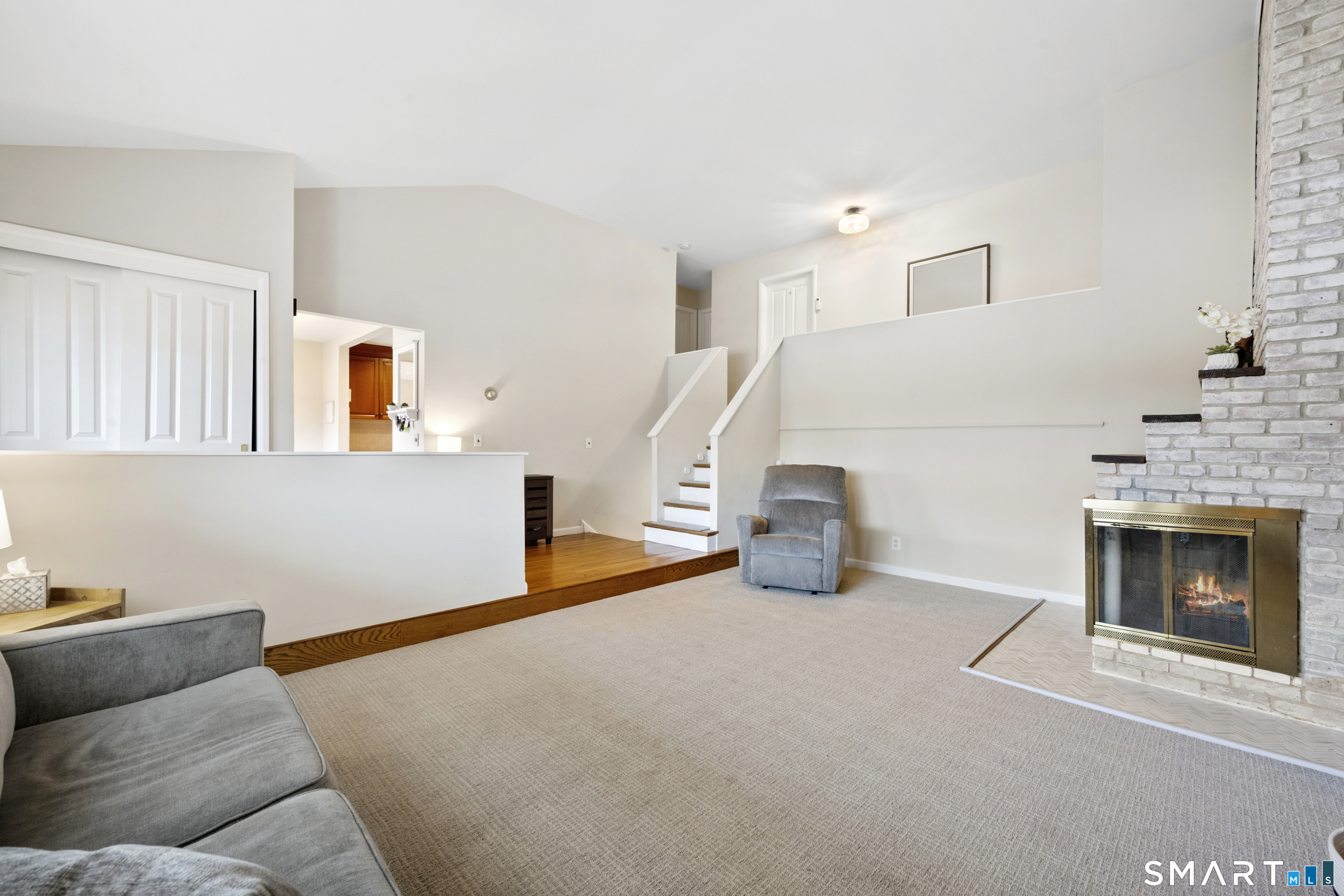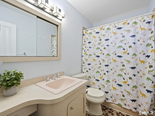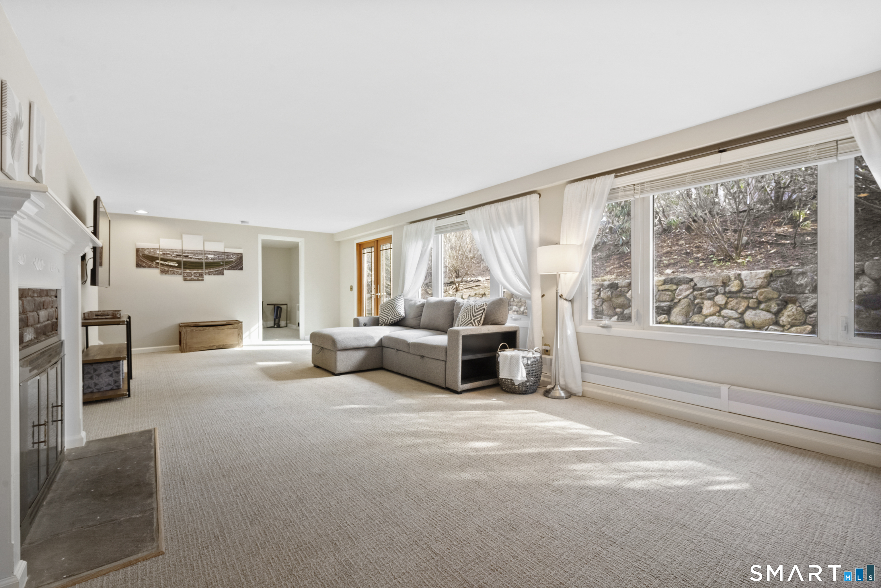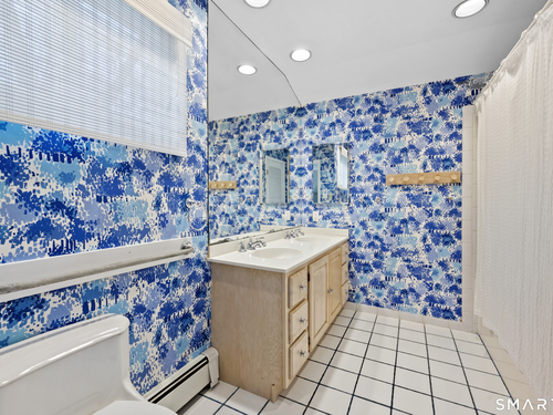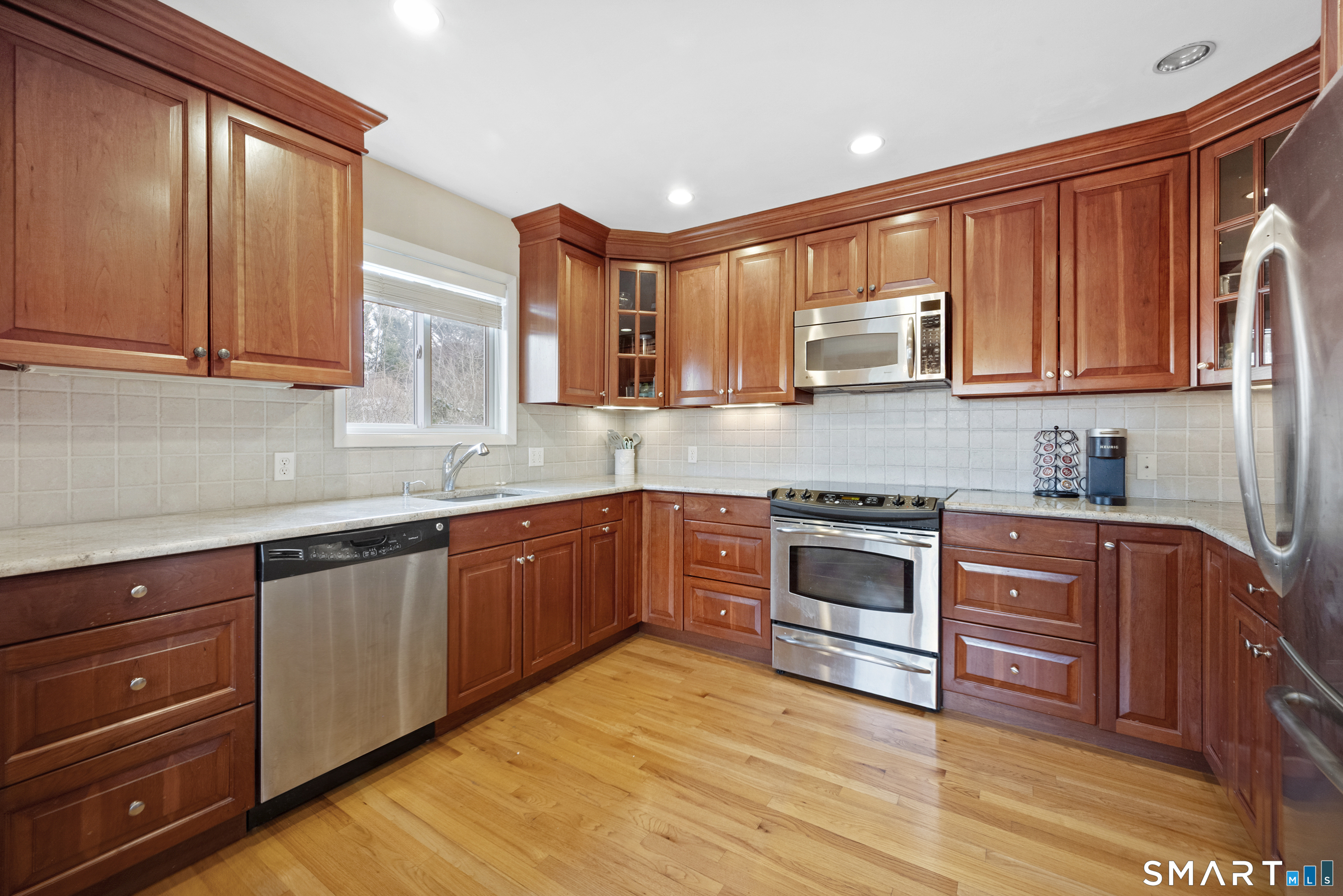 Welcome to 130 Wood Ridge in the sought after Mid Ridges in Stamford. Walk into the living room featuring an open concept and is highlighted with a beautiful brick fireplace. Off the living room is a spacious dining room for gatherings, and generous sized kitchen with stainless steel appliances, granite countertops, and custom cherrywood cabinets with ample storage space. The upper level includes the primary bedroom with a full ensuite, closets with built-in organizers, and hardwood floors and additional bedrooms and bath. Downstairs features a family room showcasing another fireplace with a custom mantle plus French doors opening to a slate patio. A striking rock wall adds character, and just off the family room you'll find a dedicated office with a half bath. Large laundry room and separate storage located in the lower level. Throughout the home, enjoy ductless A/C. Conveniently located in the Mid Ridges area, close to both High Ridge and Long Ridge Roads.