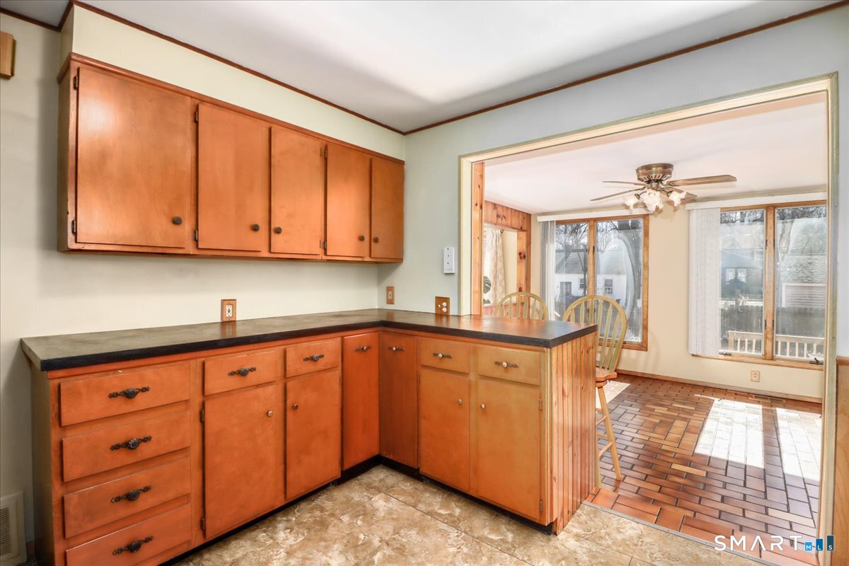 Vaulted Ceiling, Built-In Hutch, Ceiling Fan, Tile Floor
