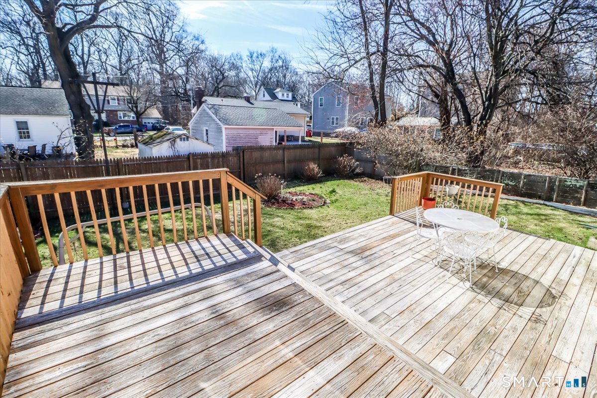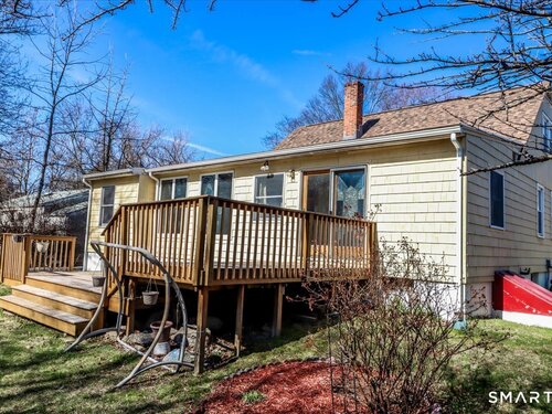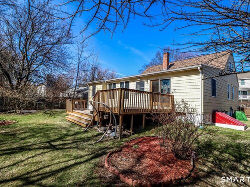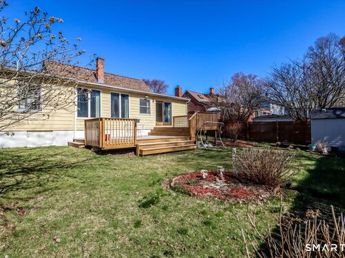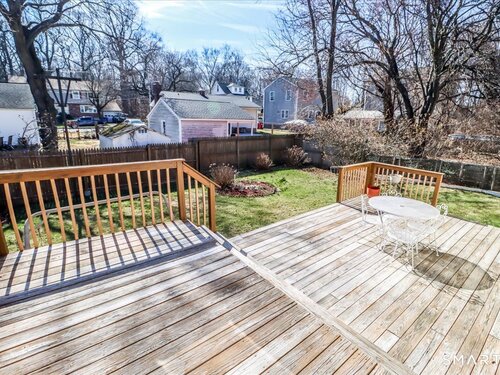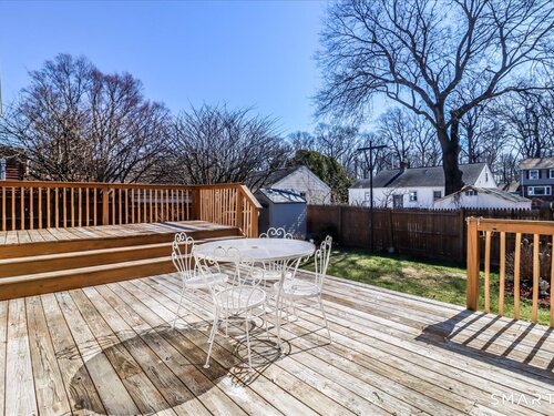 Welcome to this bright and beautifully expanded Cape Cod home, where natural light pours through generous windows and skylights, and gleaming hardwood and tile floors create an inviting flow throughout. The back of the house features an open floor plan, and an atrium door lets you step outside to the spacious two-tiered deck which overlooks a fully fenced backyard-ideal for pets, play, gardening or hosting unforgettable gatherings. As spring arrives, the blooming garden bulbs set the scene for relaxed afternoons and effortless outdoor entertaining. A backyard shed provides convenient storage for bikes, tools, and gardening essentials. Inside, the home offers 2 first floor BRs and a full main level bath, providing flexible living for every lifestyle. The second floor features generous closet and eave storage, giving you plenty of room to stay organized. The lower level adds even more versatility with space, perfect for an office, gym, media room, or creative hobby. A built-in workbench is ready for your next DIY project or even a giftwrapping station! A hatchway door leads from substantial basement storage directly to the backyard, making seasonal storage a breeze. Thoughtful improvements include a newer roof, a Bock water heater, central air, and a 200amp electrical system-comfort and peace of mind for years to come. Warm, welcoming, and wonderfully functional, this home truly has space for everyone and is a home for all seasons!