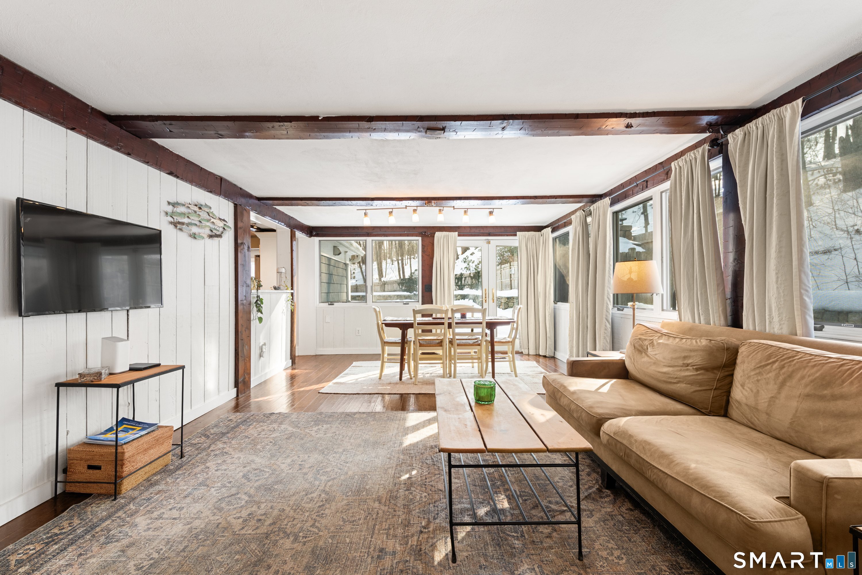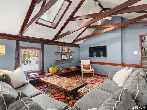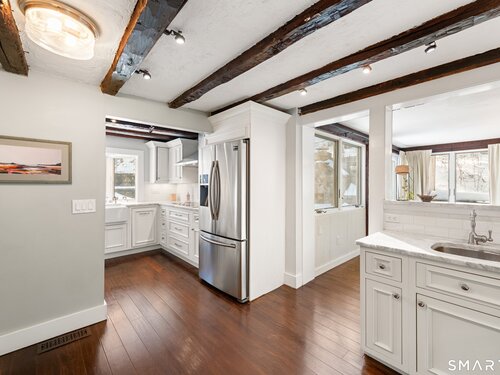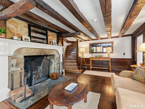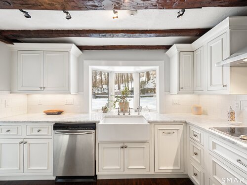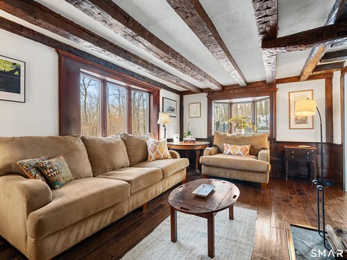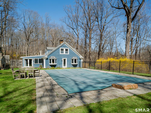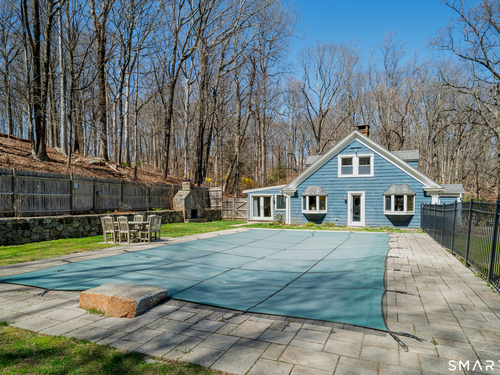 Welcome to 138 Putnam Park Road - A rare and beautifully updated New England Cape offering timeless character and a private backyard retreat with heated in-ground pool, newer designed patio and outdoor fireplace. Inside, old-world craftsmanship blends seamlessly with refined updates. The gourmet eat-in kitchen is filled with natural light and features white granite countertops, a basket-weave marble backsplash, premium stainless appliances, double ovens, wine refrigerator, and a bay window overlooking the fenced pool area and outdoor stone fireplace - perfect for entertaining. Architectural details include a dramatic original stone wood-burning fireplace, wide plank floors, exposed beams, curved wood spindle staircase, skylights, and authentic period elements throughout. Thoughtful upgrades include newer roof and gutters, blown-in insulation, renovated designer bath, new oil tank, new pool pump and newer paved driveway. Spacious sunlit bedrooms, beautifully updated baths, open living spaces, and seamless main-level access to the pool and level yard complete the home. Ideally located in Southern Bethel, 5 minutes to Metro-North for effortless New York commute.