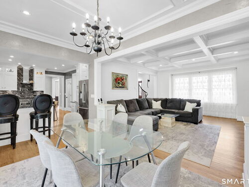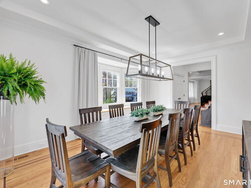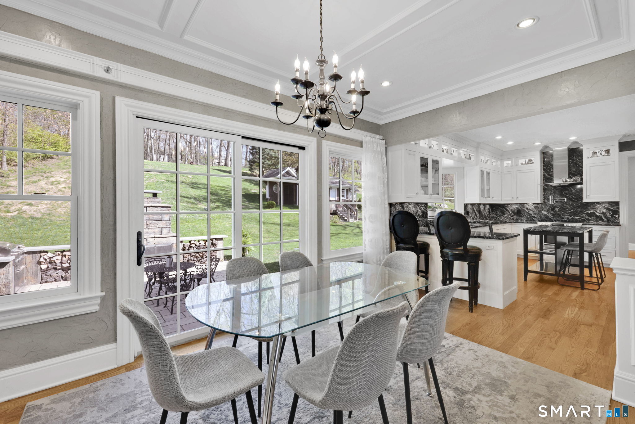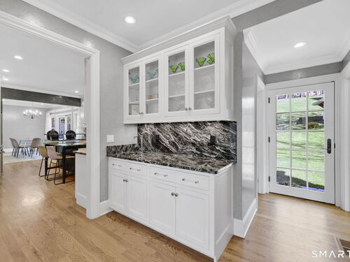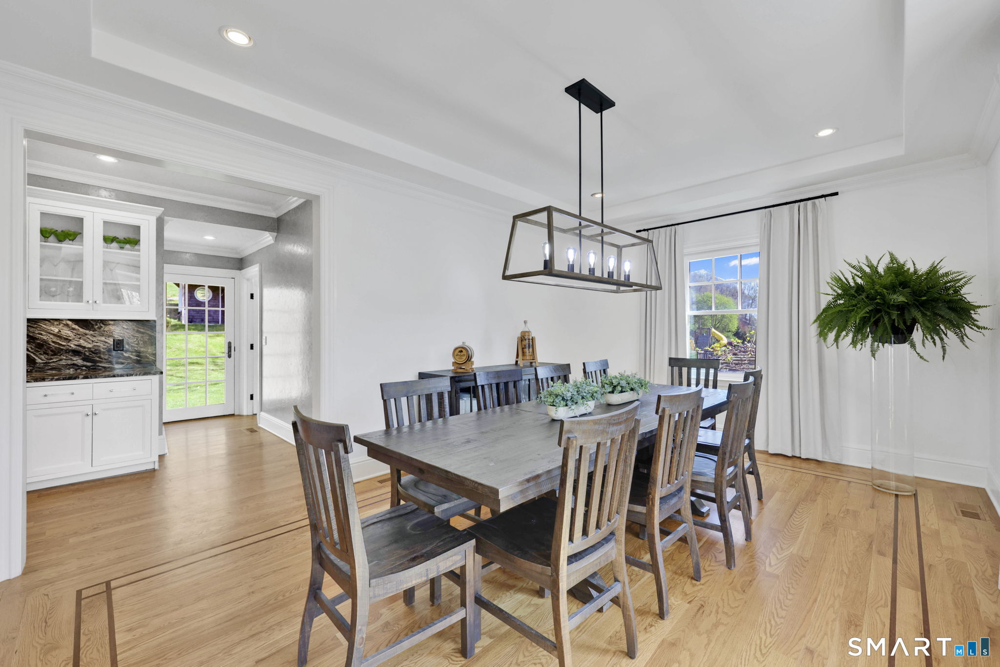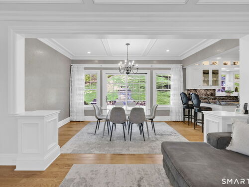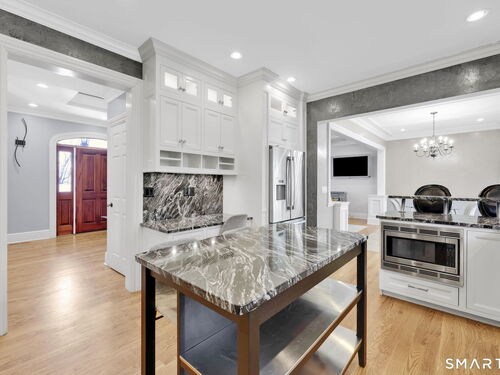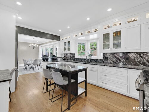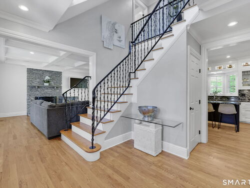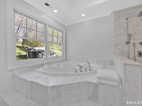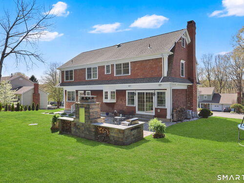 Set within Monroe's premier Whitney Farms golf course community, this exceptional 4-bedroom Colonial offers a rare blend of craftsmanship, scale, and refined design. Thoughtfully renovated with a keen eye for quality and detail, the home is sited with picturesque golf course views and showcases timeless architecture enhanced by rich red cedar siding and extensive stonework, creating striking curb appeal. Inside, 9-foot ceilings and gleaming hardwood floors span the main level, where meticulous renovations and stunning millwork elevate every space. The gourmet kitchen is a true centerpiece, featuring custom inset cabinetry, high-end finishes, and seamless flow into both formal and informal living areas, ideal for everyday living and entertaining alike. A flexible main-level layout offers the potential for a 5th bedroom, home office, or guest room. Upstairs, generously sized bedrooms provide comfort and privacy, while the finished third floor adds valuable bonus space for recreation, work, or additional living. The fully finished lower level further expands the home's versatility, offering ample room for a gym, media room, or play space. Outdoors, the property continues to impress with a beautifully crafted stone patio complete with a built-in smoker, perfect for hosting and enjoying the serene golf course setting. A detached storage shed with rooftop access adds a unique and functional touch. A rare opportunity to own a home in one of Monroe's most sought-after neighborhoods.