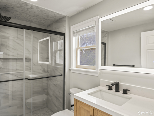 Lake living at its best in the sought after Candlewood Shores lake community. Set on a large, beautifully landscaped lot with scenic lake views, this fully updated home offers modern style, flexible living space, and the ultimate waterfront lifestyle. The open concept main level features a stunning quartz kitchen with center island, stainless steel appliances, and seamless flow to the dining and living areas. Sliding doors lead to an elevated deck overlooking the lake and vibrant treetops, perfect for morning coffee or sunset gatherings. A main level bedroom with adjacent full bath provides ideal first floor living or guest accommodations. Upstairs, the spacious primary suite captures lake views and includes a walk in closet and spa inspired bath featuring a luxurious steam shower. An additional upper level guest suite with its own full bath offers comfort and privacy for family or visitors, providing three full bedrooms and three full baths in total. The finished lower level additional guest suite adds even more versatility, complete with a convenient half bath, ideal for extended stays, a media room, or home office. A two car garage and generous outdoor space enhance everyday convenience. Enjoy beach access, boating, swimming, and year round recreation in this desirable lake community. A rare opportunity to own a move in ready home with lake views, a large lot, and exceptional living space in Candlewood Shores.