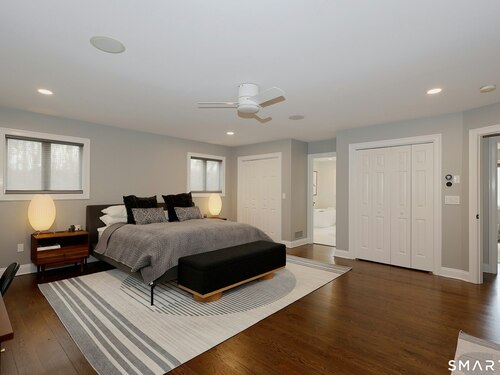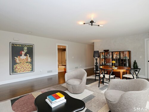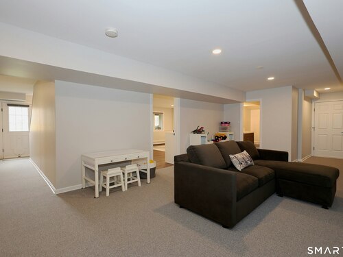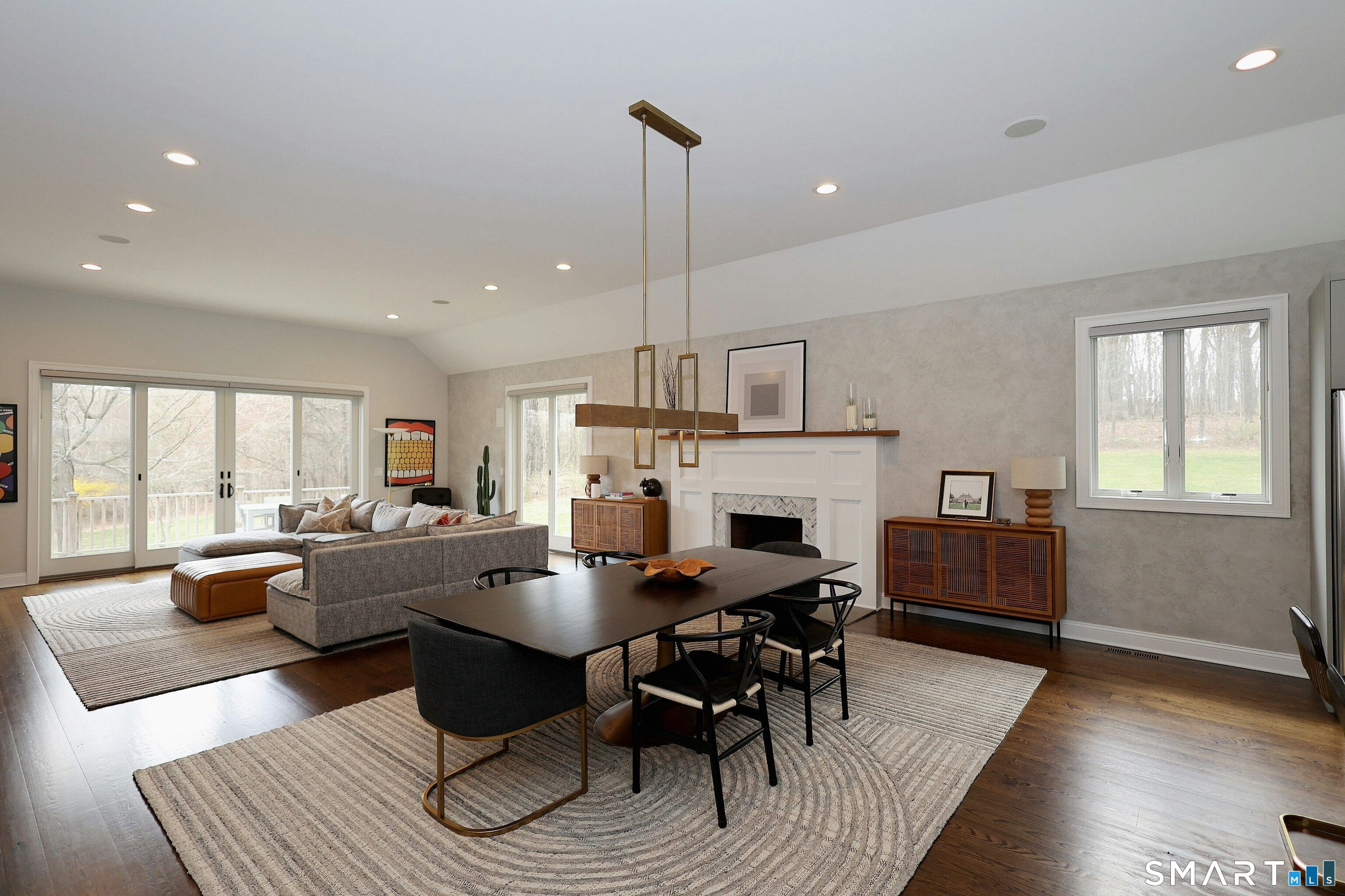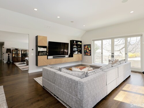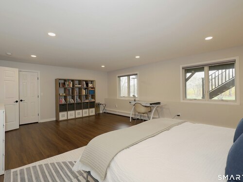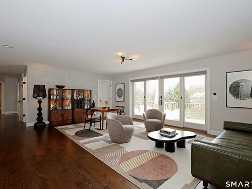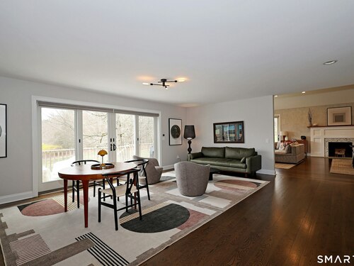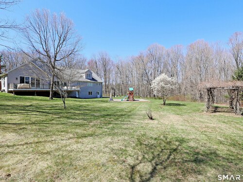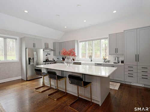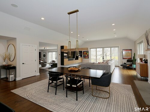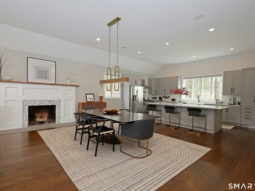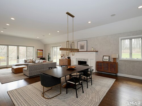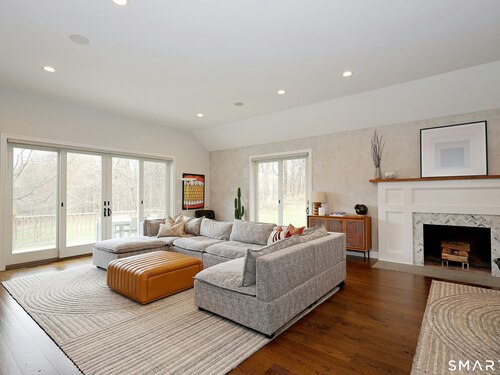 Impeccable shingle style country cape on park-like 2.76 acres adj. Redding Land Trust conservation property, connecting directly to Devil's Den, the largest preserve in CT w/1,800+ acres. Exceptional attention to detail inside & out, w/extensive recent improvements & designer finishing. Impressive circular drive w/Belgian block apron & center inlay, lush lawn, flowering trees & Wisteria covered pergola. Drenched in natural light, the modern open floor plan features a state of the art chef's kitchen w/Wolf 6 burner gas range, island w/bar seating, pantry, & fireside dining area, wide open to the expansive FR w/cstm built-in entertainment center, new SONOS surround sound, & French doors to the extensive deck for outdoor enjoyment. High tech w/Nest thermostats; fiber internet; Ring alarm system/sensor array; & custom Hunter Douglas motorized blinds. Total 4,943sf w/3-4 BRs, 3/1 updated baths, & primarily one level living. The main floor also boasts the sophisticated LR w/wall of windows & French doors to the deck & yard; elegant primary BR suite with luxe bath featuring soaking tub/separate shower & marble double vanity; plus 2 more sizable BRs w/shared bath. Walk-up to the soaring beamed & vltd bonus room, plus expansive walk-out lower level rec room w/4th BR option, full bath & direct access to the oversized 2 car garage. Idyllic home in sought after West Redding, minutes to restaurants/shopping in nearby Georgetown, Ridgefield, Wilton & Bethel, plus just 58 miles to Midtown.