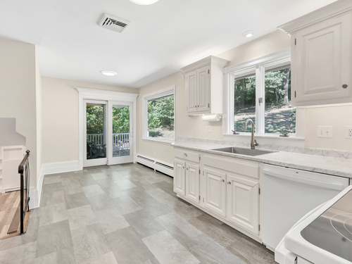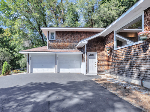 Welcome to 151 Kohanza Street, your dream home! This bright, spacious Modern Split Level offers over 3,500 square feet on almost one full acre of private, park-like land and stunning views of the Ridgewood golf course and the Kohanza Valley. Featuring 3-5 bedrooms and 2.5 baths, inside you will find sun-filled rooms with soaring ceilings, hardwood floors, custom Anderson windows, and multiple living levels for comfort and functionality. The inviting living room opens to the dining room and a well-appointed kitchen with custom cabinetry, ideal for casual meals or elegant entertaining. Off the kitchen, step onto the covered porch for morning coffee or summer evenings in total tranquility. Upstairs, the primary suite is a peaceful retreat with a private bath, while two additional bedrooms and a hall bath provide comfort for family and guests. The entry level offers a posh marble fireplace, built-ins, and walkout access to a stone patio. On the lowest level, two more bedrooms and a spacious family room bathed in natural light are perfect for movie nights, extended stays, or sleepovers. This home is perfectly situated for Manhattan commuters, close to local amenities all in a coveted private setting with elevated views, versatile living spaces, and a thoughtful multi-level layout, 151 Kohanza Street blends luxury, privacy, and convenience and is ready to welcome its next owner.