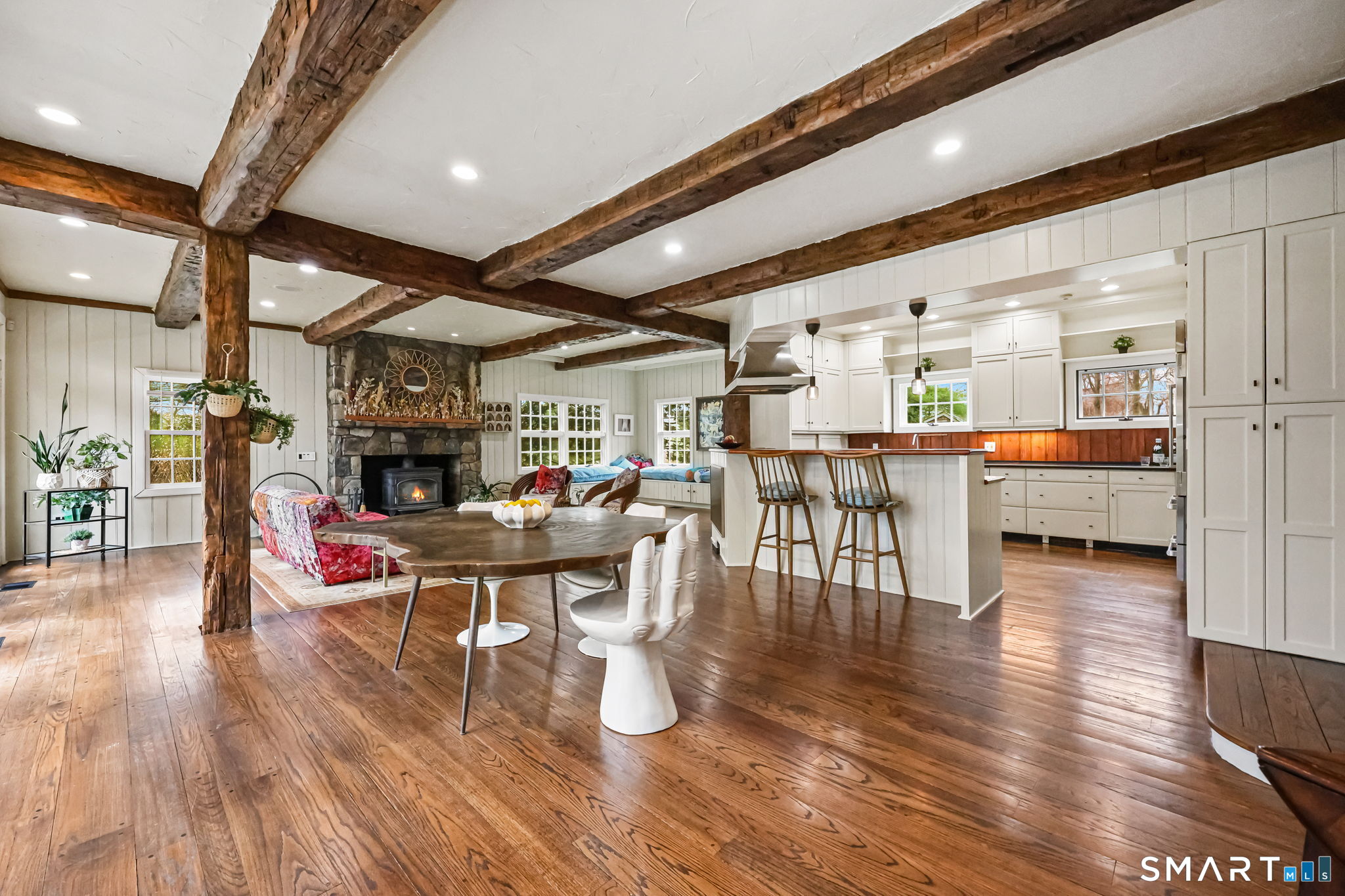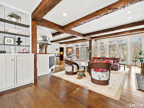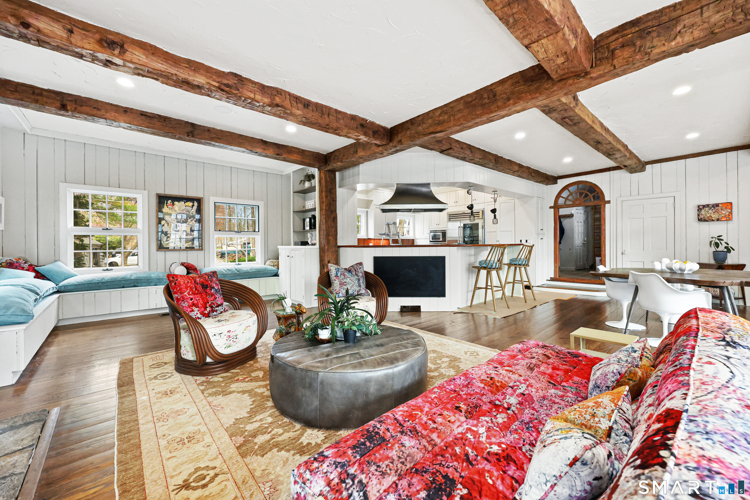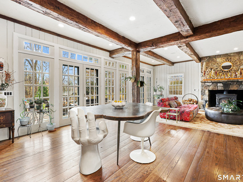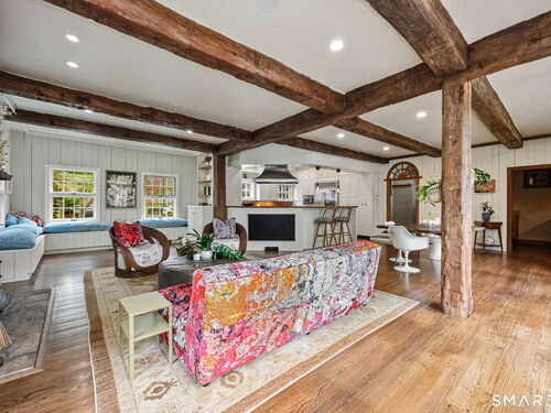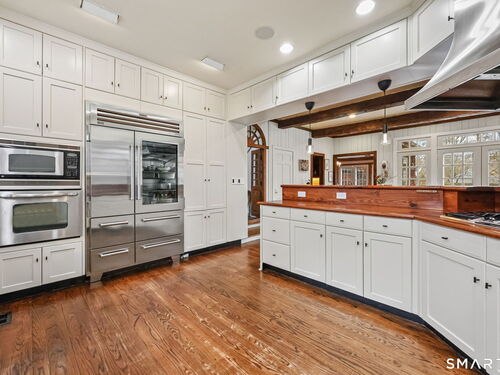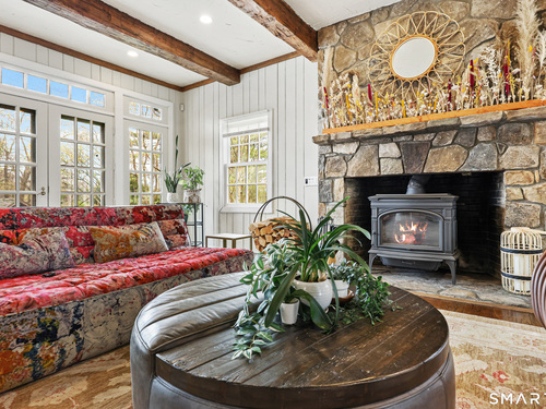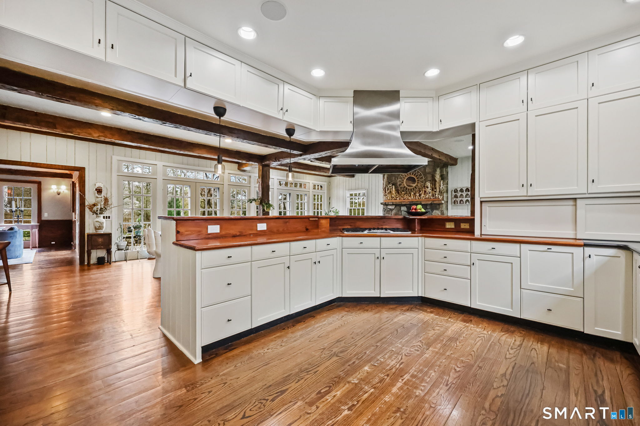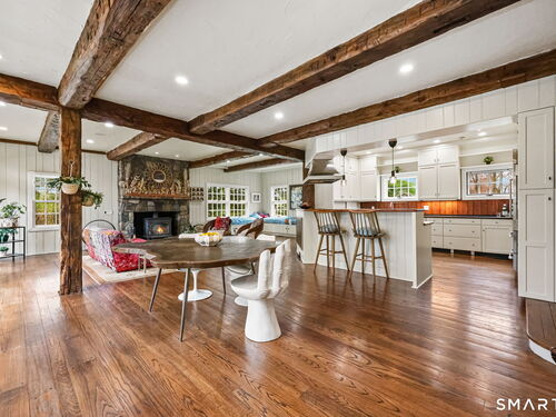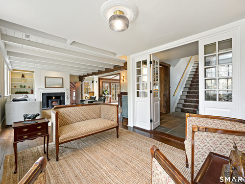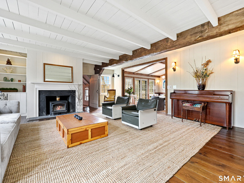 Set on 1.1 acres of beautifully landscaped grounds, this charming country home offers a rare balance of history, scale, and everyday livability. With over 5,000 square feet, five bedrooms, and six baths, the property unfolds in a way that feels both expansive and comfortable, shaped over time with care and intention. The home's origins date to the late 1800's. Each addition has been thoughtfully integrated, preserving the character of the original farmhouse while introducing the space and function expected today. Wide floorboards, exposed beams, and three fireplaces with later additions made to create a natural flow between gathering spaces and private retreats. The bright kitchen and family room with a fireplace anchor daily life. A fully equipped butler's pantry includes a bar, refrigerator drawers, dishwasher, and wall oven, and substantial storage. Two ensuite bedrooms on the main level and three bedrooms upstairs offer tremendous flexibility and versatility. The breathtaking grounds with multiple stone patios open to expansive lawns, mature trees, colorful gardens, and a level yard. This is a home that has grown over time without losing its identity. The result is a seamless blend of history and modern updates, offering a setting that feels grounded, inviting, and ready for its next chapter. A must see!