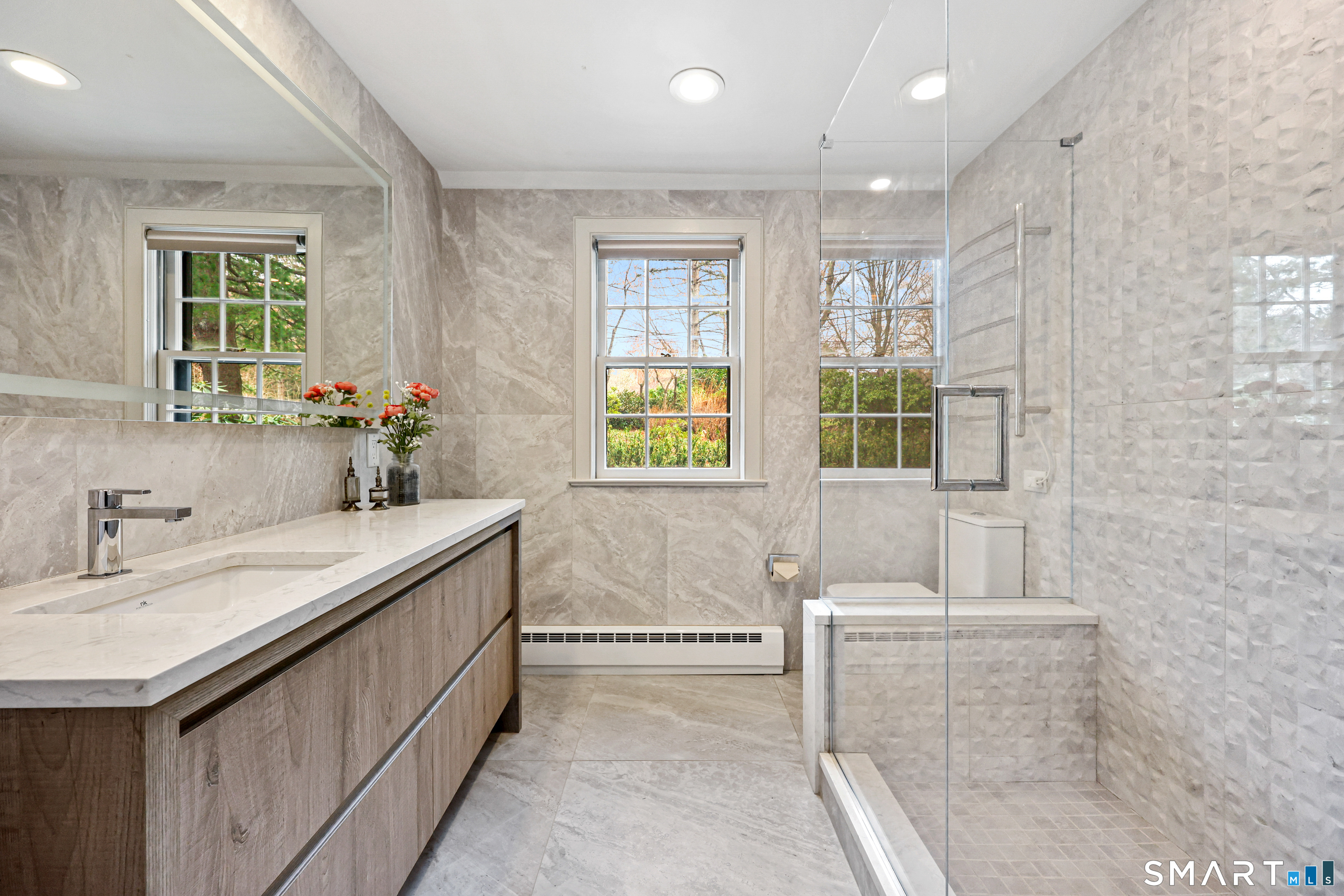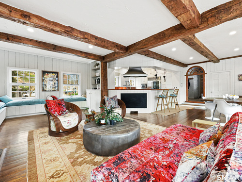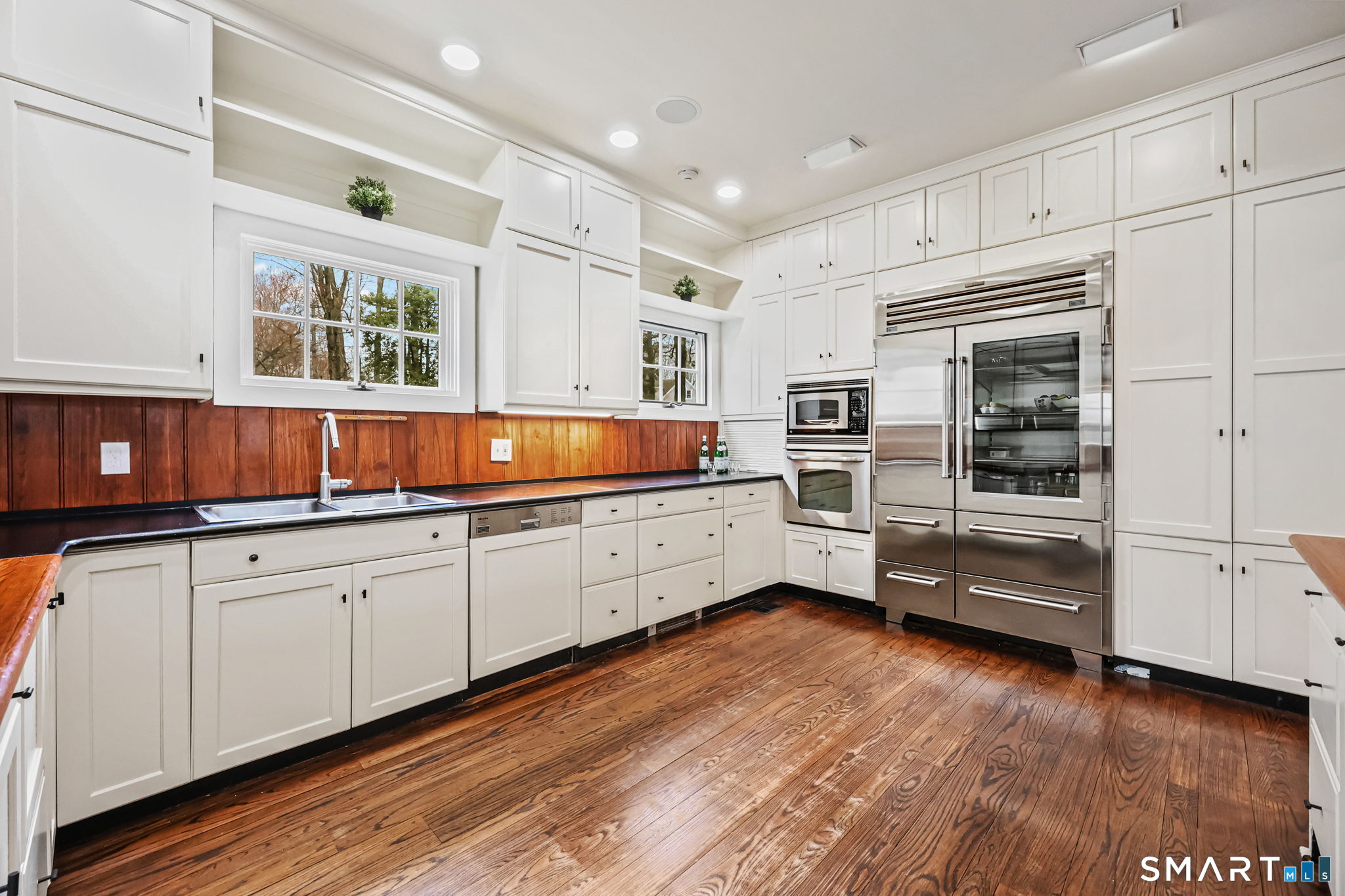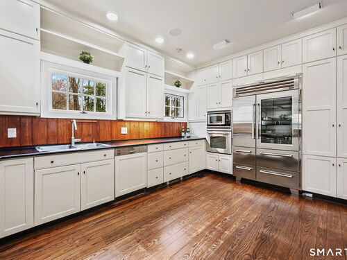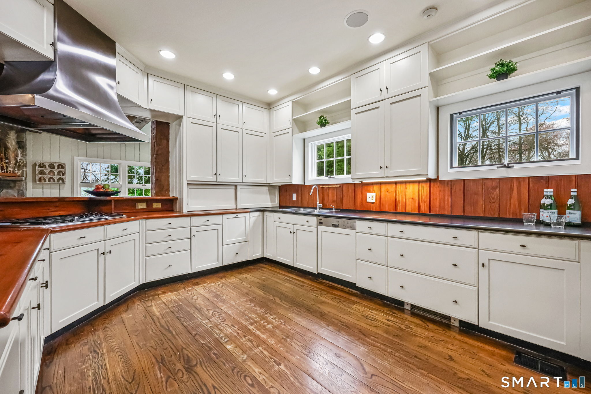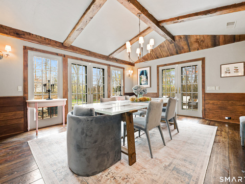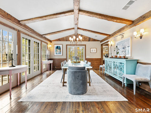 Set on 1.1 acres of beautifully landscaped grounds, this charming country home offers a rare balance of history, scale, and everyday livability. With over 5,000 square feet, five bedrooms, and six baths, the property unfolds in a way that feels both expansive and comfortable, shaped over time with care and intention. The home's origins date to the late 1800's. Each addition has been thoughtfully integrated, preserving the character of the original farmhouse while introducing the space and function expected today. Wide floorboards, exposed beams, and three fireplaces with later additions made to create a natural flow between gathering spaces and private retreats. The bright kitchen and family room with a fireplace anchor daily life. A fully equipped butler's pantry includes a bar, refrigerator drawers, dishwasher, and wall oven, and substantial storage. Two ensuite bedrooms on the main level and three bedrooms upstairs offer tremendous flexibility and versatility. The breathtaking grounds with multiple stone patios open to expansive lawns, mature trees, colorful gardens, and a level yard. This is a home that has grown over time without losing its identity. The result is a seamless blend of history and modern updates, offering a setting that feels grounded, inviting, and ready for its next chapter. A must see!