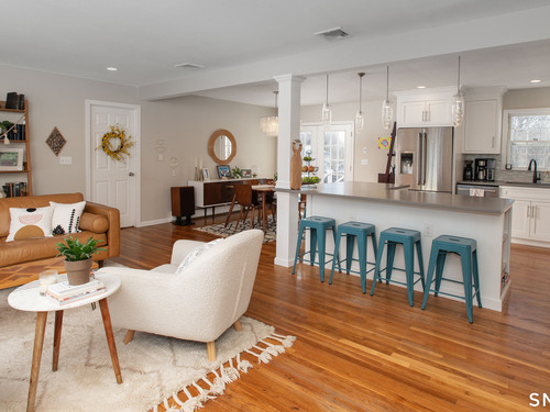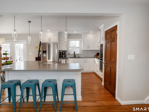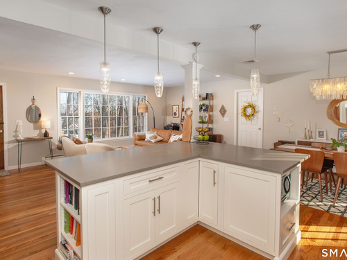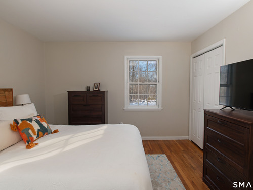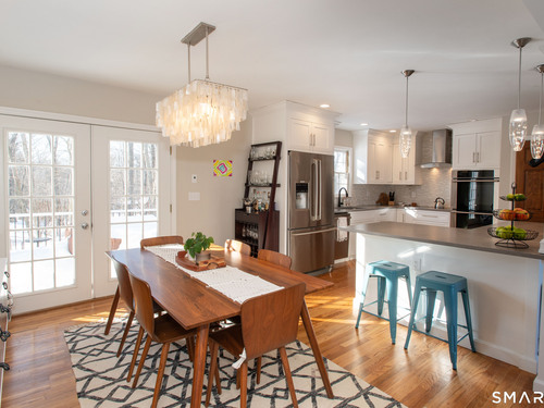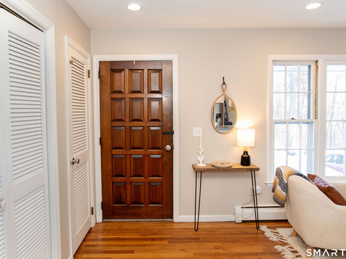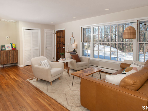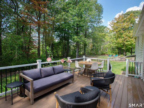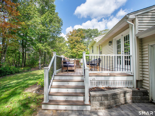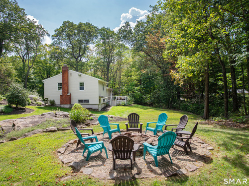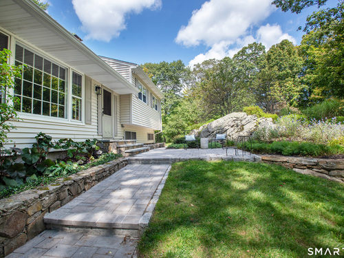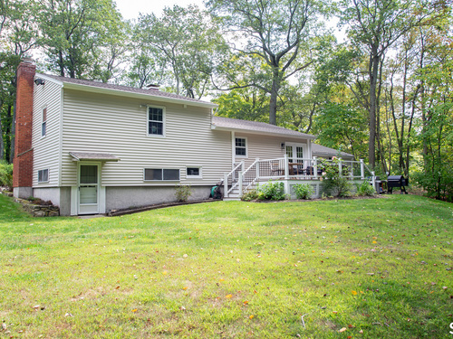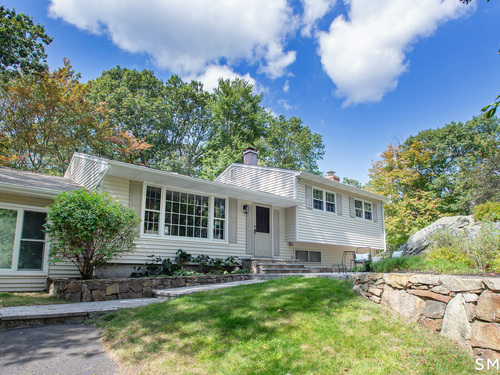 Welcome Home to this welcoming split-level property where privacy, comfort and everyday charm come together in a setting that instantly feels like 'home'. Tucked at the end of a private paved driveway and surrounded by mature trees and thoughtful plantings, this pride-of-ownership residence offers a peaceful retreat with a warm, welcoming layout designed for relaxed living. Sunlight pours through a large picture window, illuminating hardwood floors throughout the main and upper levels and enhancing the seamless flow between the living, dining, and kitchen spaces. The open concept design creates an easy gathering space, while the spacious kitchen with breakfast bar seating on two sides invites connection. Well-proportioned bedrooms provide restful retreats and are complemented by a beautifully updated full bathroom. The lower level adds versatility with a cozy family room with fireplace, powder room with laundry, and a den ideal for a home office, exercise room or playroom. Outdoors, a generous Trex deck overlooks the level, usable yard framed by stone outcroppings and mature trees--perfect for enjoying every season. Additional features include central air conditioning, a generator for peace of mind during pesky weather happenings, a shared private water system monitored by Aquarion, and a detached two-car garage with ample storage space. Close to Lake Pierrepont, preserves, commuting routes and less than 10 minutes to the town village. Welcome Home!