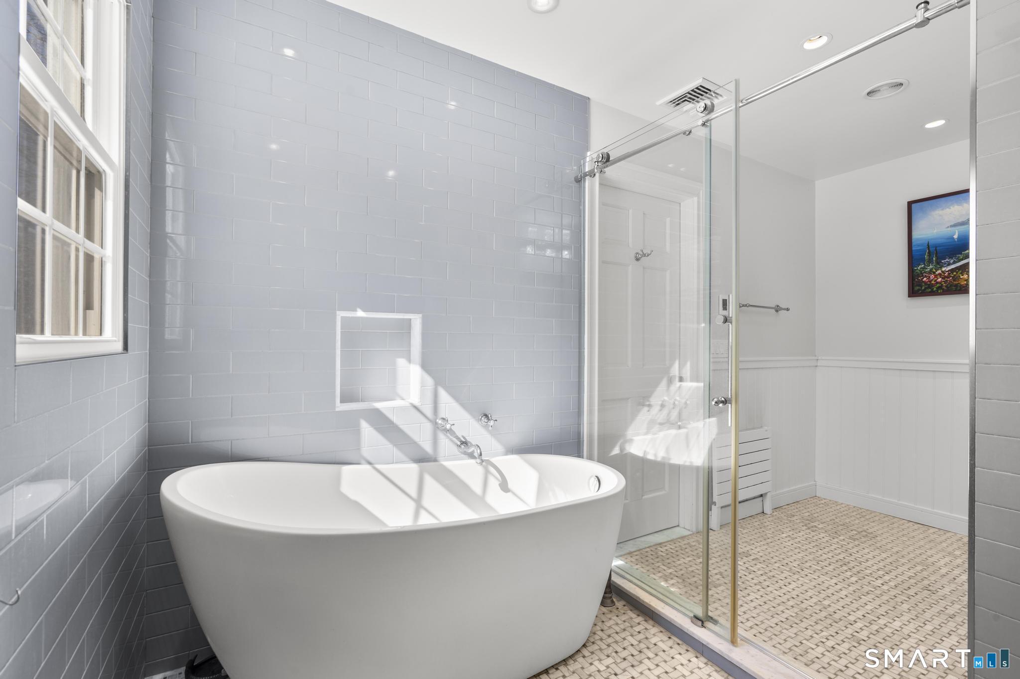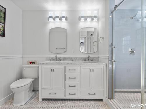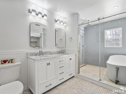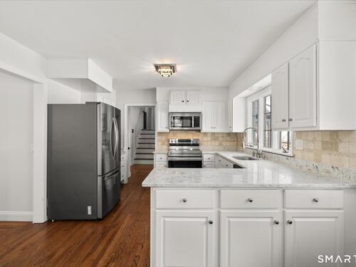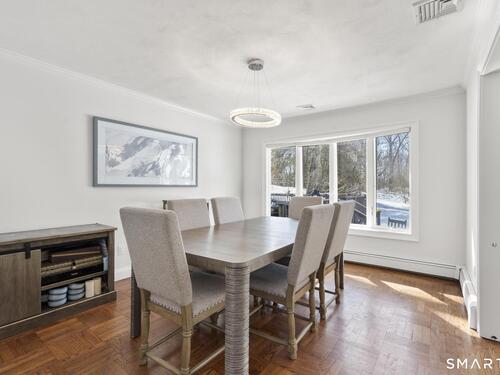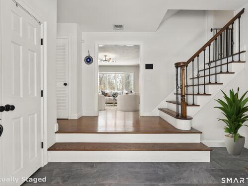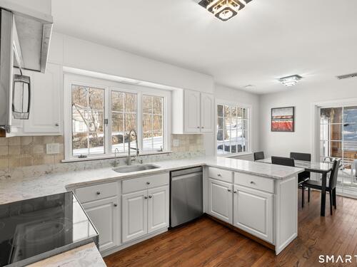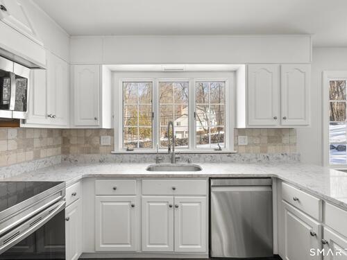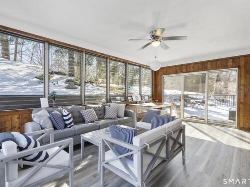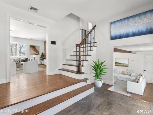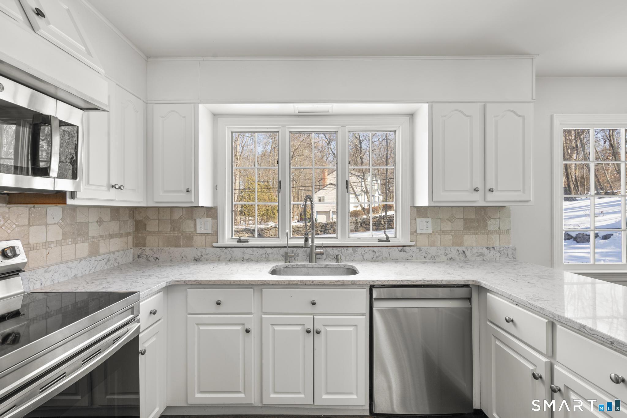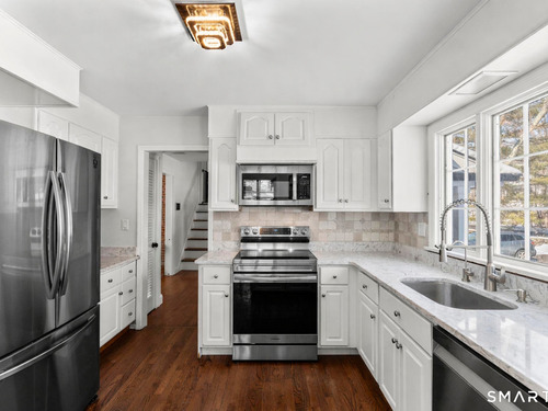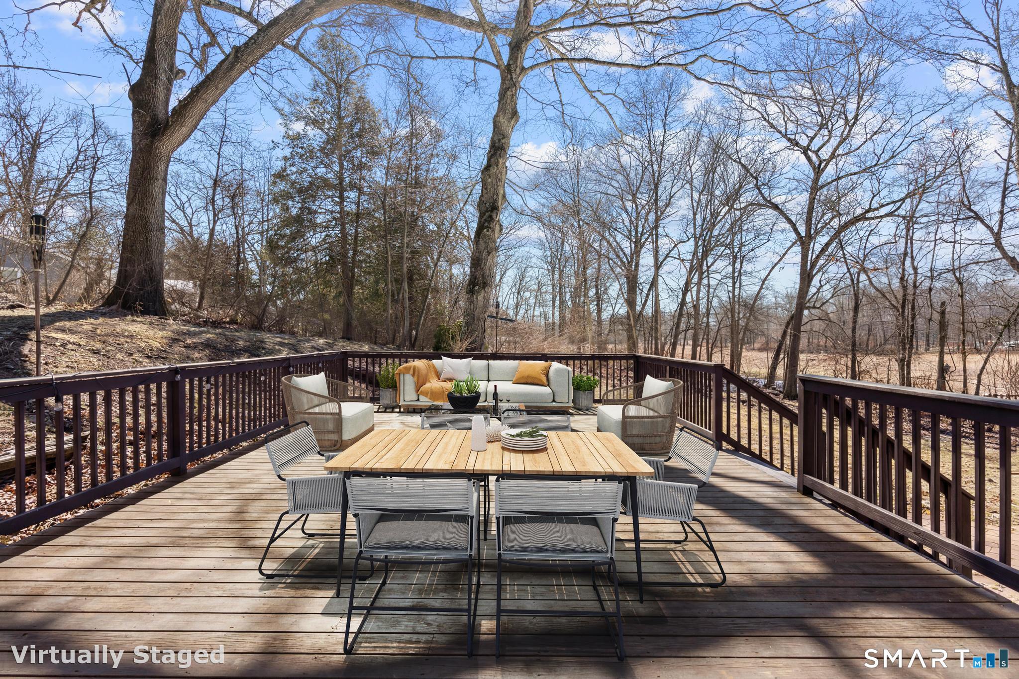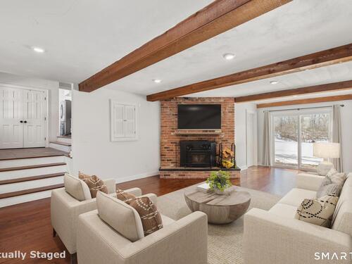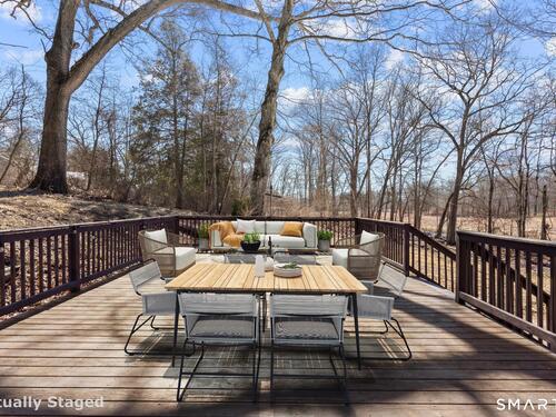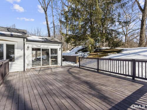 Recently renovated and ideally set on a full acre in sought after West Norwalk, this exceptional home borders Oak Hills Golf Course and offers a rare blend of privacy, open space, and sweeping views. A gracious foyer leads to sun-filled living and dining rooms with oversized bay windows overlooking the expansive backyard. The sparkling eat-in kitchen w/new countertops and st/st appliances flows into a gleaming sunroom w/ sliders that lead to a wraparound deck, creating seamless indoor-outdoor living perfect for entertaining, relaxing, or working from home. Upstairs features 4 generously sized bedrooms and 2 full baths. The jaw-dropping primary suite offers a spa-inspired bath with a walk-in shower, soaking tub, and dual-sink marble vanity. The lower level boasts an impressive family room w/exposed wood beams, a wood-burning fireplace, and sliders to the yard. An attached two-car garage provides convenient access through the laundry room and updated powder room. Since 2018, updates include a newer roof and hardie board siding, well pump, water filtration system, septic tank, oil tank, newer heating system, and smart irrigation. Enjoy stunning sunsets over the golf course while remaining minutes to Norwalk's shopping, dining, parks, beaches, highways, and Metro-North. Come and make this your ultimate dream home!