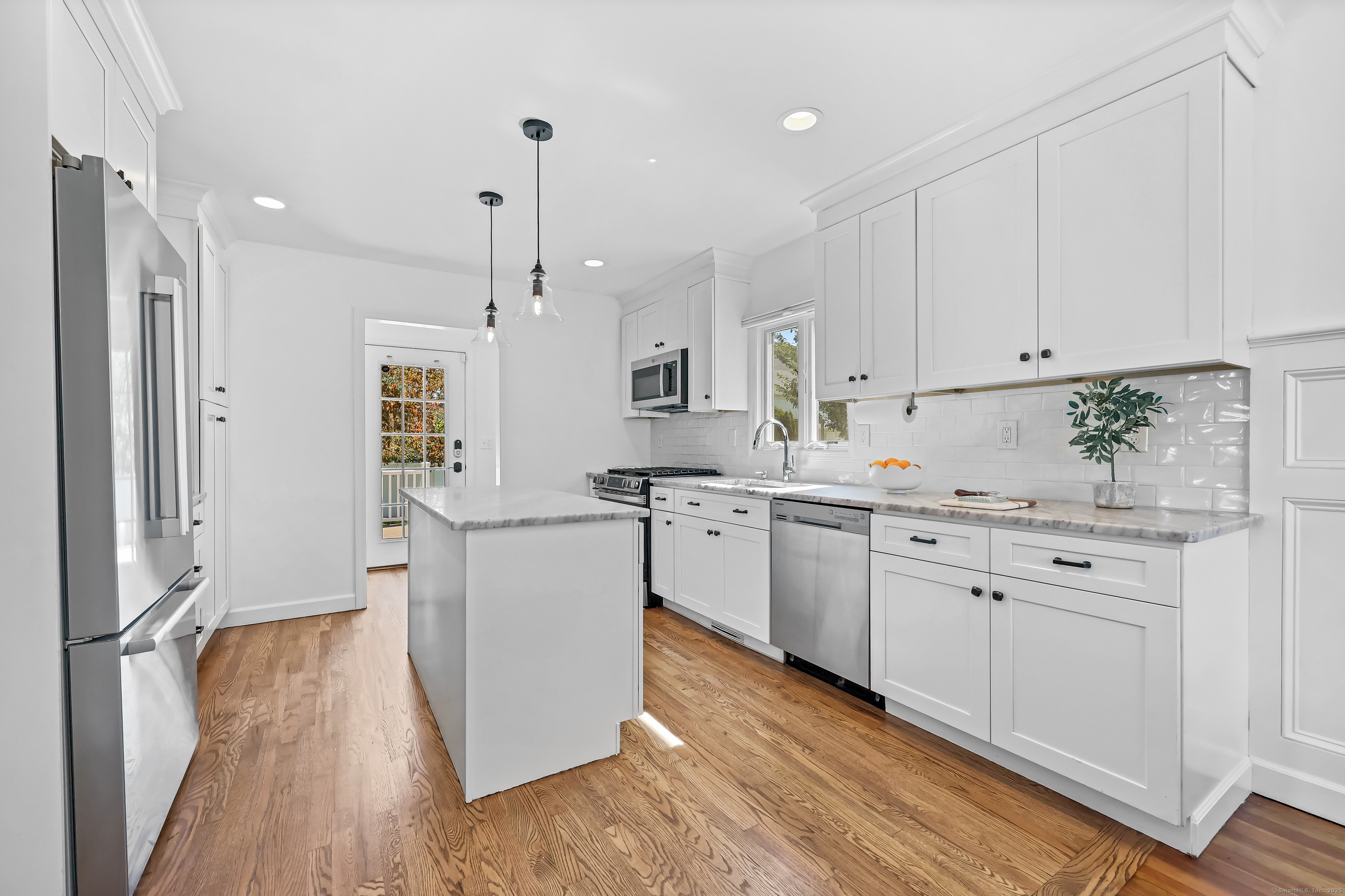Beautifully Renovated 3 Bedroom, 2 Full Bath Cape in the coveted University Area. Whole interior has been freshly painted and all hardwood floors up and down have been refinished. High-end fixtures throughout, marble counters in both Kitchen and Baths. Coffered Ceilings and custom paneling throughout. New Oven, Fridge and Micro-wave in the past year. Large, maintenance free Trex Deck with Permit. New vanity and re-tiling in downstairs bathroom. Re-tiling of floor and shower in upstairs bathroom. Finished basement including ductless heat/AC. Mudroom plus 2 coat closets on first floor. Seamless glass door in second floor bath. Large Primary Bedroom closets. Walk out to Blue Stone Patio and large, level yard. Great commuter location less than 1.3 miles to both Fairfield Train Stations. Five minutes to shopping, downtown, beaches and I-95. Seller has Architectual Plans plus all approvals for an expansion and improvements from Fairfield ZBA's available to Buyers.
