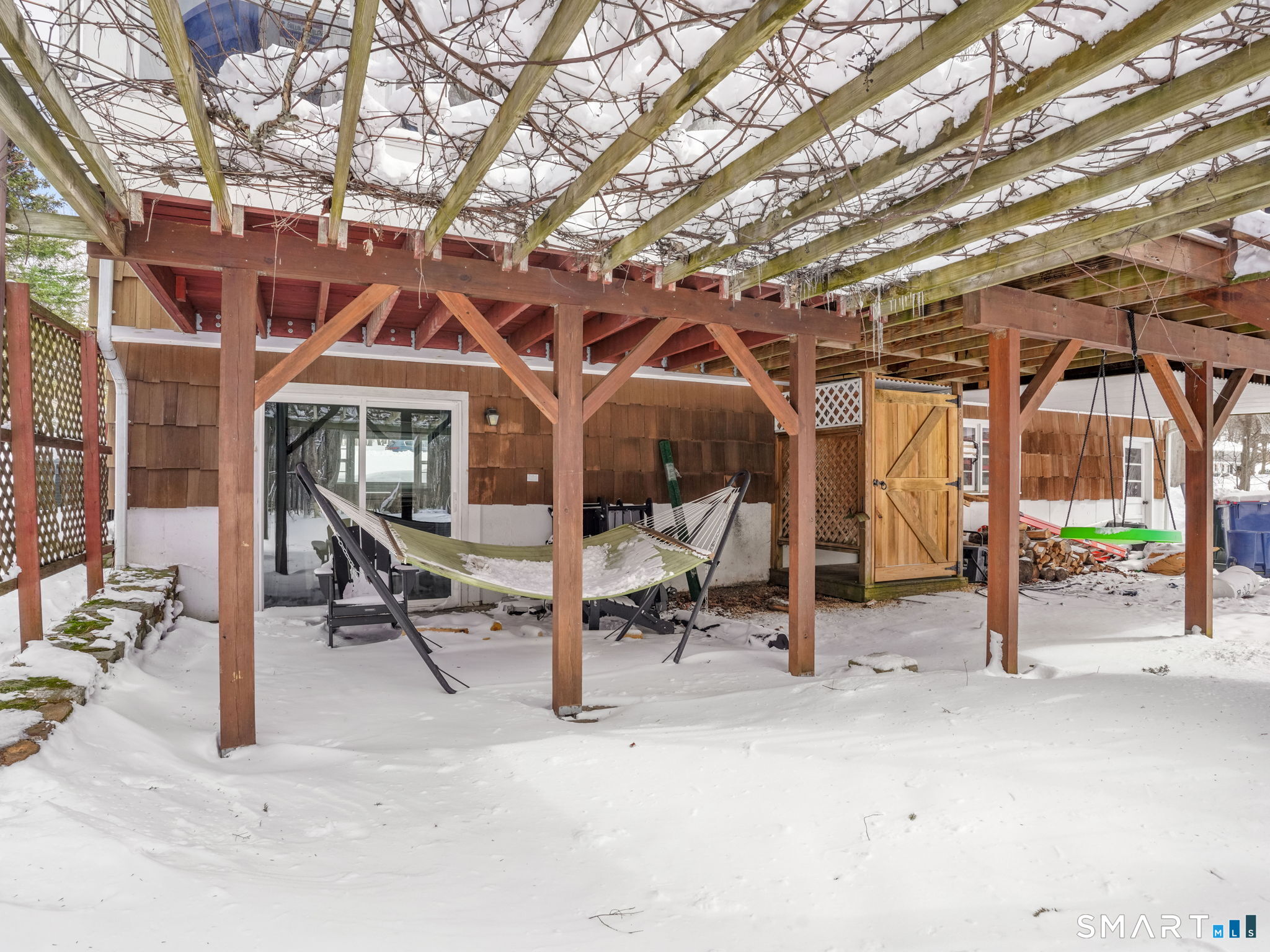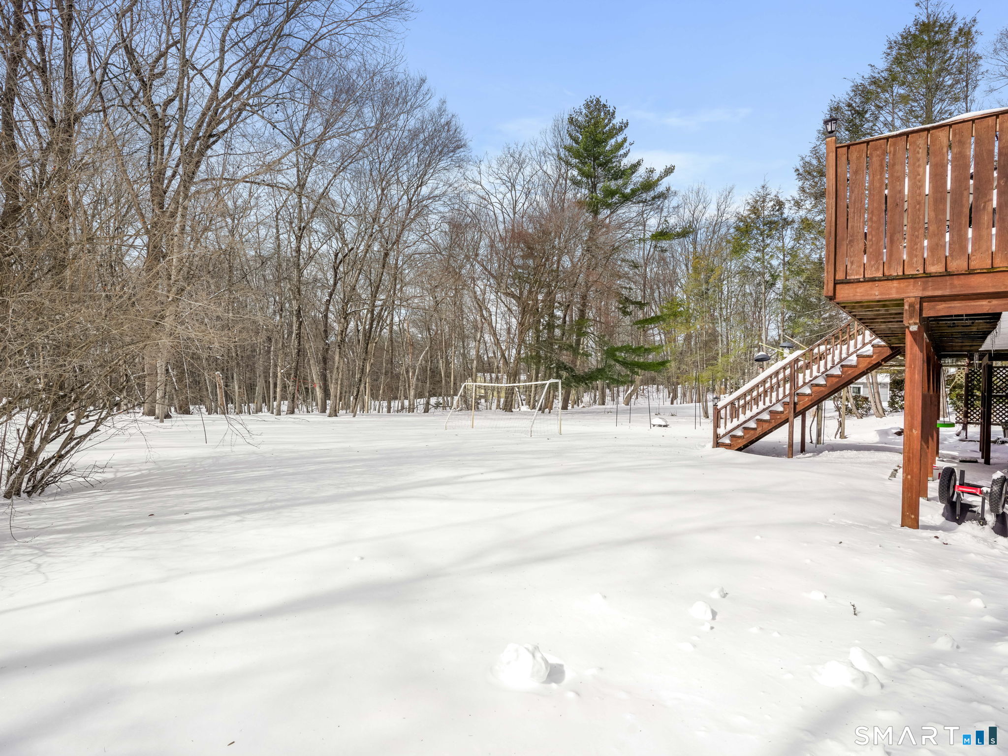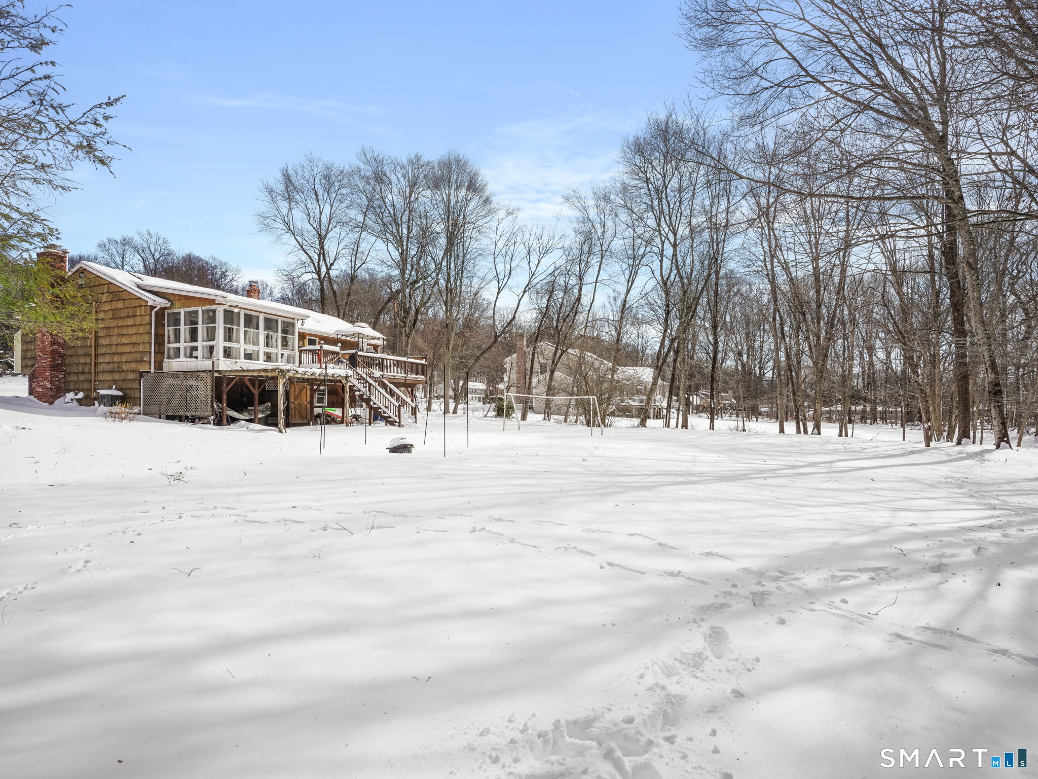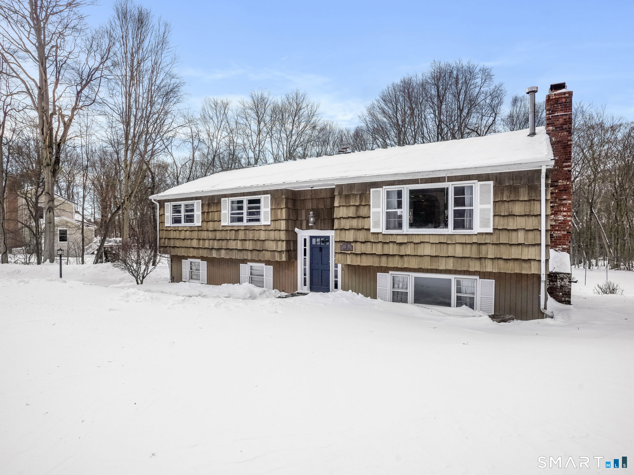 An exceptional opportunity to live in one of Trumbull's sought-after Tashua neighborhoods, set on a beautiful one-acre property backing directly to town-owned open space and the Easton Reservoir, offering impeccable privacy and a truly serene setting. The sun-filled main level is flooded w/ natural light and features hardwood floors. The updated kitchen showcases cabinetry trimmed to the ceiling, stone countertops, and opened half walls that create seamless connectivity, perfect for everyday living and entertaining. A versatile enclosed porch overlooks the picturesque backyard, the perfect spot for morning coffee, quiet afternoons, or seasonal enjoyment while taking in the peaceful setting. The updated main level bathroom features stylish shiplap detailing and a modern vanity, delivering a fresh, on-trend look. A highly efficient fireplace in the main living area. The expansive walk-out lower level offers above-grade windows, a second fireplace with a brick accent wall, a spacious laundry room / updated half bath, providing exceptional additional living space with plenty of natural light. Outdoor living is equally impressive w/ a deck off the main level, plus a patio anchored by a pergola & even an outdoor shower. This backyard is designed to be enjoyed for years to come. Leased solar panels are actively producing and help offset rising electric costs. Inquire for details. All just minutes to Tashua Knolls Golf Course, pools, tennis and basketball courts & parks.Welcome Home!