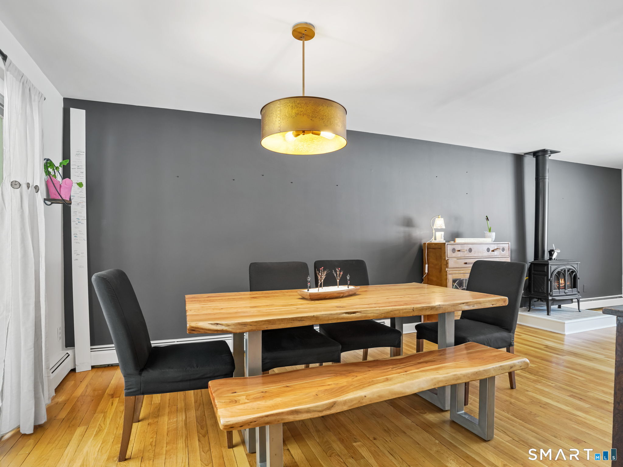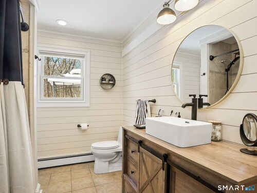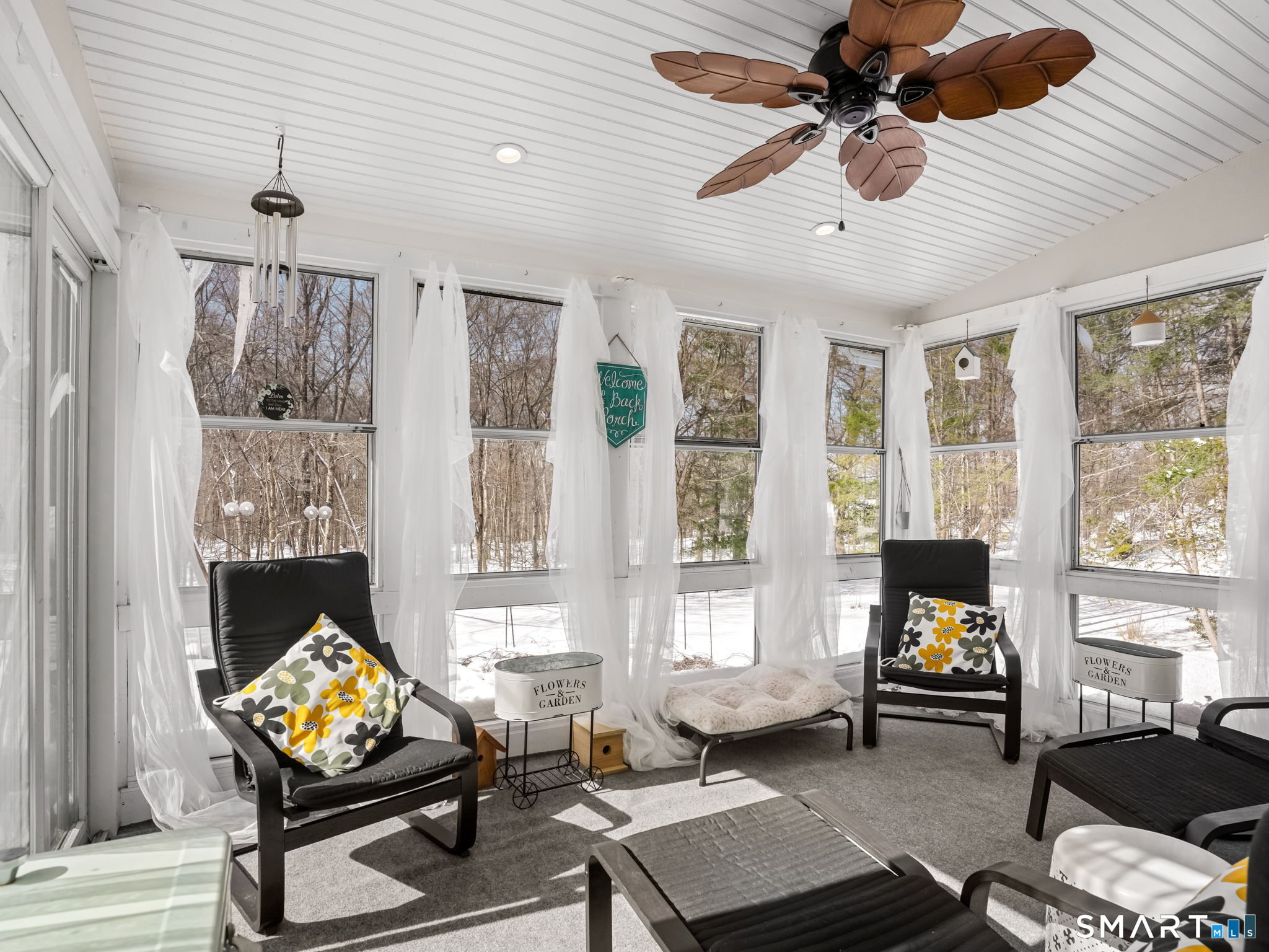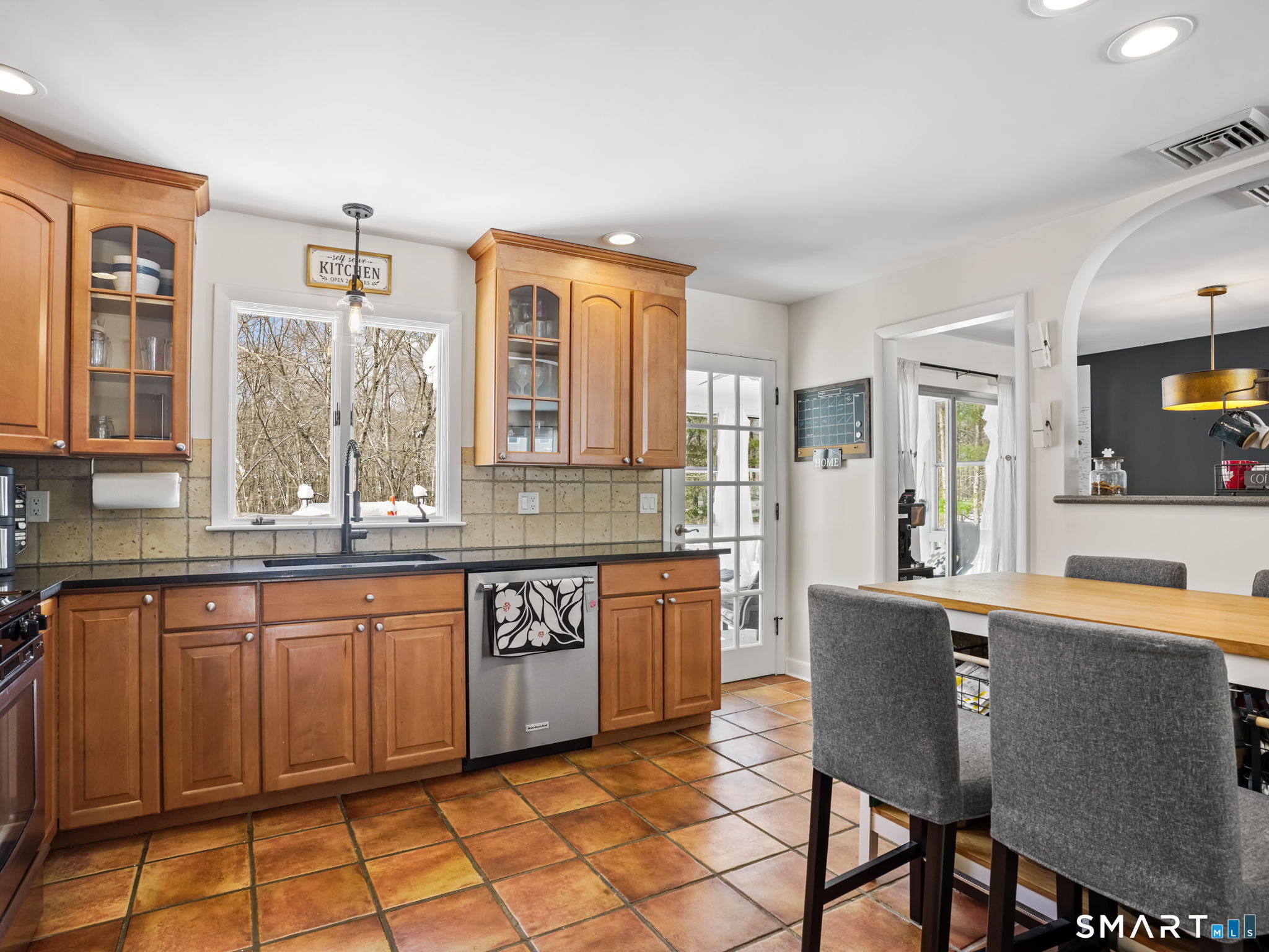 An exceptional opportunity to live in one of Trumbull's sought-after Tashua neighborhoods, set on a beautiful one-acre property backing directly to town-owned open space and the Easton Reservoir, offering impeccable privacy and a truly serene setting. The sun-filled main level is flooded w/ natural light and features hardwood floors. The updated kitchen showcases cabinetry trimmed to the ceiling, stone countertops, and opened half walls that create seamless connectivity, perfect for everyday living and entertaining. A versatile enclosed porch overlooks the picturesque backyard, the perfect spot for morning coffee, quiet afternoons, or seasonal enjoyment while taking in the peaceful setting. The updated main level bathroom features stylish shiplap detailing and a modern vanity, delivering a fresh, on-trend look. A highly efficient fireplace in the main living area. The expansive walk-out lower level offers above-grade windows, a second fireplace with a brick accent wall, a spacious laundry room / updated half bath, providing exceptional additional living space with plenty of natural light. Outdoor living is equally impressive w/ a deck off the main level, plus a patio anchored by a pergola & even an outdoor shower. This backyard is designed to be enjoyed for years to come. Leased solar panels are actively producing and help offset rising electric costs. Inquire for details. All just minutes to Tashua Knolls Golf Course, pools, tennis and basketball courts & parks.Welcome Home!