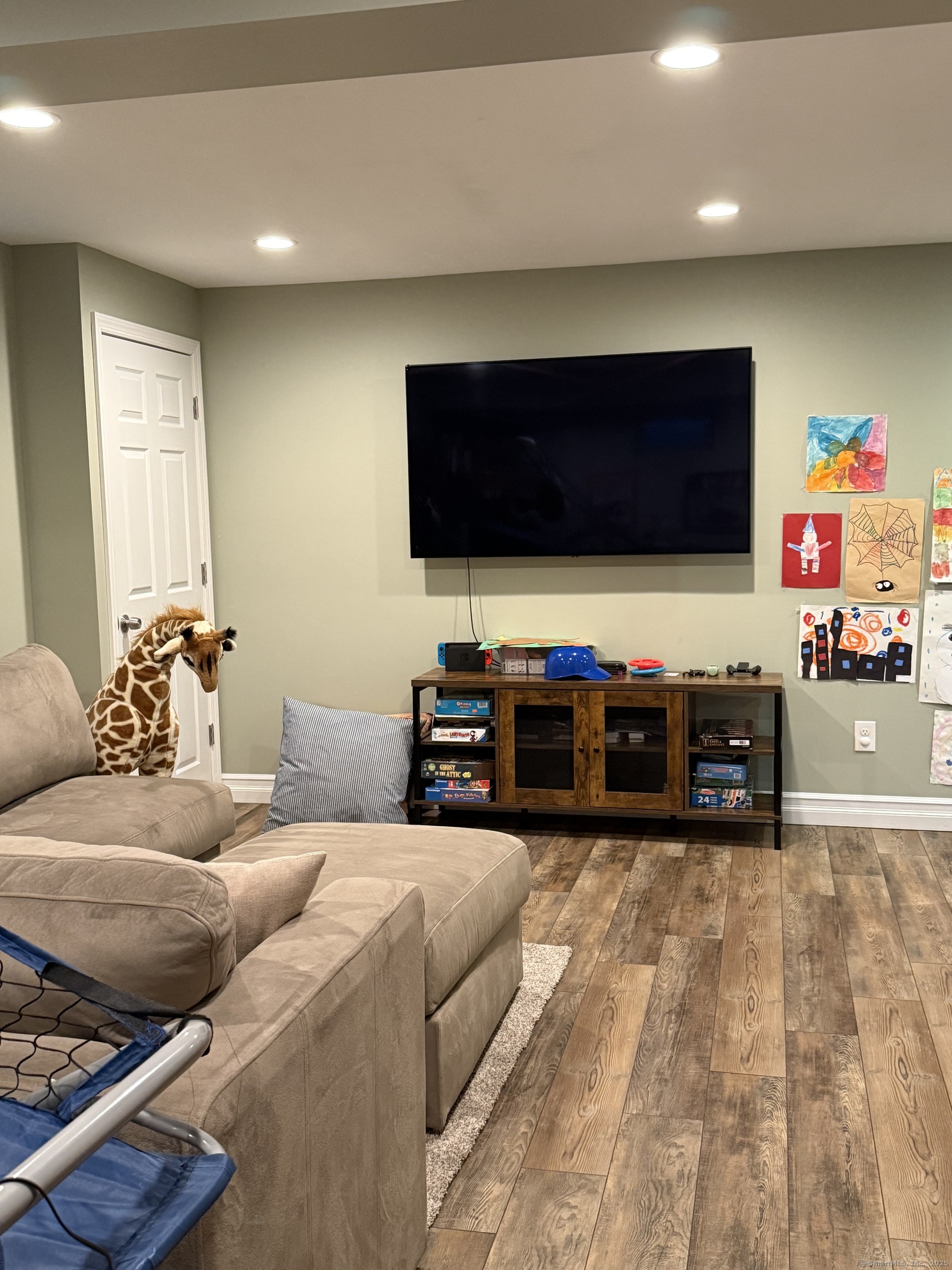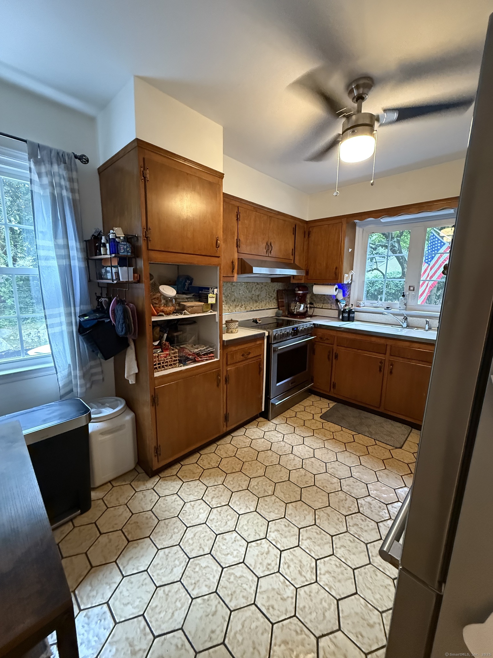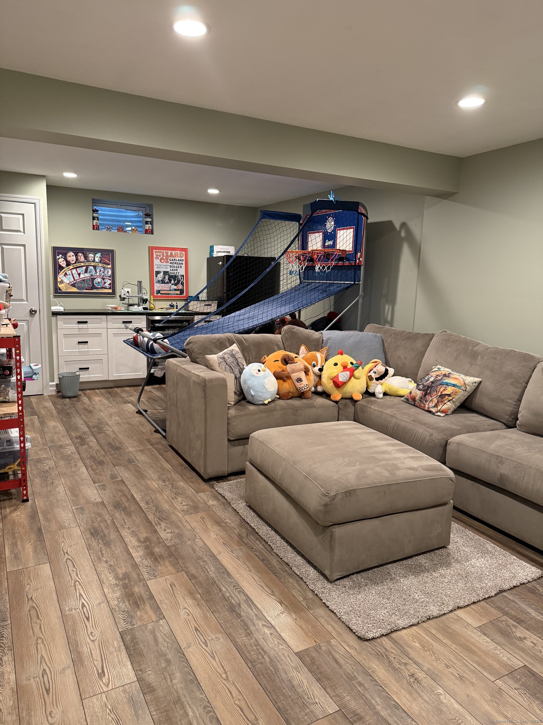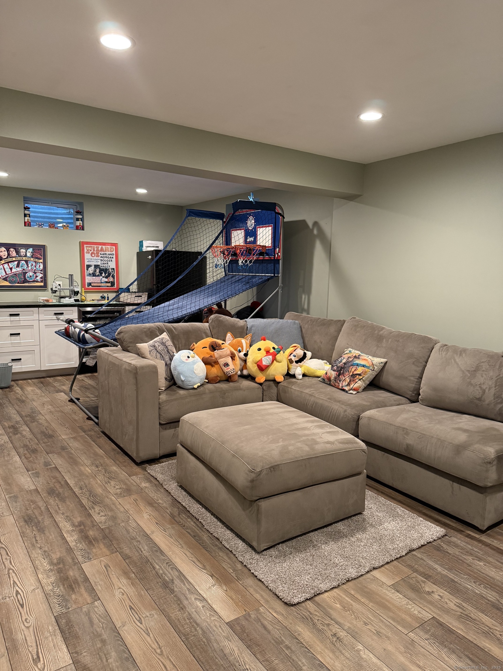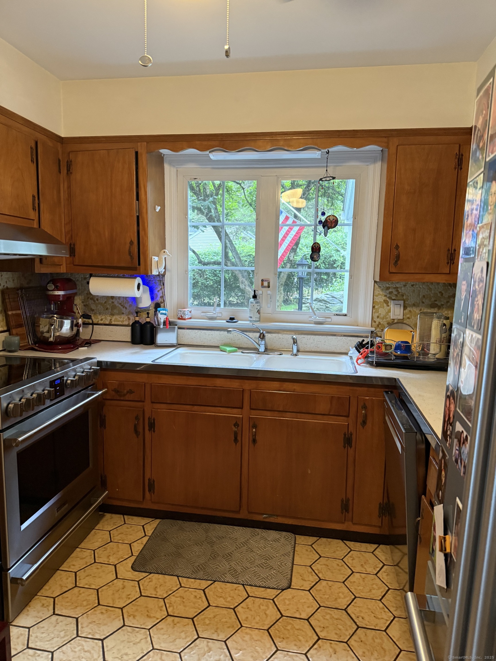 Immaculate 4 bedroom Cape Cod conveniently located to Merritt Parkway (Route 15). Features living room with brick fireplace, bay window and hardwood flooring. Dining Room with hardwood flooring which is adjacent to kitchen with access to covered deck. Two full tile baths. Full basement with finished family room & utility room. One car garage.