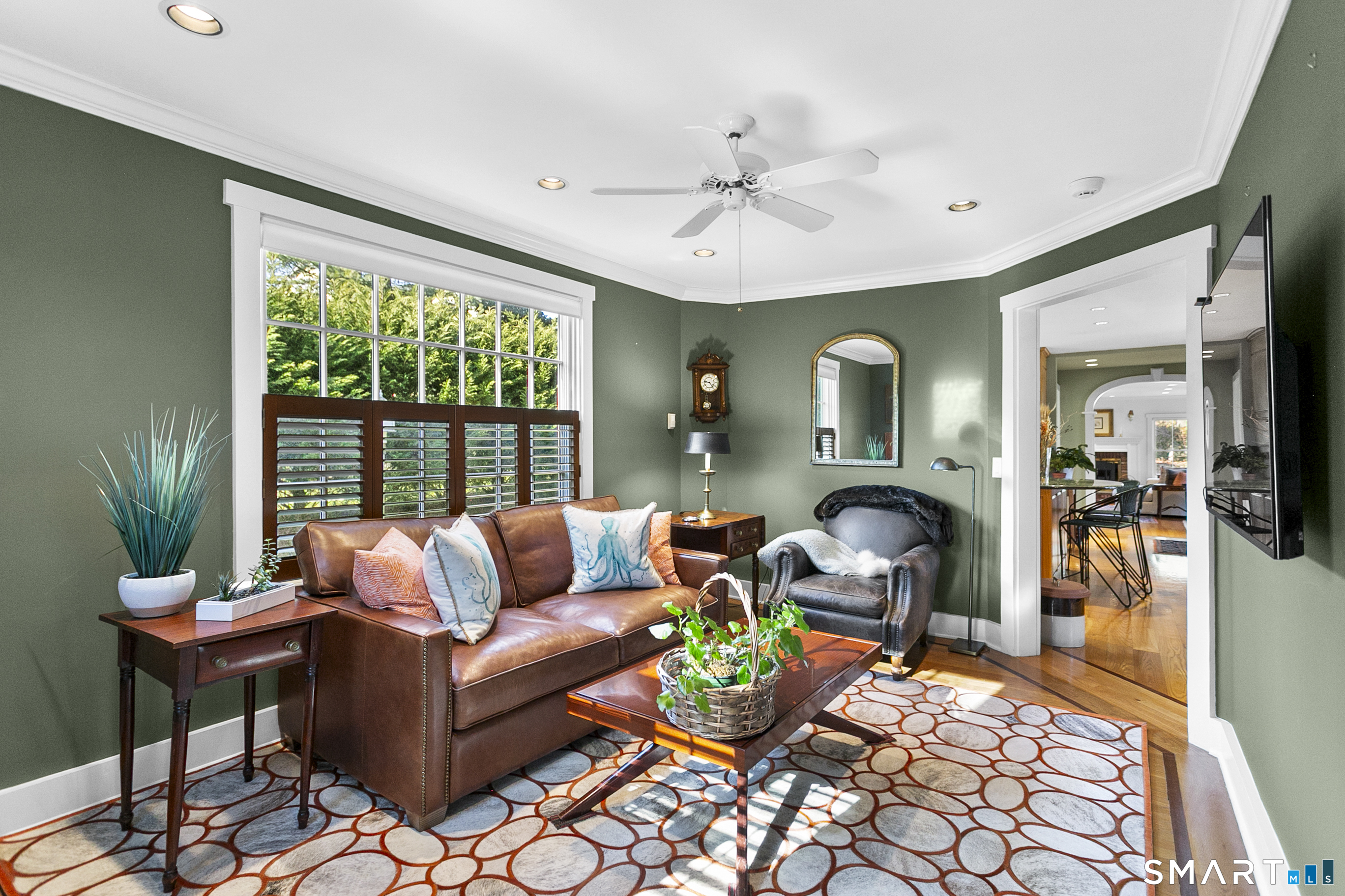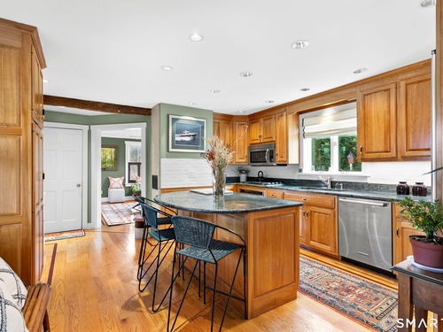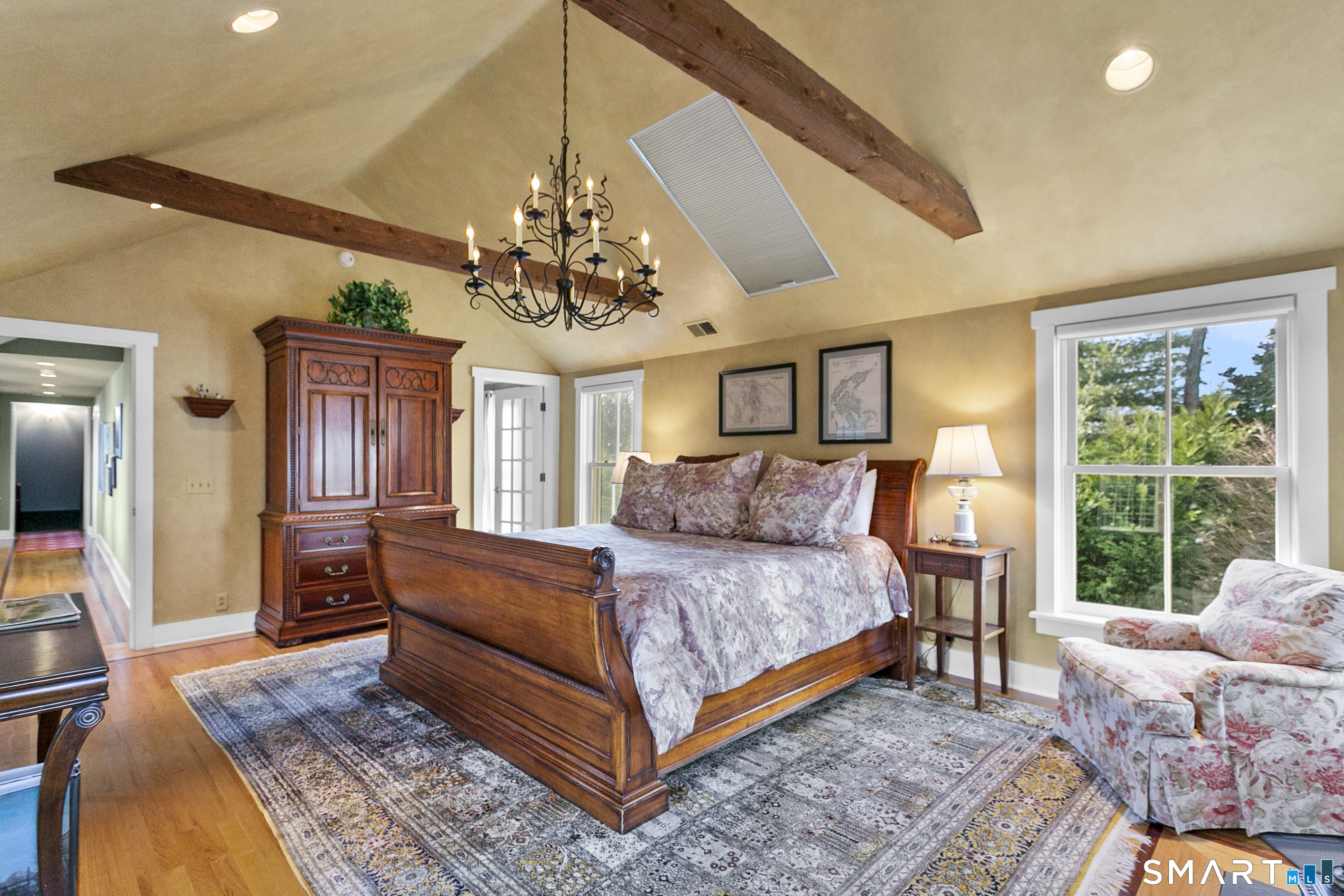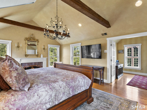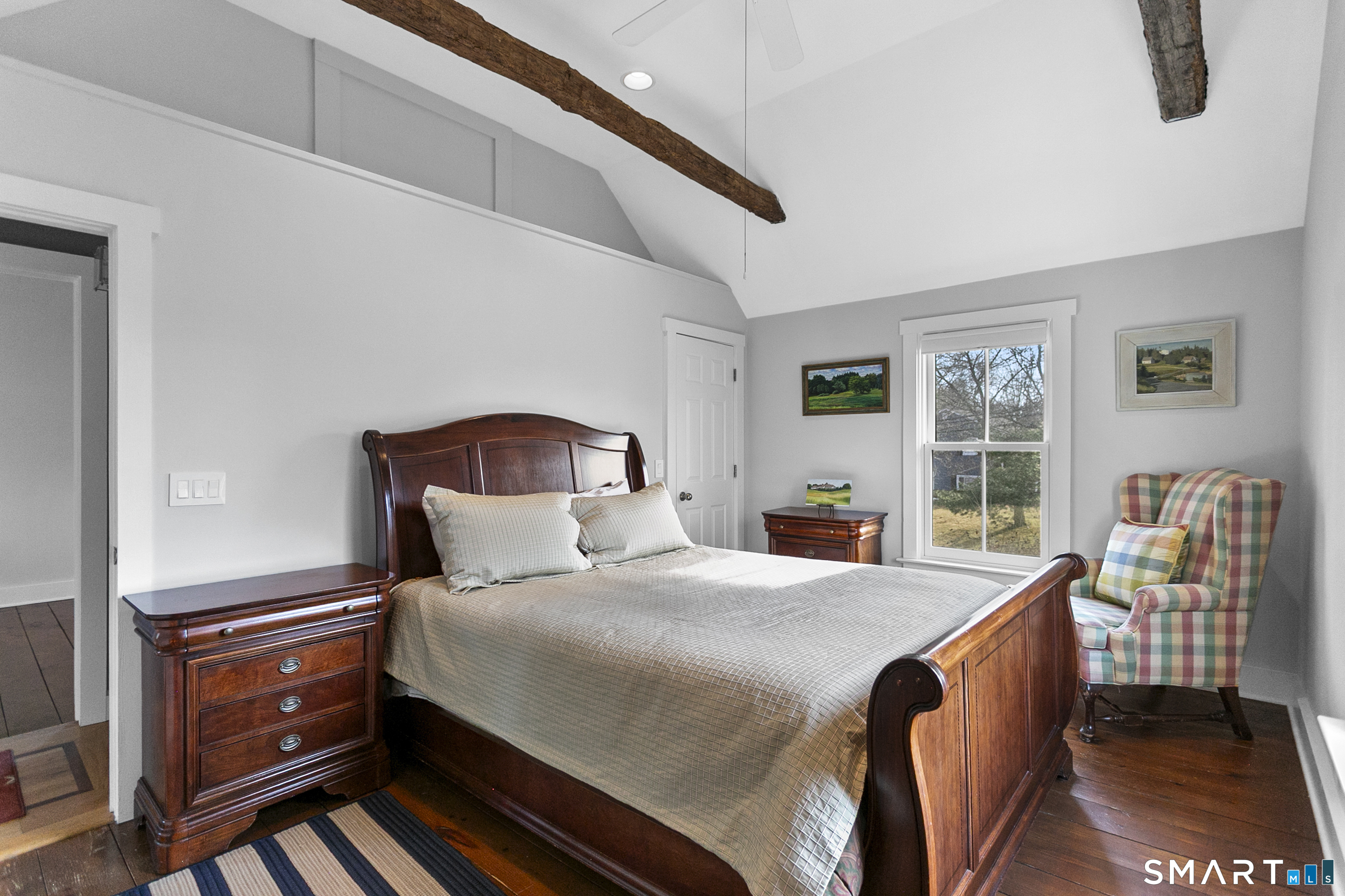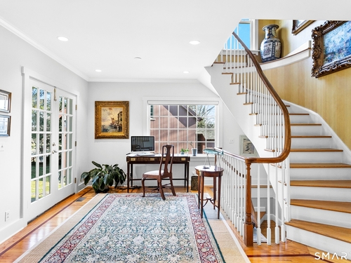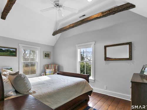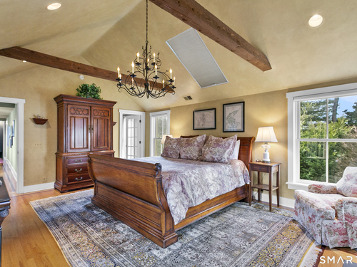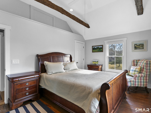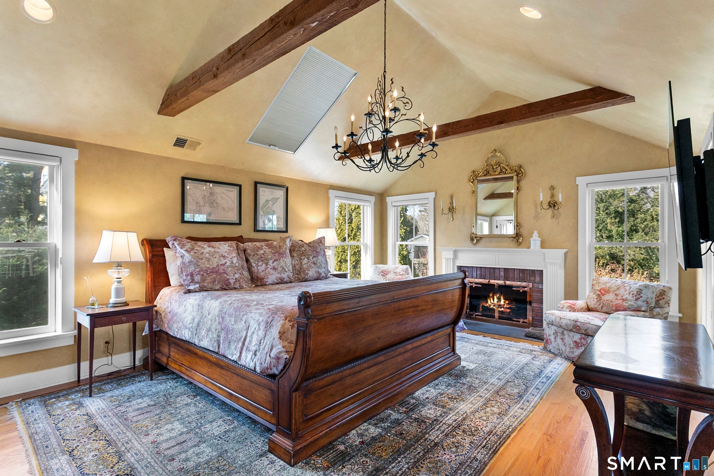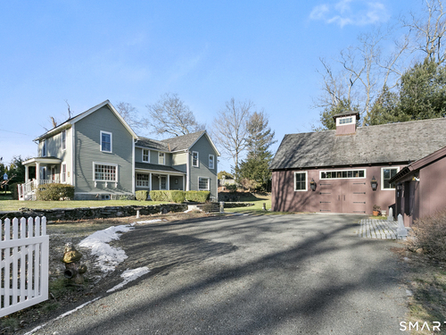 Timeless 1896 Colonial Farmhouse with Renovated Barn in the heart of Fairfield. Step into the charm of a bygone era with the comforts of modern living in this beautiful, preserved Vintage home, thoughtfully expanded and updated. Rich in character, the home features soaring ceilings, original beams and vaulted ceilings, 2 staircases, one elegantly curved, gleaming hardwood floors, wide plank floors, and distinctive architectural details throughout. A substantial 2000 addition enhances both functionality and flow while maintaining the homes historic integrity. Enjoy cozy evenings by either of the two fireplaces, one gas in primary suite and wood in the Family Room providing warmth and ambiance year-round. The fully renovated barn (2010) adds sq footage with 2 lofts and large windows... Truly a showpiece, offering exceptional versatility. Ideal as a party barn, artist's studio, workshop, or multi-vehicle storage, plus a possible ADU. Outdoors, a covered mahogany deck overlooks a private, fenced yard-perfect for entertaining or peaceful relaxation. French doors exiting office area to a stone patio for enjoying the sun and dining outside. Partially finished lower level, with unique wine cellar area waiting for finishing touches. Located just minutes from Fairfield's beaches, town center, train, shopping and dining, this property offers both convenience and character. A rare opportunity to own a piece of Fairfield's history, thoughtfully updated for today's lifestyle.