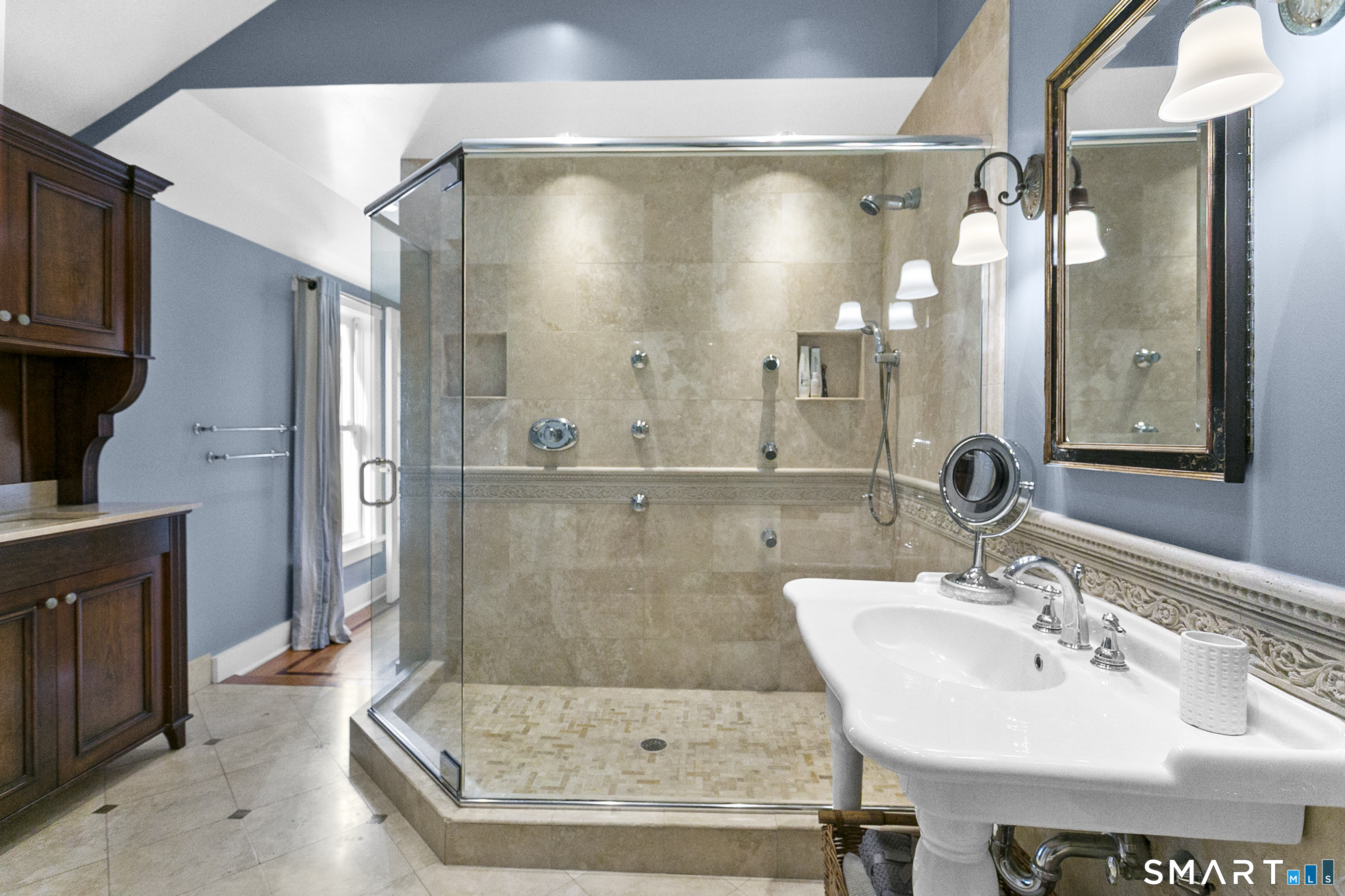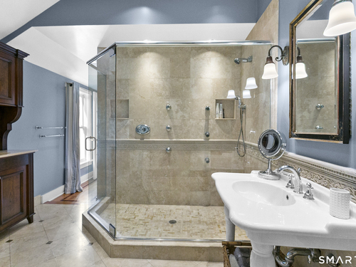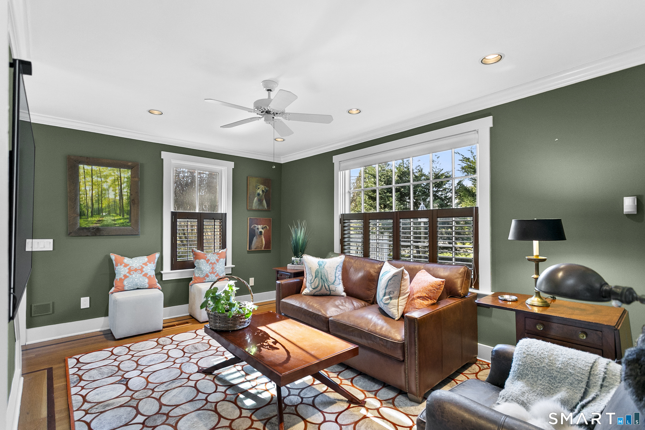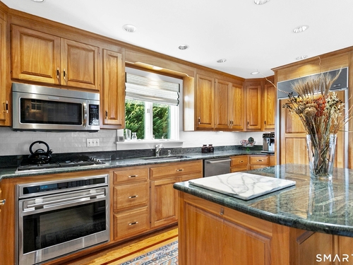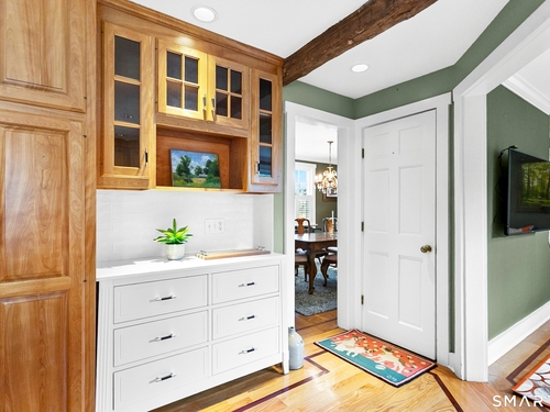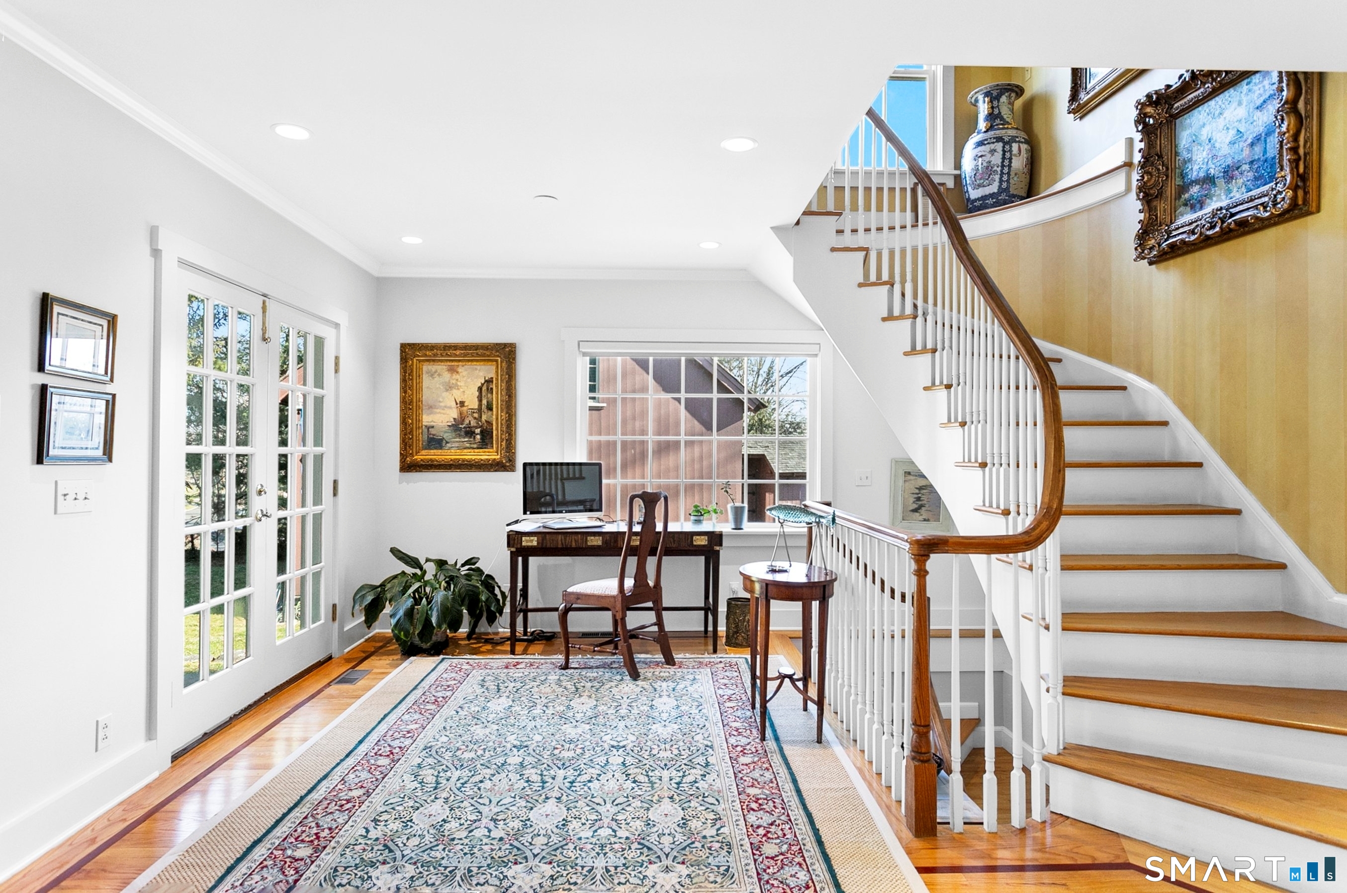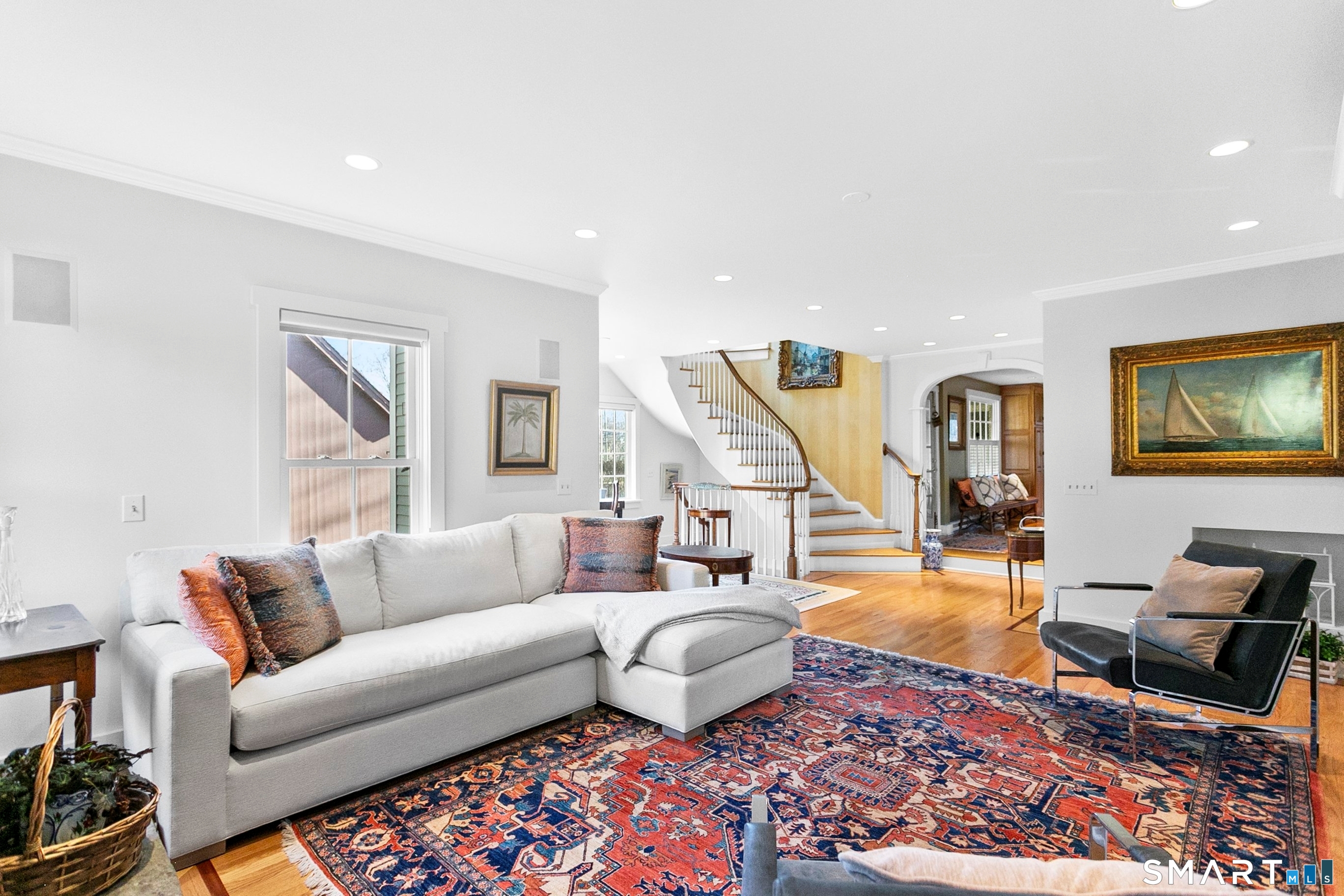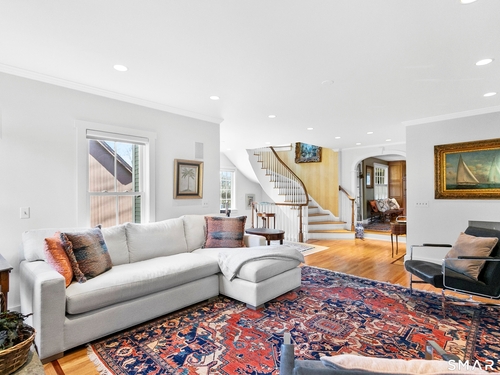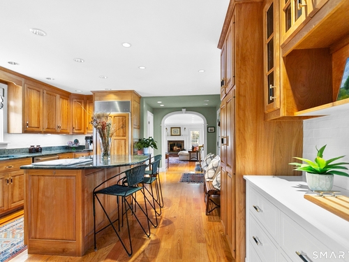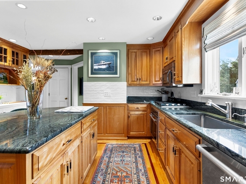 Timeless 1896 Colonial Farmhouse with Renovated Barn in the heart of Fairfield. Step into the charm of a bygone era with the comforts of modern living in this beautiful, preserved Vintage home, thoughtfully expanded and updated. Rich in character, the home features soaring ceilings, original beams and vaulted ceilings, 2 staircases, one elegantly curved, gleaming hardwood floors, wide plank floors, and distinctive architectural details throughout. A substantial 2000 addition enhances both functionality and flow while maintaining the homes historic integrity. Enjoy cozy evenings by either of the two fireplaces, one gas in primary suite and wood in the Family Room providing warmth and ambiance year-round. The fully renovated barn (2010) adds sq footage with 2 lofts and large windows... Truly a showpiece, offering exceptional versatility. Ideal as a party barn, artist's studio, workshop, or multi-vehicle storage, plus a possible ADU. Outdoors, a covered mahogany deck overlooks a private, fenced yard-perfect for entertaining or peaceful relaxation. French doors exiting office area to a stone patio for enjoying the sun and dining outside. Partially finished lower level, with unique wine cellar area waiting for finishing touches. Located just minutes from Fairfield's beaches, town center, train, shopping and dining, this property offers both convenience and character. A rare opportunity to own a piece of Fairfield's history, thoughtfully updated for today's lifestyle.