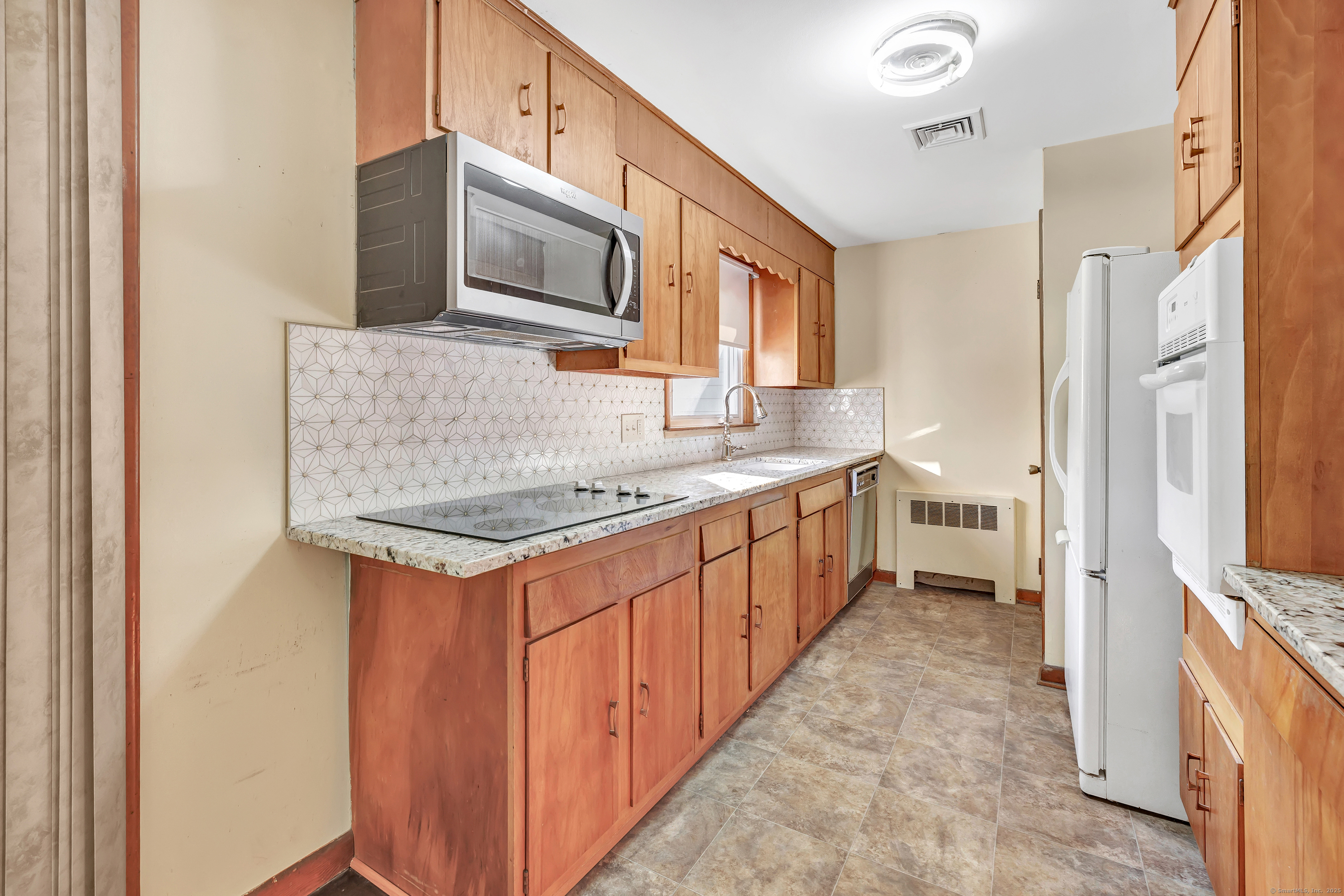 Welcome to effortless one-level living in this super sweet and sunny 2-bedroom gem, where comfort meets harmony in all the right ways. The inviting living room is anchored by a cozy brick fireplace with custom mantel -perfect for chilly nights or a stylish focal point all year round. The fully applianced galley style kitchen with granite counters offers both efficiency and charm, and there's even a pantry for added storage, as well as an easy flow into the dining area. Sliders lead to a bright sunroom-ideal as-is or a perfect candidate for future expansion. Enjoy the convenience of an attached garage, a full unfinished basement with endless possibilities, and a fenced-in yard ready for play, pets, or your next garden project. Light, bright, and ready for you, this home is packed with value and waiting for its next chapter with you.