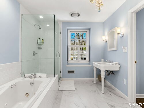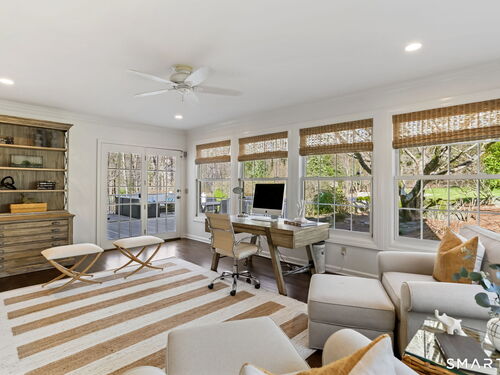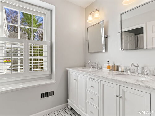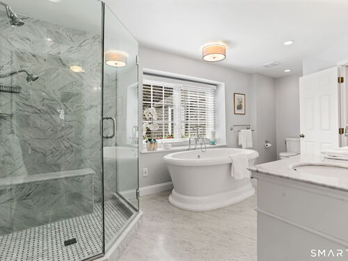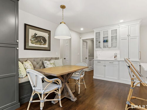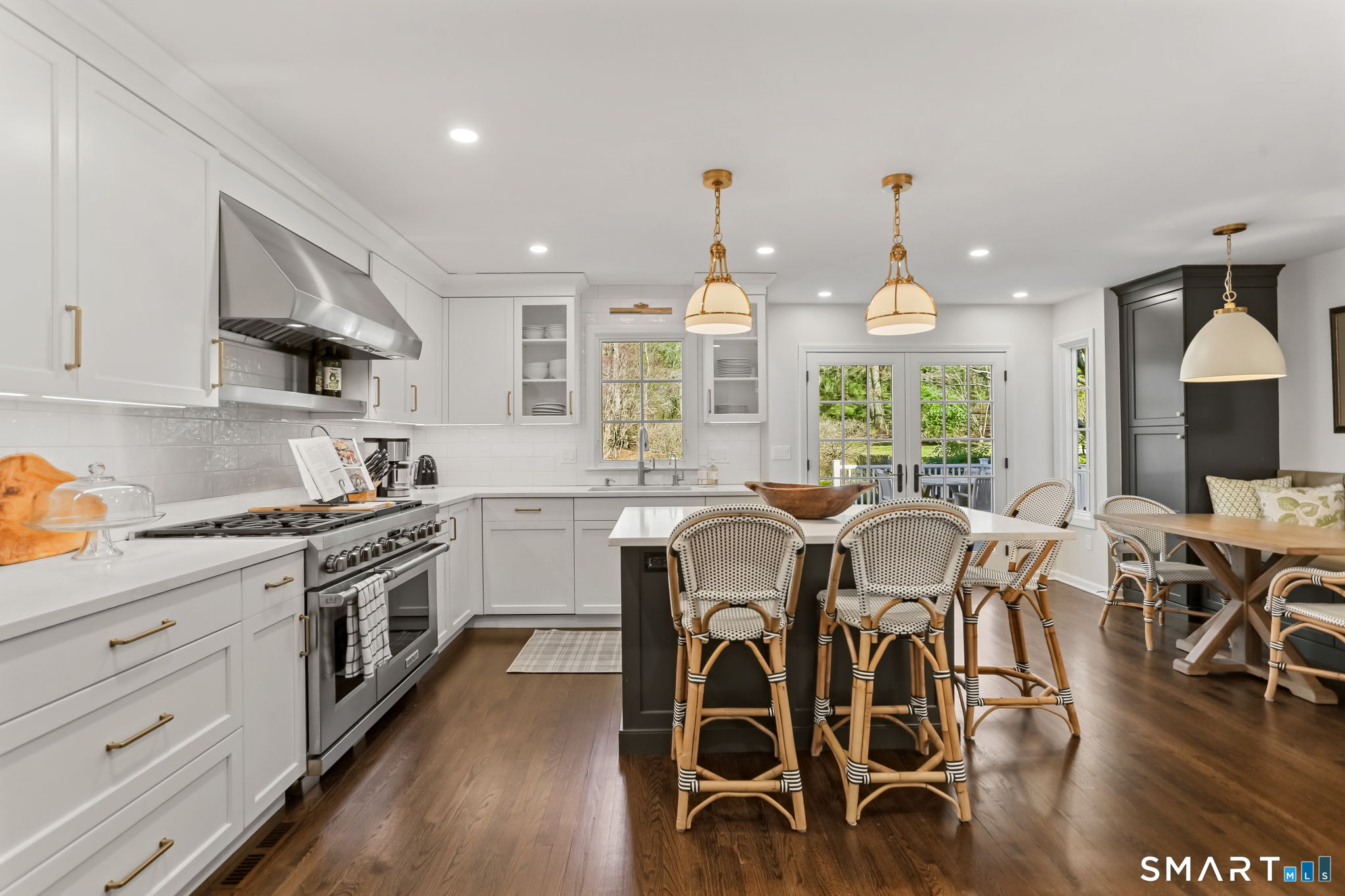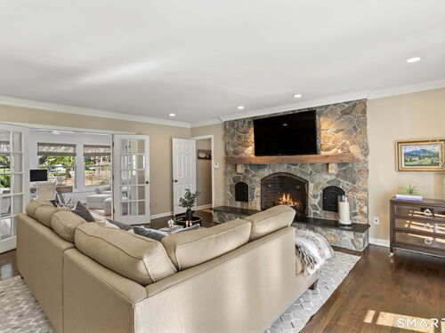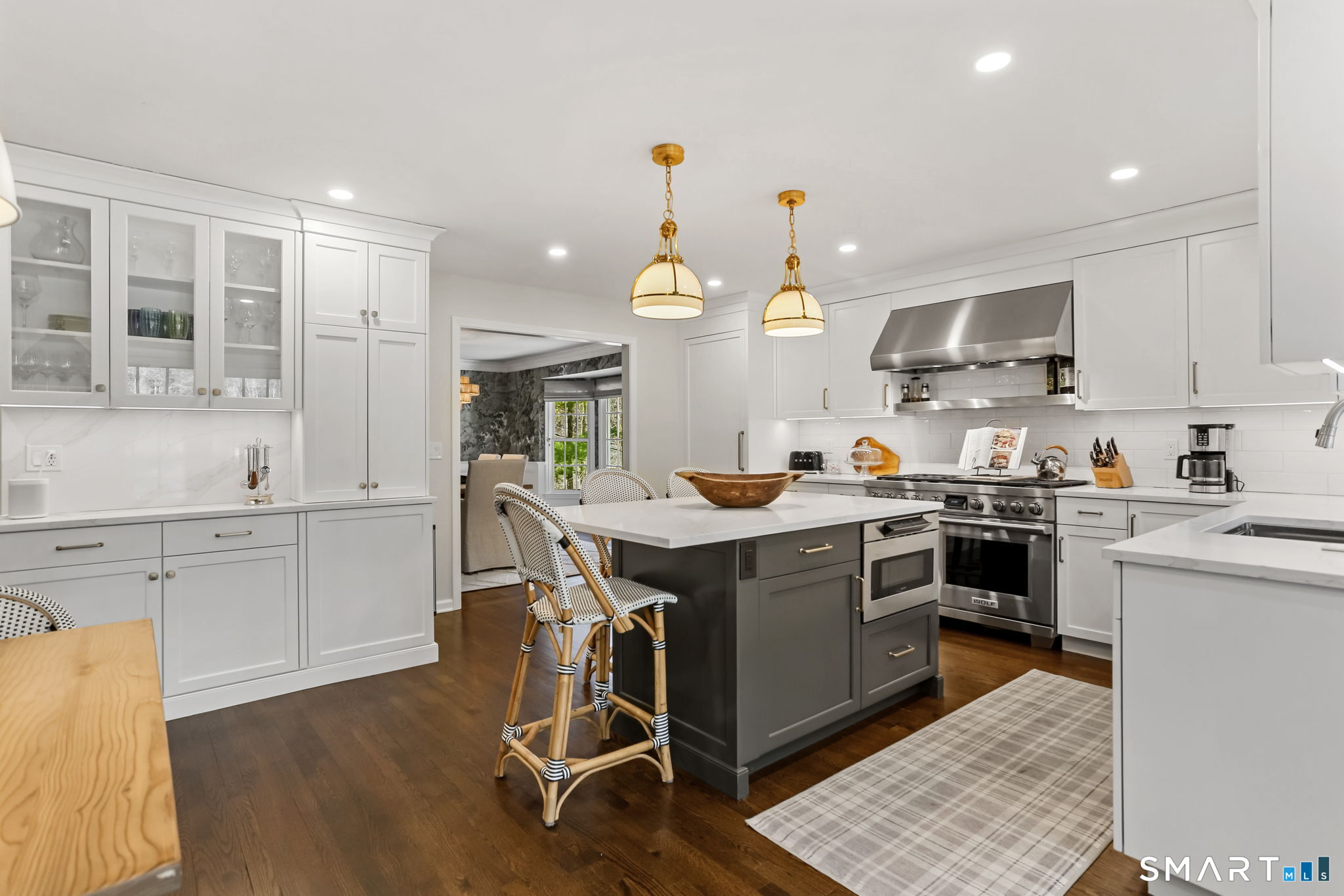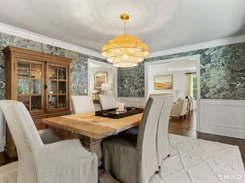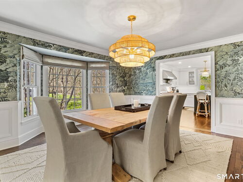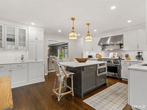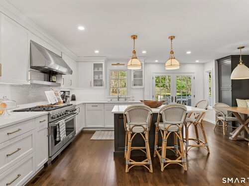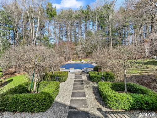 Enchanting countrystyle retreat offering the warmth of a welcoming neighborhood with the luxury of natural privacy, nestled amid professionally landscaped gardens and mature trees. Designed for gracious living and effortless entertaining, 165 Hemlock Hills S blends refined upgrades with modern comfort throughout. Featuring two primary suites, five bedrooms, and four beautifully renovated baths, the home centers around a stunning NuKitchens renovation with custom Plain & Fancy cabinetry, SubZero column refrigerator and freezer, quartz countertops, island and banquette seating, plus new laundry room. Enlarged doorways invite sunlight and frame serene pool and garden views, creating a seamless indoor/outdoor connection. Multiple living spaces support every lifestyle moment: a fireside living room, dramatic dining room, family room with stone fireplace, sunroom wrapped in windows, and a media room with beverage bar. New trim, lighting, and elevated decor add quiet sophistication throughout. Basement playroom offers flexible space. Outside, the resort-inspired backyard is a private escape, with newer Trex deck and fences, poolside patio, fire pit for evenings into late fall, winding gravel paths, and lush seasonal landscaping. Well water available for pool; home has city water. Newer driveway, roof, furnace, water purification system. Peaceful, private, and beautifully connected-just five minutes to Trader Joe's and highway access. A home for how you live today.