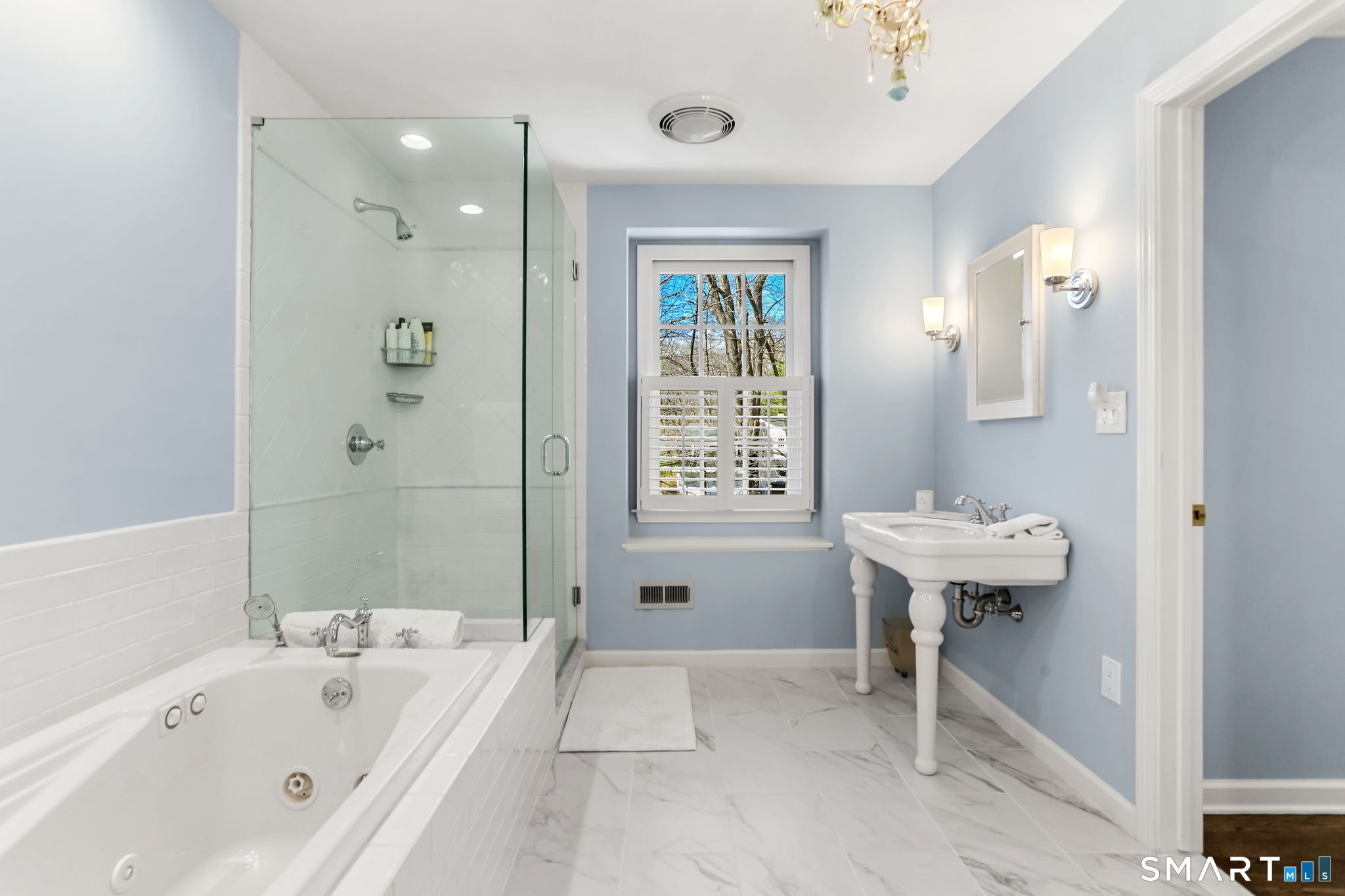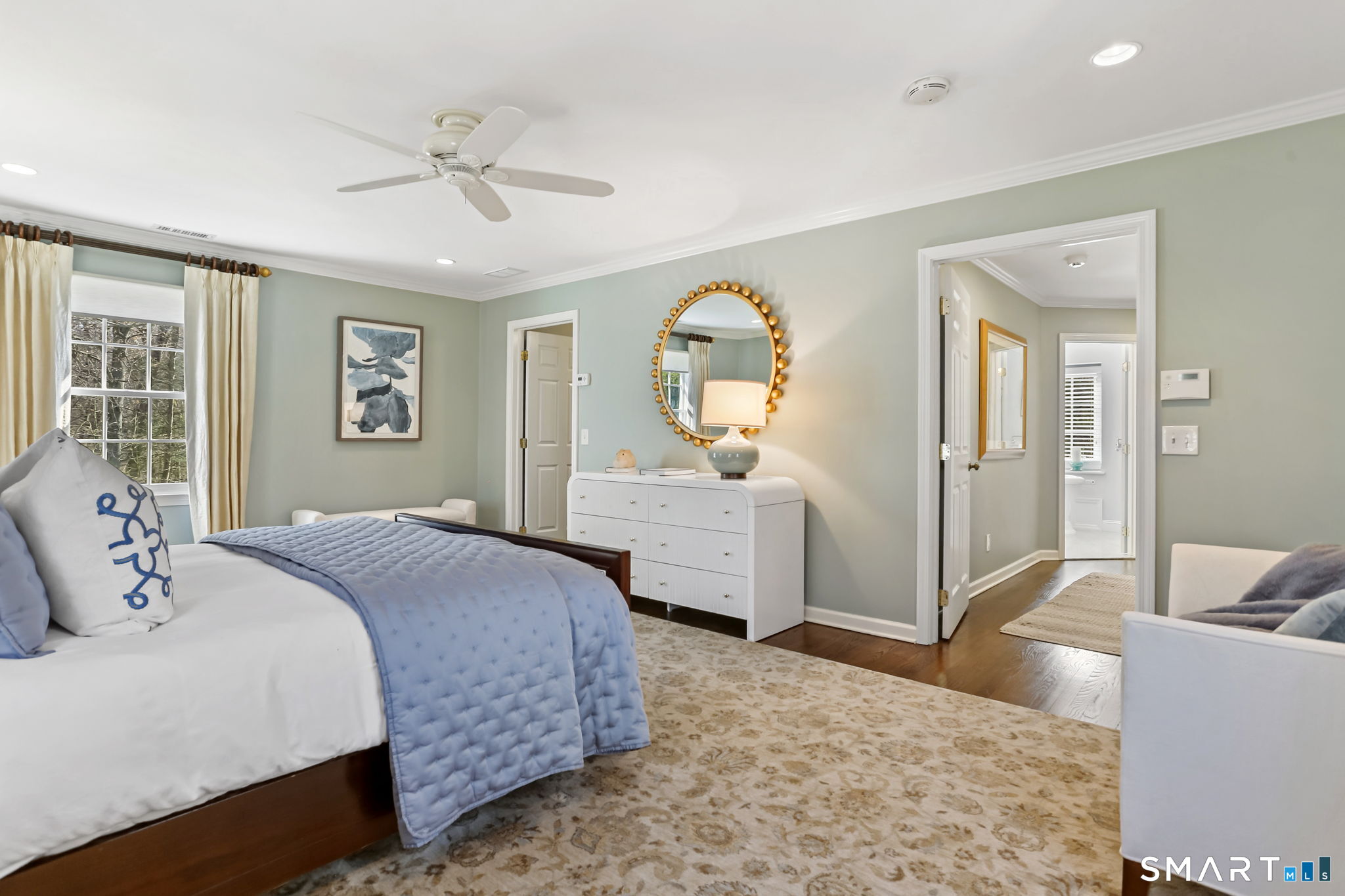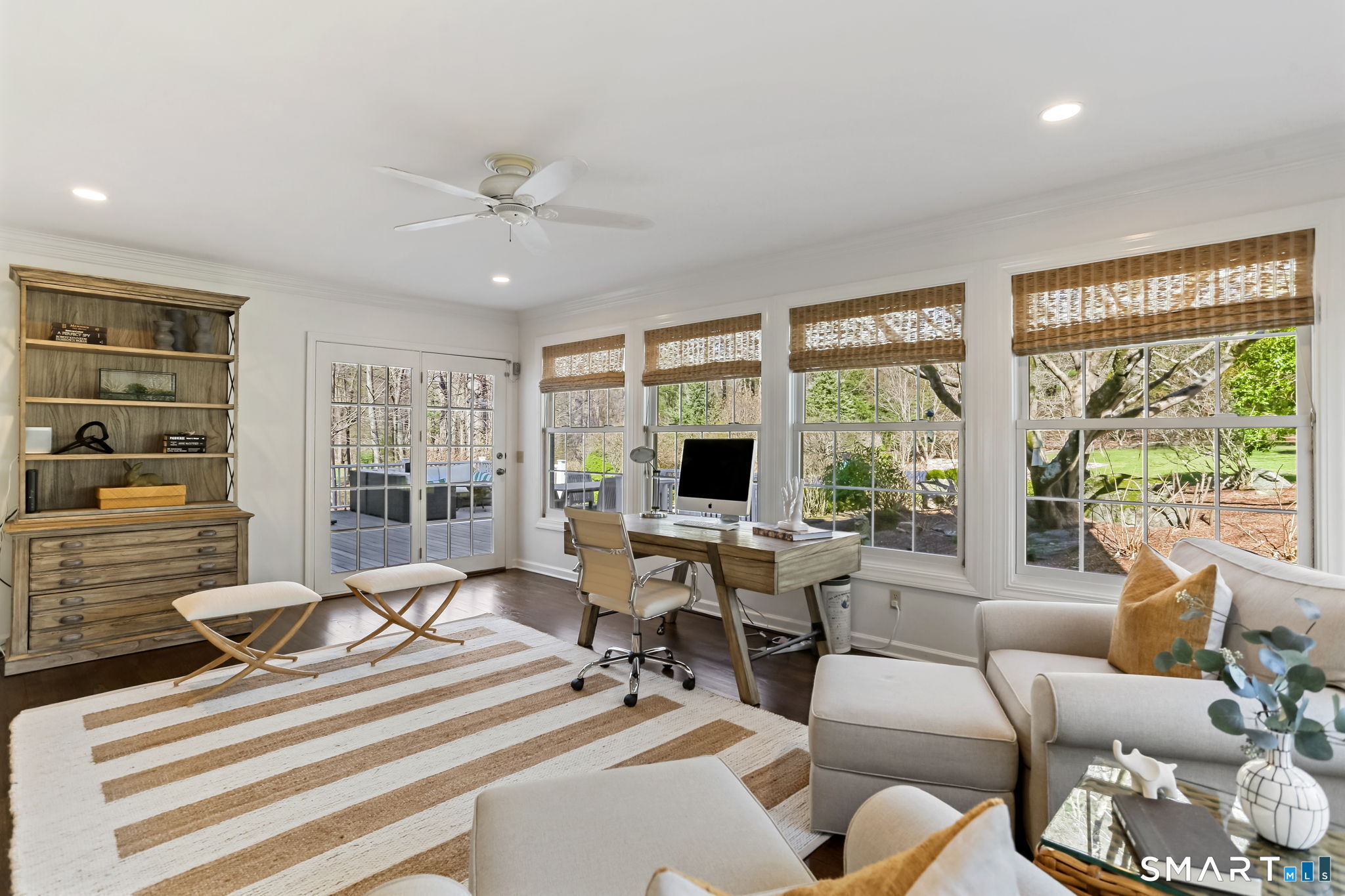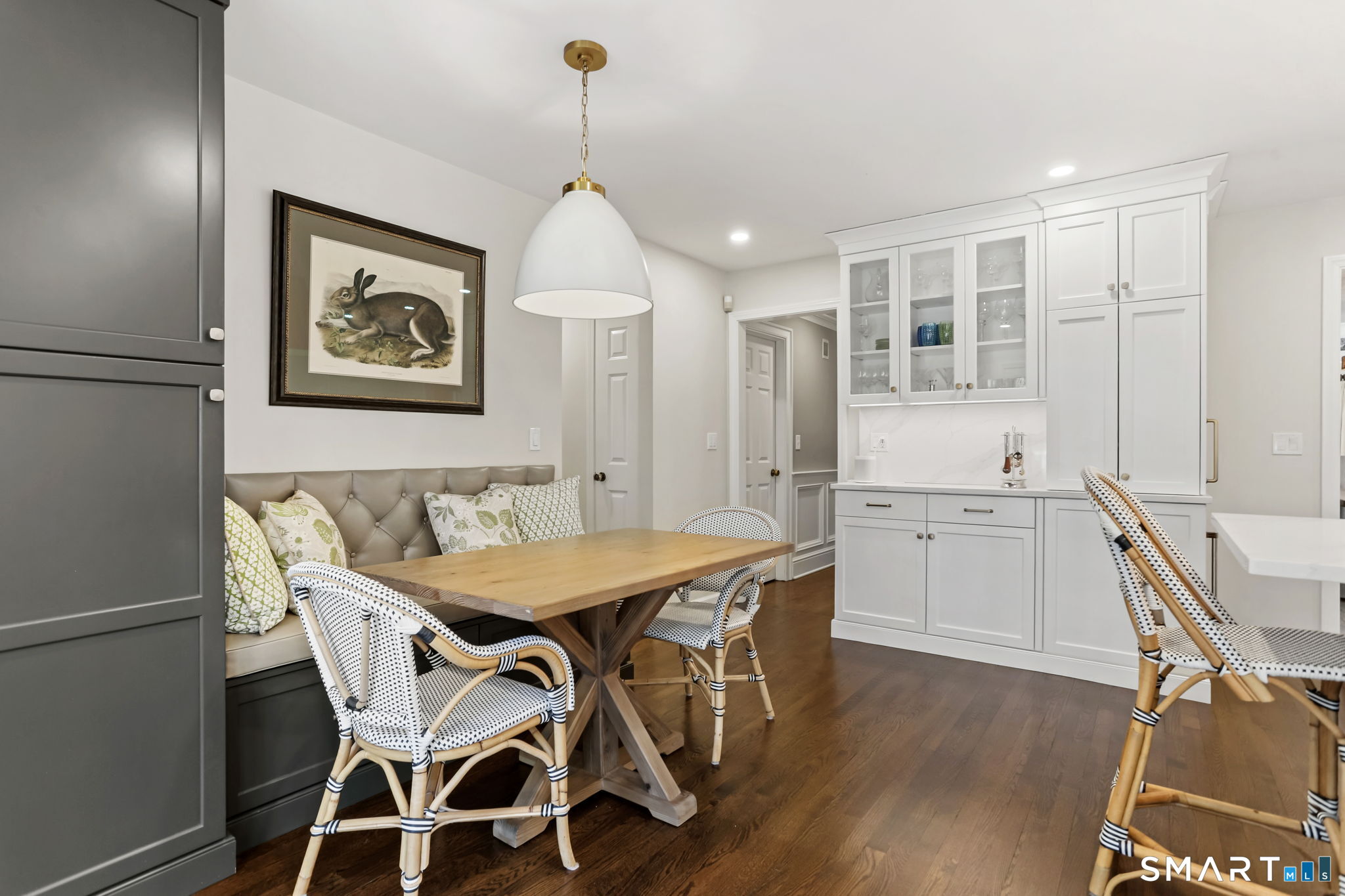 Enchanting countrystyle retreat offering the warmth of a welcoming neighborhood with the luxury of natural privacy, nestled amid professionally landscaped gardens and mature trees. Designed for gracious living and effortless entertaining, 165 Hemlock Hills S blends refined upgrades with modern comfort throughout. Featuring two primary suites, five bedrooms, and four beautifully renovated baths, the home centers around a stunning NuKitchens renovation with custom Plain & Fancy cabinetry, SubZero column refrigerator and freezer, quartz countertops, island and banquette seating, plus new laundry room. Enlarged doorways invite sunlight and frame serene pool and garden views, creating a seamless indoor/outdoor connection. Multiple living spaces support every lifestyle moment: a fireside living room, dramatic dining room, family room with stone fireplace, sunroom wrapped in windows, and a media room with beverage bar. New trim, lighting, and elevated decor add quiet sophistication throughout. Basement playroom offers flexible space. Outside, the resort-inspired backyard is a private escape, with newer Trex deck and fences, poolside patio, fire pit for evenings into late fall, winding gravel paths, and lush seasonal landscaping. Well water available for pool; home has city water. Newer driveway, roof, furnace, water purification system. Peaceful, private, and beautifully connected-just five minutes to Trader Joe's and highway access. A home for how you live today.