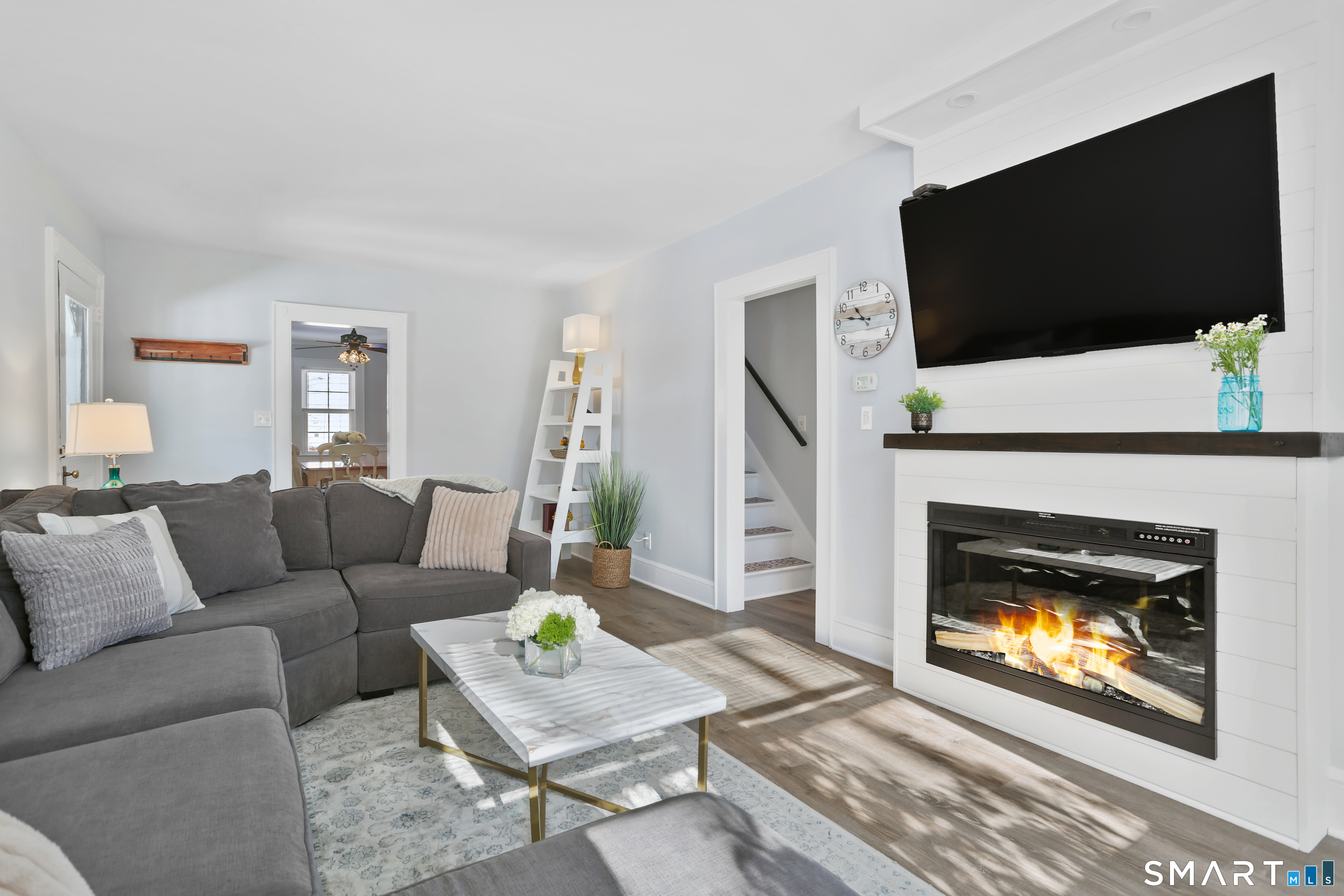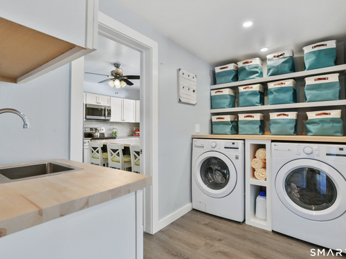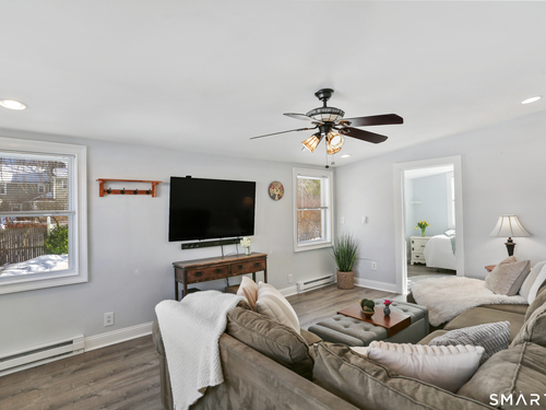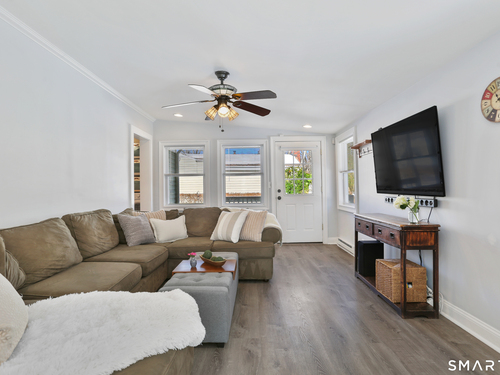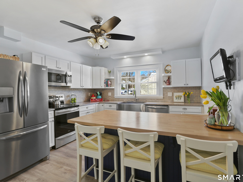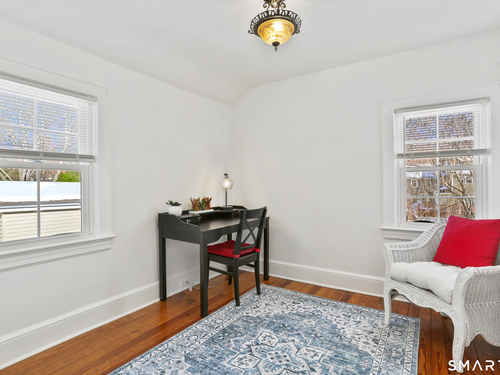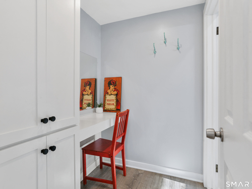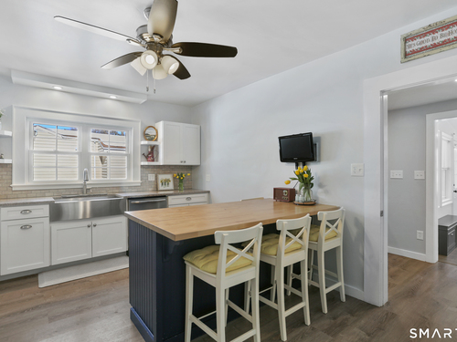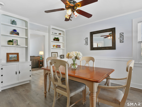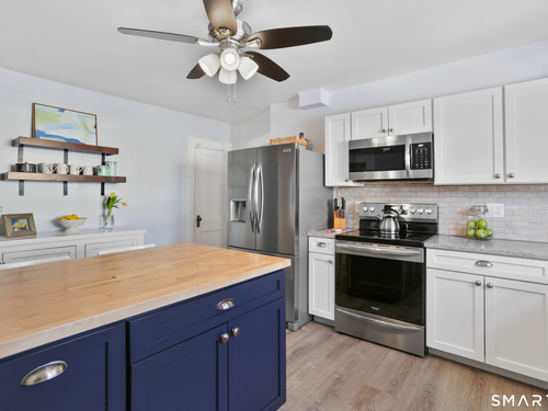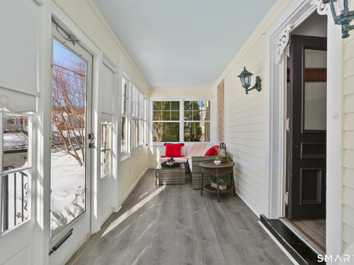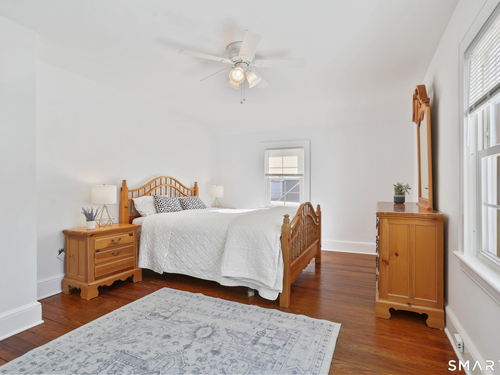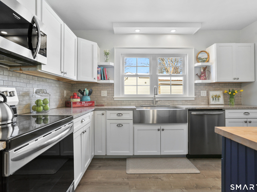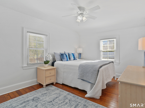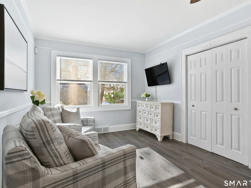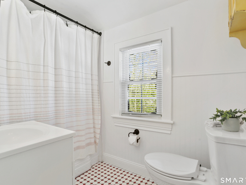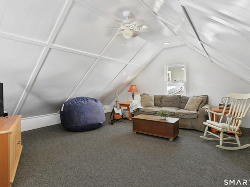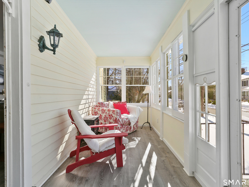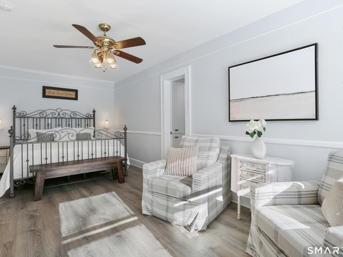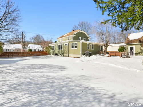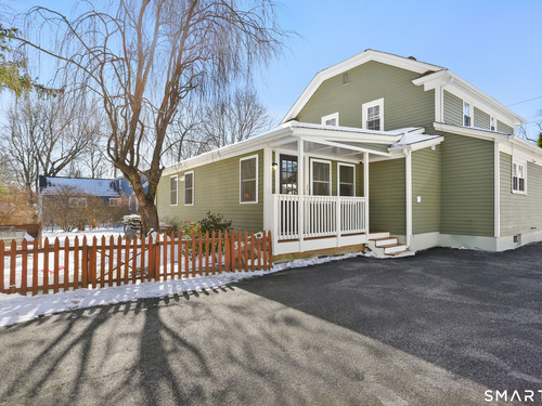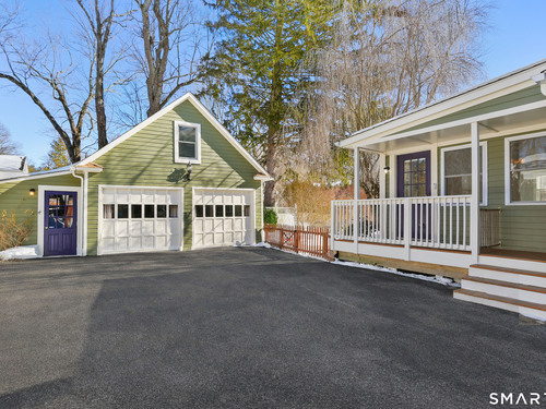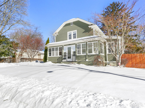 Welcome to this beautiful Stratfield farmhouse Colonial, where classic charm meets modern comfort. Enter through the sun-filled enclosed front porch into a bright and inviting living room. Just off the living room, a spacious dining room with timeless built-ins offers the perfect setting for everyday meals or special gatherings. The kitchen features white cabinetry, stainless steel appliances, silestone countertops, and a generous island with butcher block countertop. The main level also includes a separate laundry room with sink and an updated full bath with shower. A spacious family room overlooks the fenced backyard, filling the space with natural light. An adjacent office/den provides flexible space for working from home or for a guest room. Completing the first floor is the primary suite, ideal for single-level living, featuring an updated full bath, dressing room and large closet. Upstairs, 3 comfortable bedrooms offer ample closet space and share a full bathroom. Outside, enjoy an oversized, fenced yard with patio-perfect for outdoor dining and entertaining. The detached two-car garage includes a finished space above, ideal for a studio, gym, or recreation space. Additional storage options in the unfinished basement. Set on a quiet street yet conveniently close to commuter routes, shopping, dining, beaches, and all that Fairfield has to offer, this home delivers the perfect blend of charm, space, and modern updates.