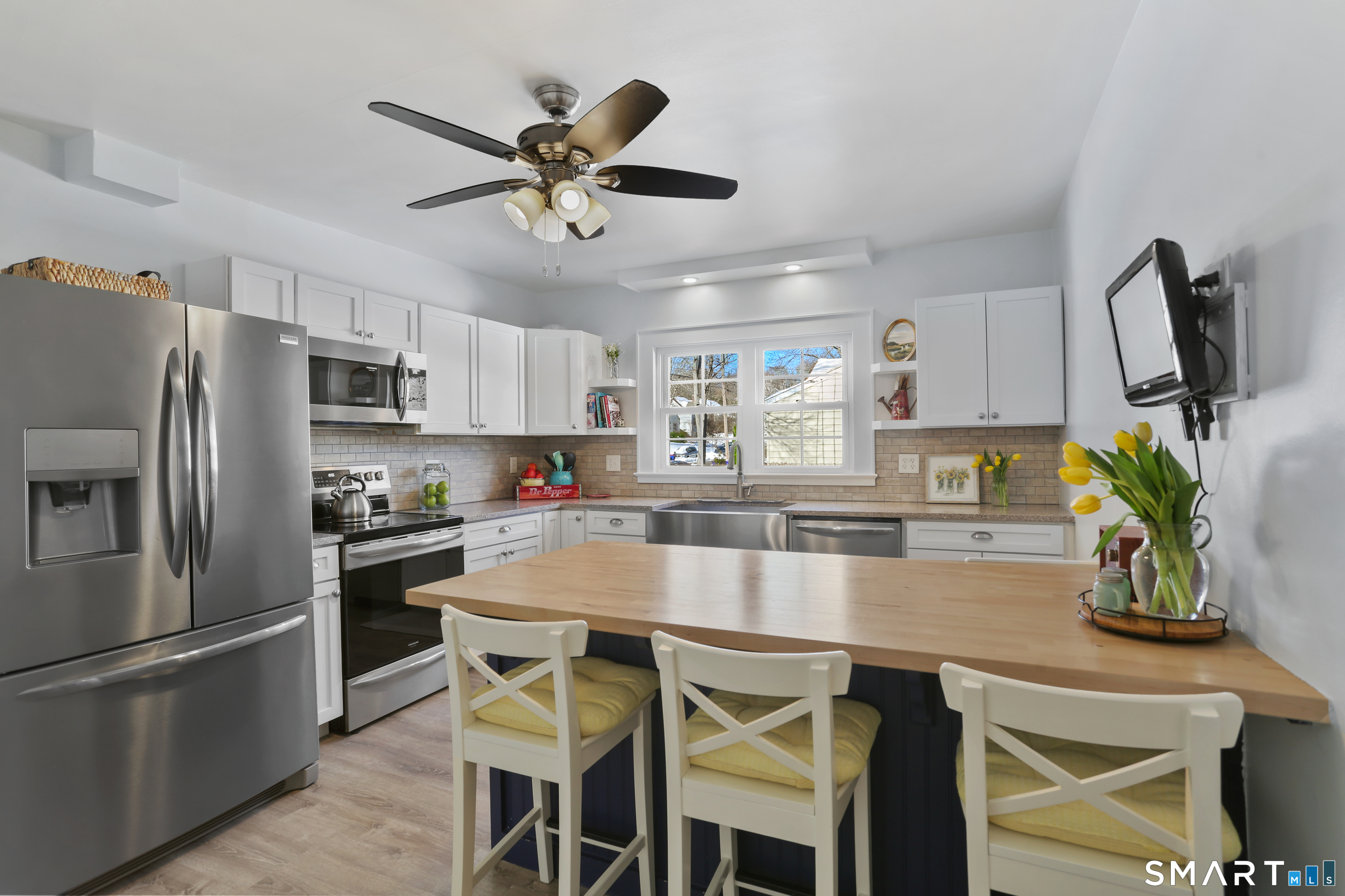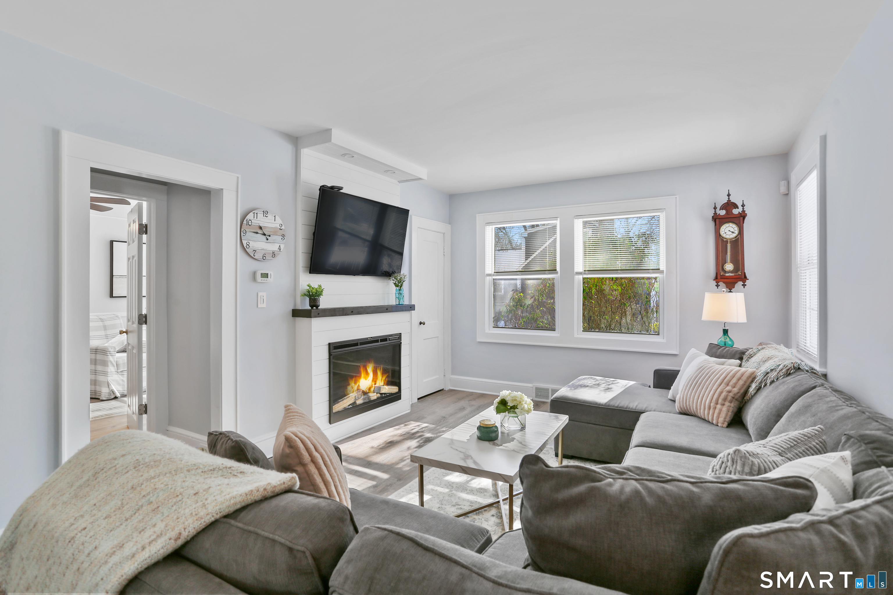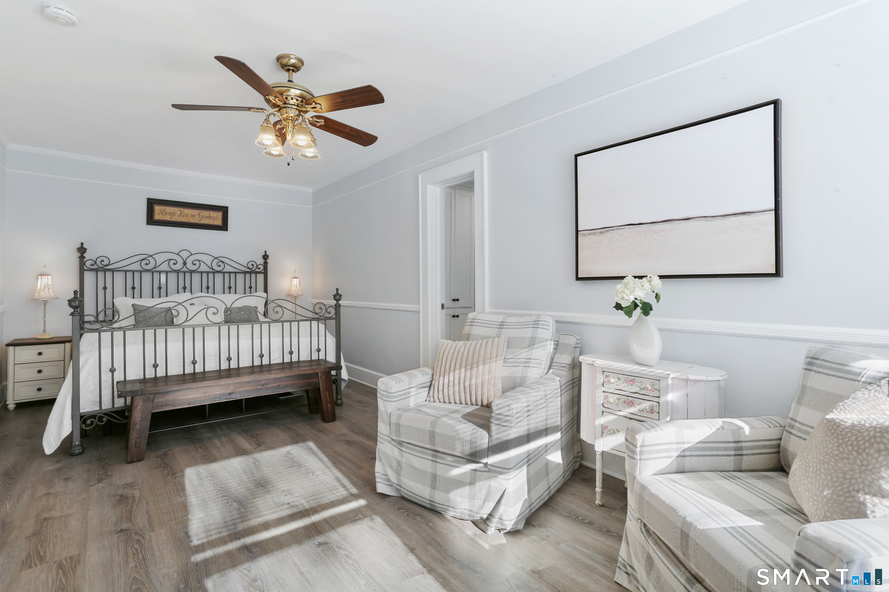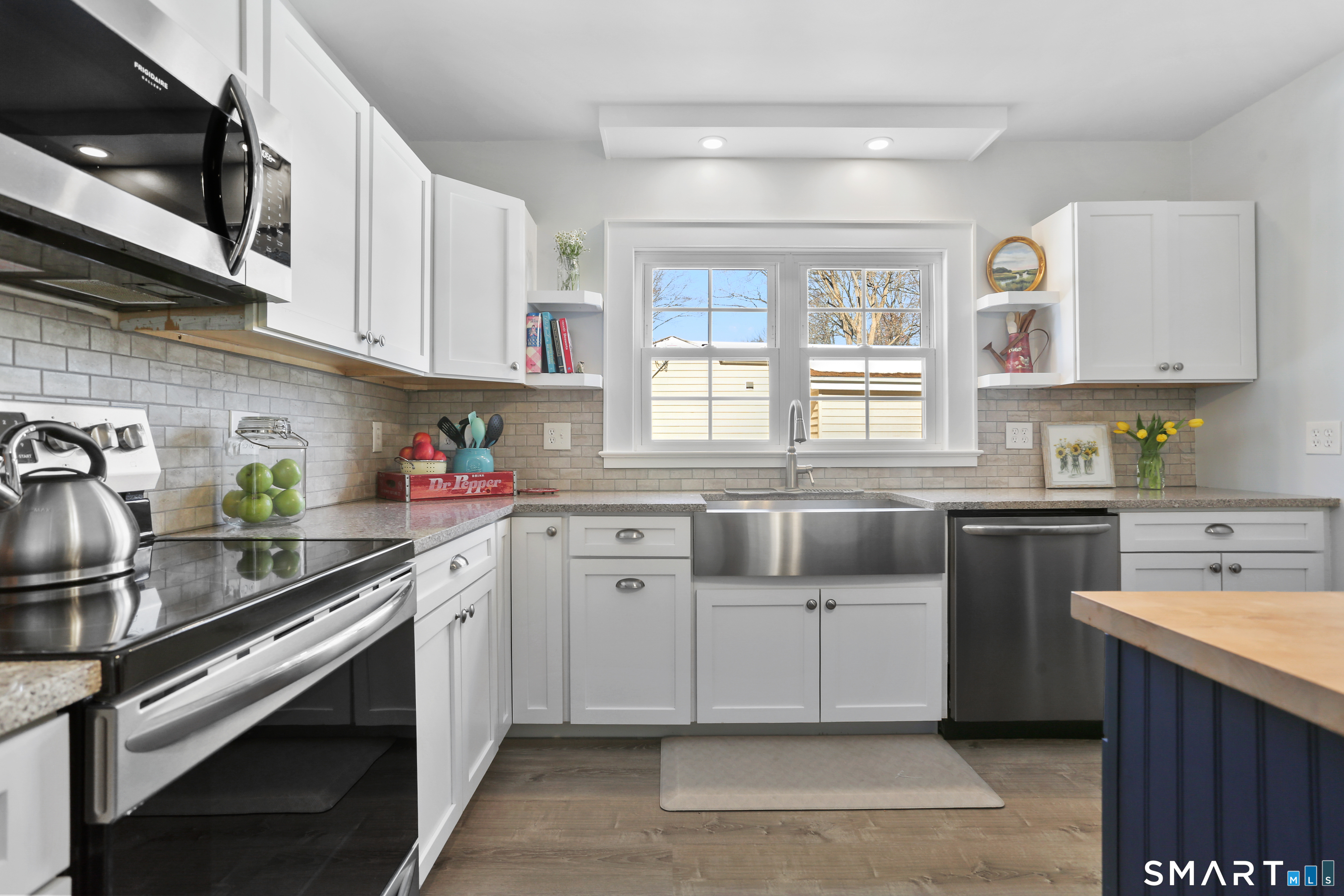 Welcome to this beautiful Stratfield farmhouse Colonial, where classic charm meets modern comfort. Enter through the sun-filled enclosed front porch into a bright and inviting living room. Just off the living room, a spacious dining room with timeless built-ins offers the perfect setting for everyday meals or special gatherings. The kitchen features white cabinetry, stainless steel appliances, silestone countertops, and a generous island with butcher block countertop. The main level also includes a separate laundry room with sink and an updated full bath with shower. A spacious family room overlooks the fenced backyard, filling the space with natural light. An adjacent office/den provides flexible space for working from home or for a guest room. Completing the first floor is the primary suite, ideal for single-level living, featuring an updated full bath, dressing room and large closet. Upstairs, 3 comfortable bedrooms offer ample closet space and share a full bathroom. Outside, enjoy an oversized, fenced yard with patio-perfect for outdoor dining and entertaining. The detached two-car garage includes a finished space above, ideal for a studio, gym, or recreation space. Additional storage options in the unfinished basement. Set on a quiet street yet conveniently close to commuter routes, shopping, dining, beaches, and all that Fairfield has to offer, this home delivers the perfect blend of charm, space, and modern updates.