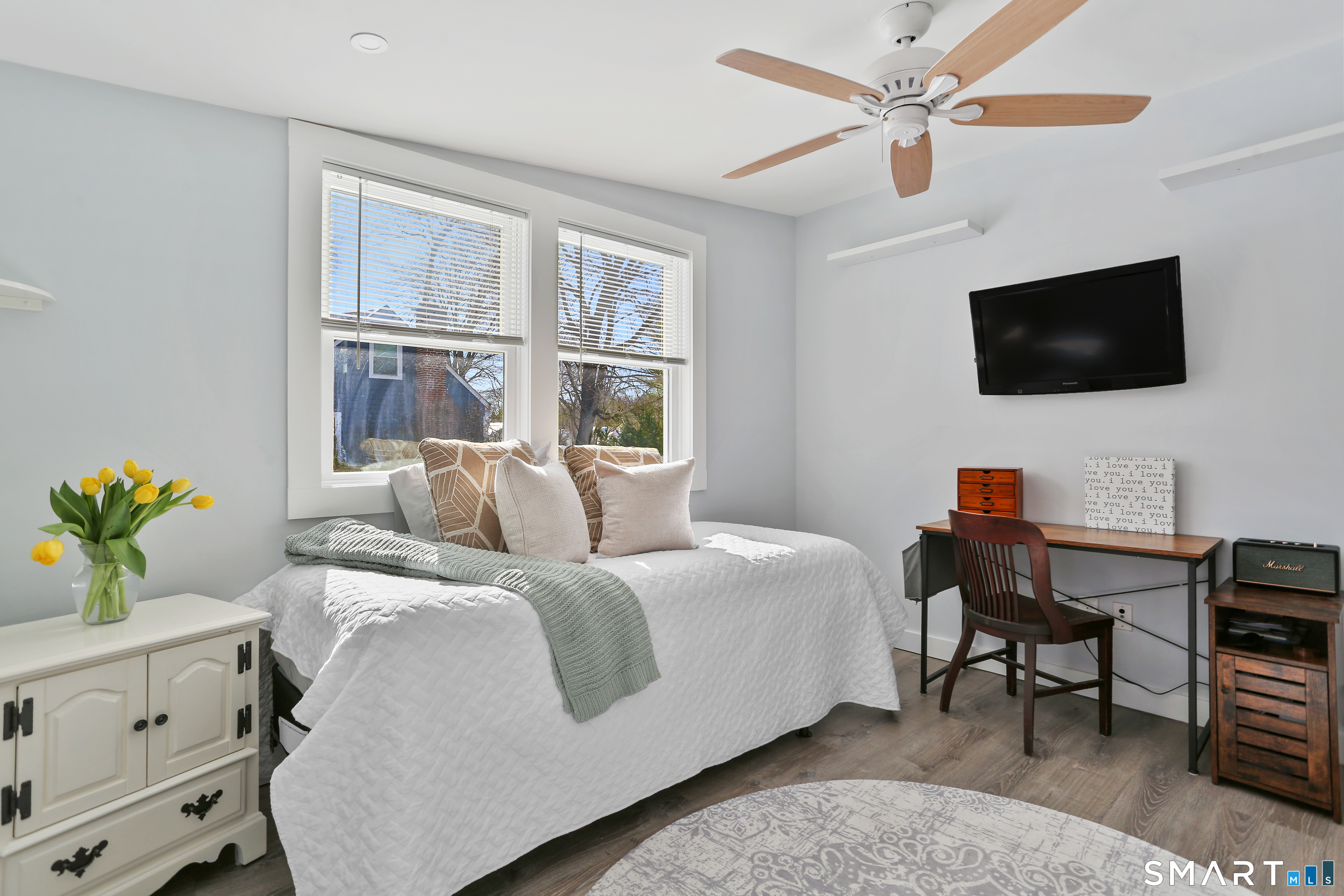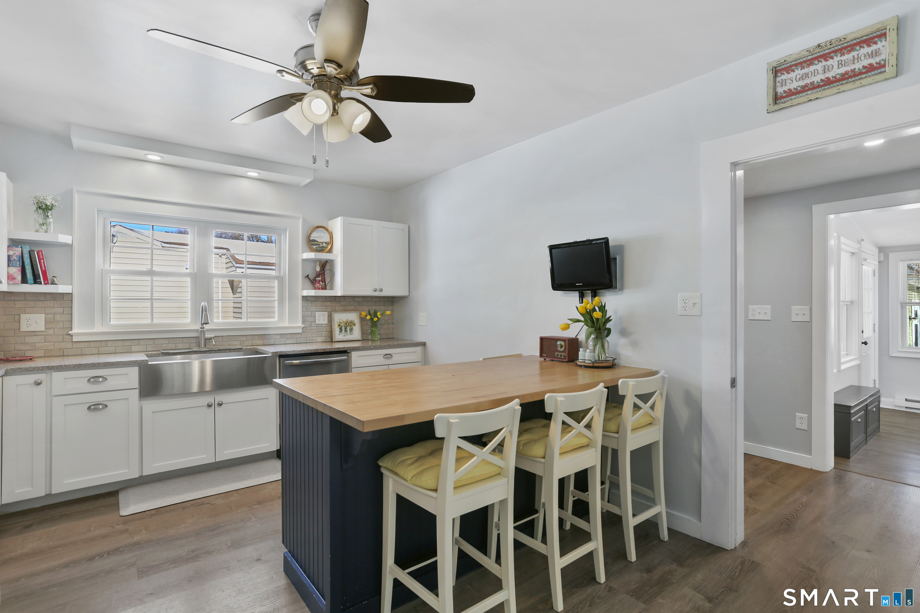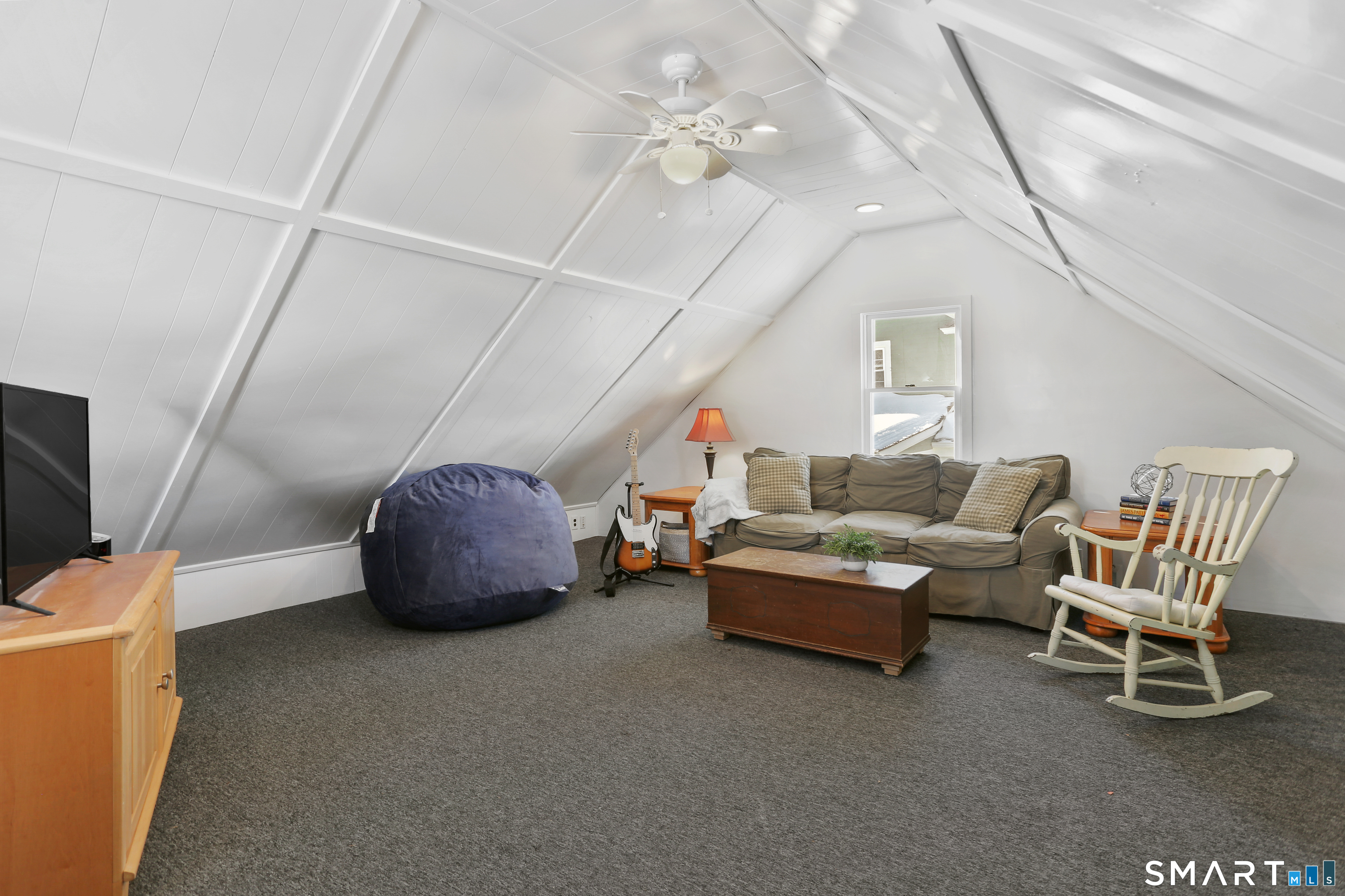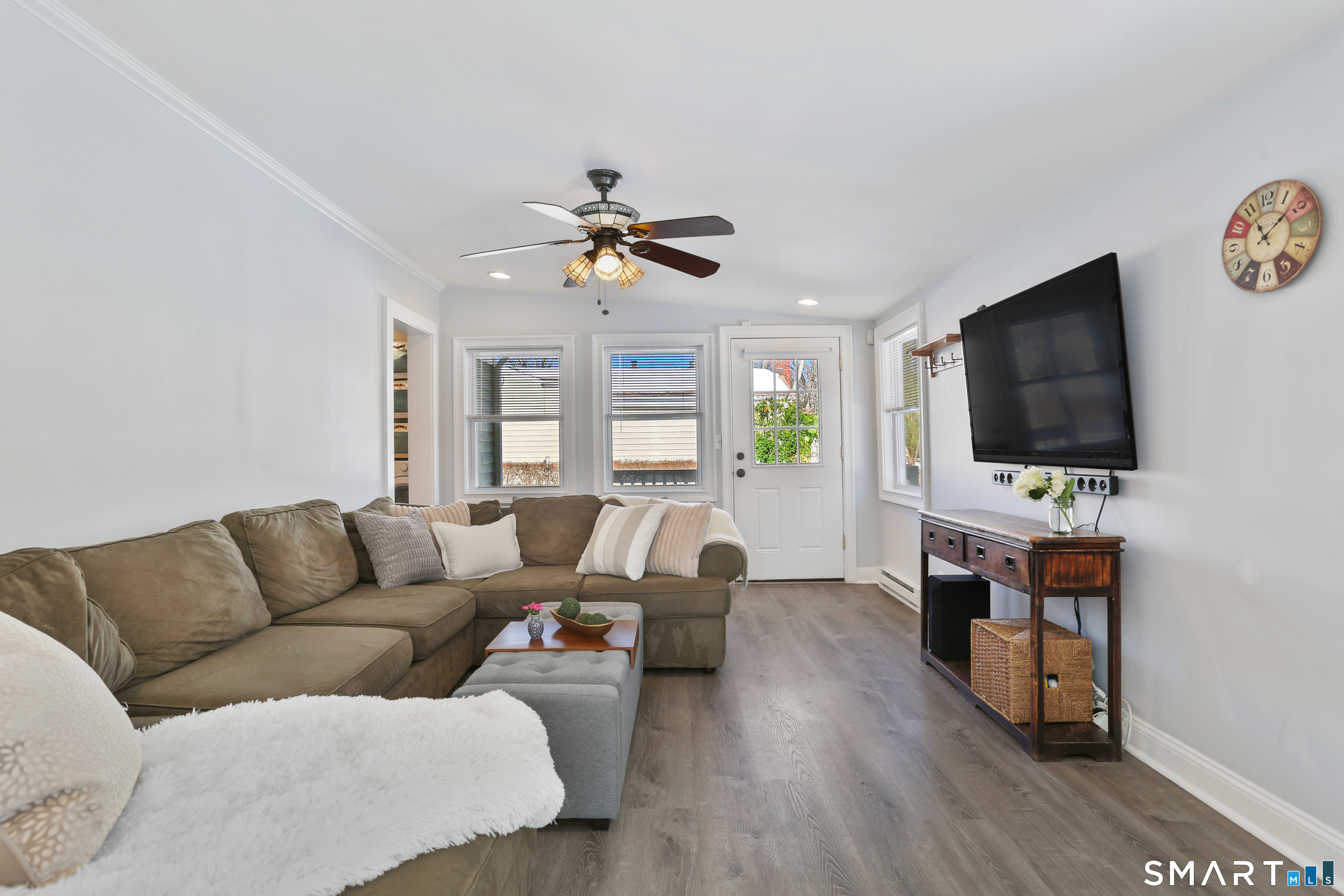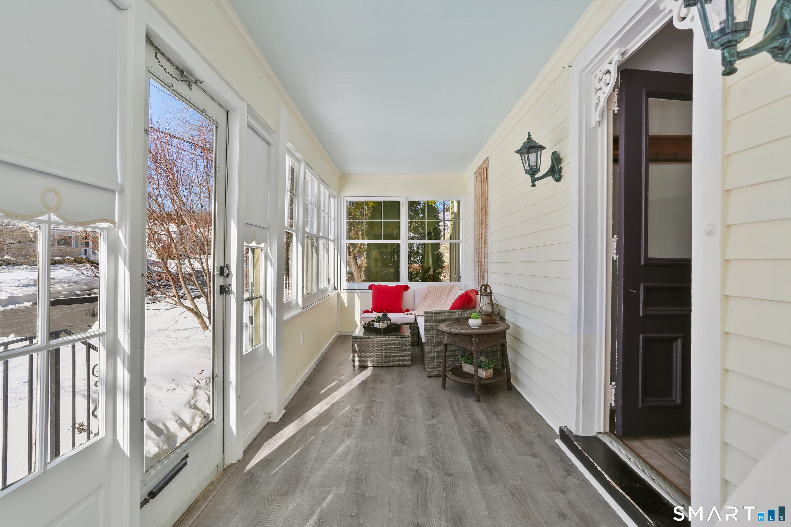 Welcome to this beautiful Stratfield farmhouse Colonial, where classic charm meets modern comfort. Enter through the sun-filled enclosed front porch into a bright and inviting living room. Just off the living room, a spacious dining room with timeless built-ins offers the perfect setting for everyday meals or special gatherings. The kitchen features white cabinetry, stainless steel appliances, silestone countertops, and a generous island with butcher block countertop. The main level also includes a separate laundry room with sink and an updated full bath with shower. A spacious family room overlooks the fenced backyard, filling the space with natural light. An adjacent office/den provides flexible space for working from home or for a guest room. Completing the first floor is the primary suite, ideal for single-level living, featuring an updated full bath, dressing room and large closet. Upstairs, 3 comfortable bedrooms offer ample closet space and share a full bathroom. Outside, enjoy an oversized, fenced yard with patio-perfect for outdoor dining and entertaining. The detached two-car garage includes a finished space above, ideal for a studio, gym, or recreation space. Additional storage options in the unfinished basement. Set on a quiet street yet conveniently close to commuter routes, shopping, dining, beaches, and all that Fairfield has to offer, this home delivers the perfect blend of charm, space, and modern updates.