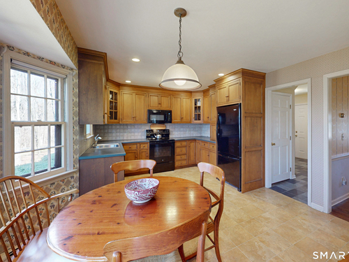 Tucked back, this Colonial sits on 2.33 private acres surrounded by mature landscaping and a peaceful, natural backdrop. A covered front porch offers a welcoming first impression and sets the tone for what's inside. The floor plan flows comfortably from room to room. A front to back living room with a wood burning fireplace offers generous space to gather or unwind, while the formal dining room is well positioned for special occasions. The vaulted family room is filled with natural light and features a second fireplace along with sliders that lead out to the large rear deck. Hardwood flooring runs through most of the main living areas. The kitchen has been updated with newer cabinetry and appliances and includes a pantry, dining area, and direct access to the deck. Upstairs, the primary bedroom includes a full bath with a dressing area, along with three additional bedrooms, all with hardwood flooring, and a hall bath. The layout is well balanced with flexibility for a variety of needs. The full unfinished lower level offers potential for future living space. Central air throughout the upper level. Outside, the expansive deck overlooks a private yard with established plantings, creating a quiet setting to relax or entertain! This is a home that has been well cared and loved, with pride of ownership seen throughout. Conveniently located just minutes to center of town, shopping, dining, and I-84. Enjoy all that the Newtown community has to offer.