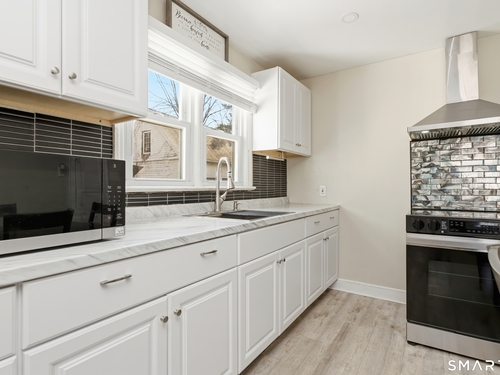 Step into this well-built classic Cape, situated on a quiet corner lot at 170 Hillside Avenue in Bridgeport. This charming home offers four bedrooms, a bright sunroom perfect for enjoying morning sunrises or evening sunsets, a level yard ideal for entertaining, hardwood floors throughout, and a large two-car garage. A welcoming front foyer with coat closet opens into a warm and inviting living room featuring a lovely fireplace. The newly renovated, spacious eat-in kitchen provides the perfect setting for gatherings and everyday living. The functional layout offers two spacious bedrooms on the main level for added convenience. Upstairs, you'll find two generously sized bedrooms with crawl space for additional storage. The finished basement adds even more living space with a second fireplace and endless possibilities, perfect for a family room, home office, gym, playroom, or guest space. Conveniently located near parks, shopping, restaurants, hospitals, and local amenities, this home is also commuter friendly. Just minutes to Fairfield, with easy access to I-95, Route 8, Route 25, and the Merritt Parkway. Approximately 60-75 minutes to New York City, making this an ideal location for commuters. This home offers the perfect blend of comfort, space, and convenience, don't miss the opportunity to make it yours.