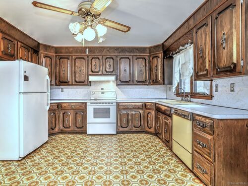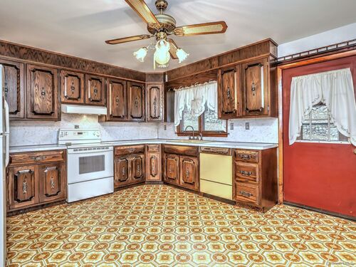 This Custom-One Owner Raised Ranch Style House is a good solid build with a nice red brick exterior. Estate Sale- NOT subject to Probate. Great Convenient Location- close to schools, restaurants, parks, commutation. House needs some updating- but has lots of possibilities and good solid bones! This House is Featuring All Large Spacious Rooms- Living Room with Fireplace and Woodburning Stove- Wall to Wall Carpeting in most rooms (no hardwood flooring) Dining Room with Slider to Enclosed Porch with Pizza Oven overlooking Tiered backyard with Brick Patio and Brick Storage Shed. Large Eat-in-Kitchen with Wood Cabinets, Electric Stove, Fridge, Dishwasher (ALL Appliances "AS IS") Large Primary Bedroom with 2 Closets and Full Bathroom with Tub/Shower, Vanity and Tile Floor. 2 additional Large Bedrooms and Hall Bathroom with Shower and Tile Floor. Finished Lower Level can be Possible In-Law Quarters, Guest Suite or Great Entertaining Area- Laundry Room - Large 2 Car Garage with portable Generator and hook-up (included in sale) Estate Sale- House is SOLD "AS IS"-