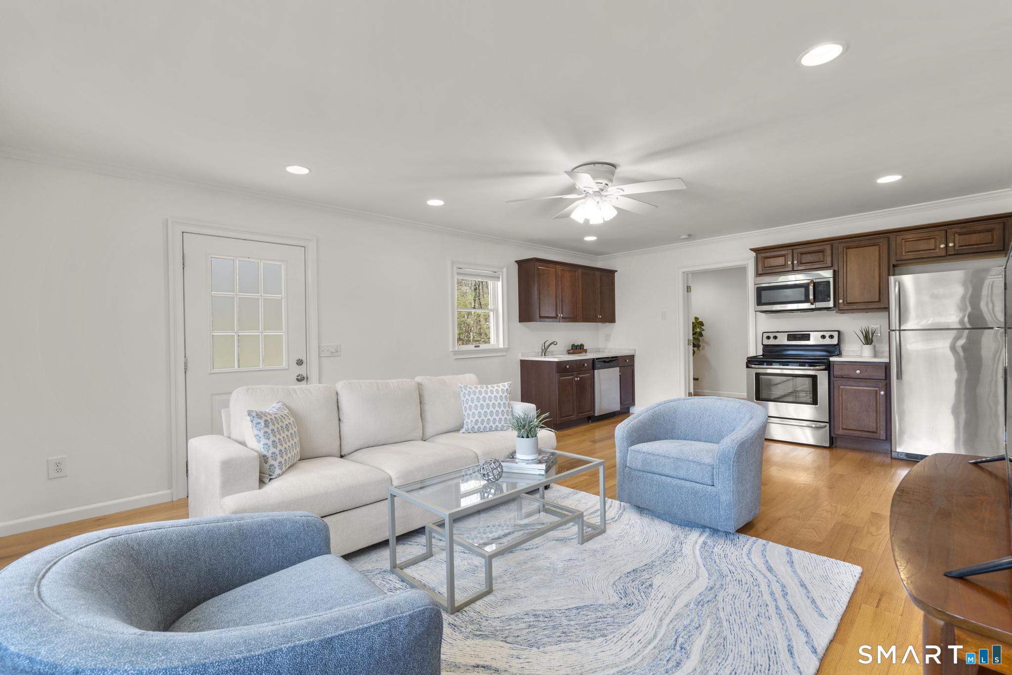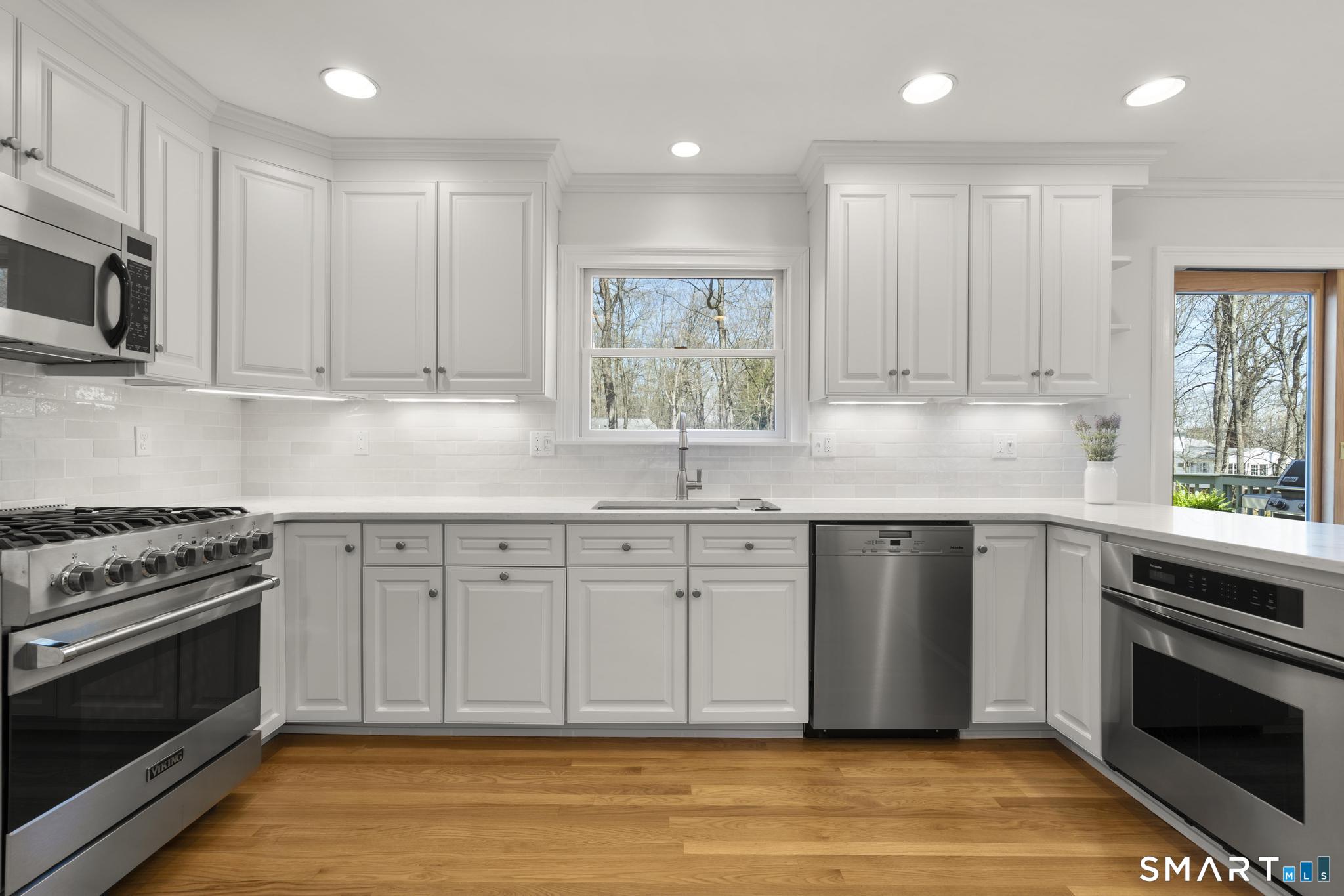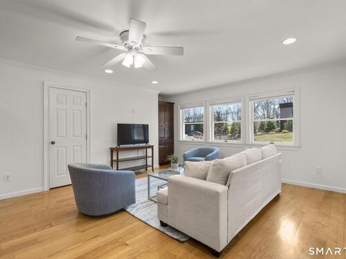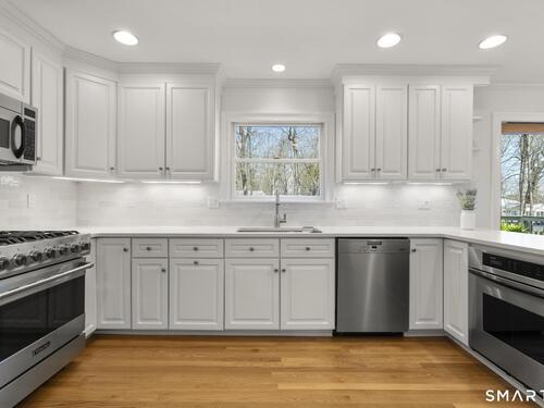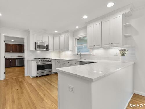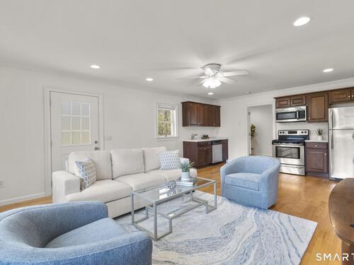 Welcome to this beautifully maintained 5-bedroom Cape Cod Colonial, perfectly situated on over an acre of flat, usable property in desirable South Wilton. This turnkey home is in mint condition and offers the ideal blend of classic charm and modern updates. Inside, you'll find gleaming hardwood floors throughout and a thoughtfully designed layout featuring three fully updated bathrooms. The spacious kitchen is a true highlight, appointed with quartz countertops, a premium Viking gas stove, wall oven, microwave, dishwasher, and refrigerator. An inviting dining area with sliders opens seamlessly to the deck, creating the perfect setting for indoor-outdoor living and entertaining.A standout feature of this home is the legal one-bedroom apartment with its own private entrance-ideal for extended family, guests, or rental income. This space can easily be incorporated back into the main home if desired, offering flexibility to suit your needs.Additional features include a lower level with a two-car tandem garage, central air conditioning, and ample storage. The expansive property provides endless possibilities for recreation, gardening, or future enhancements. Conveniently located with easy access to the train, major highways, town center, and top-rated schools, this home offers both tranquility and accessibility. A rare opportunity to own a move-in ready home in one of Wilton's most sought-after locations.