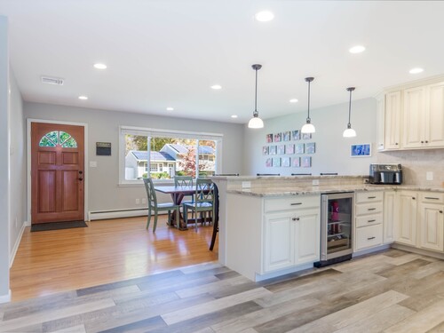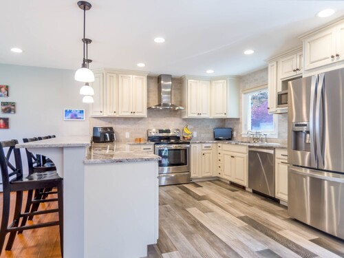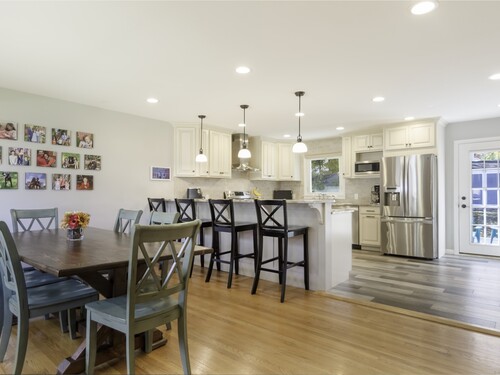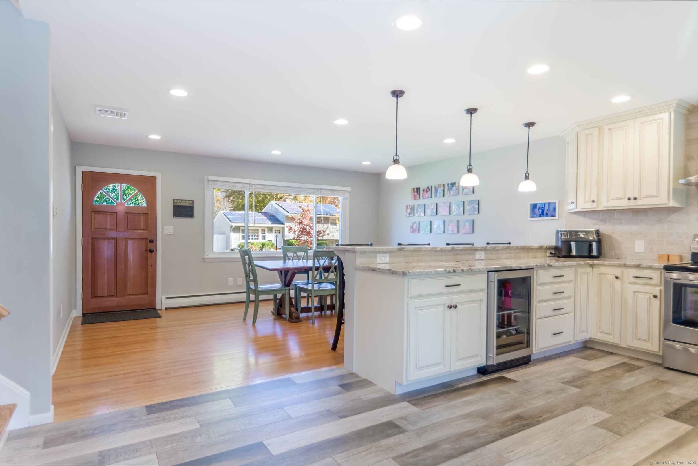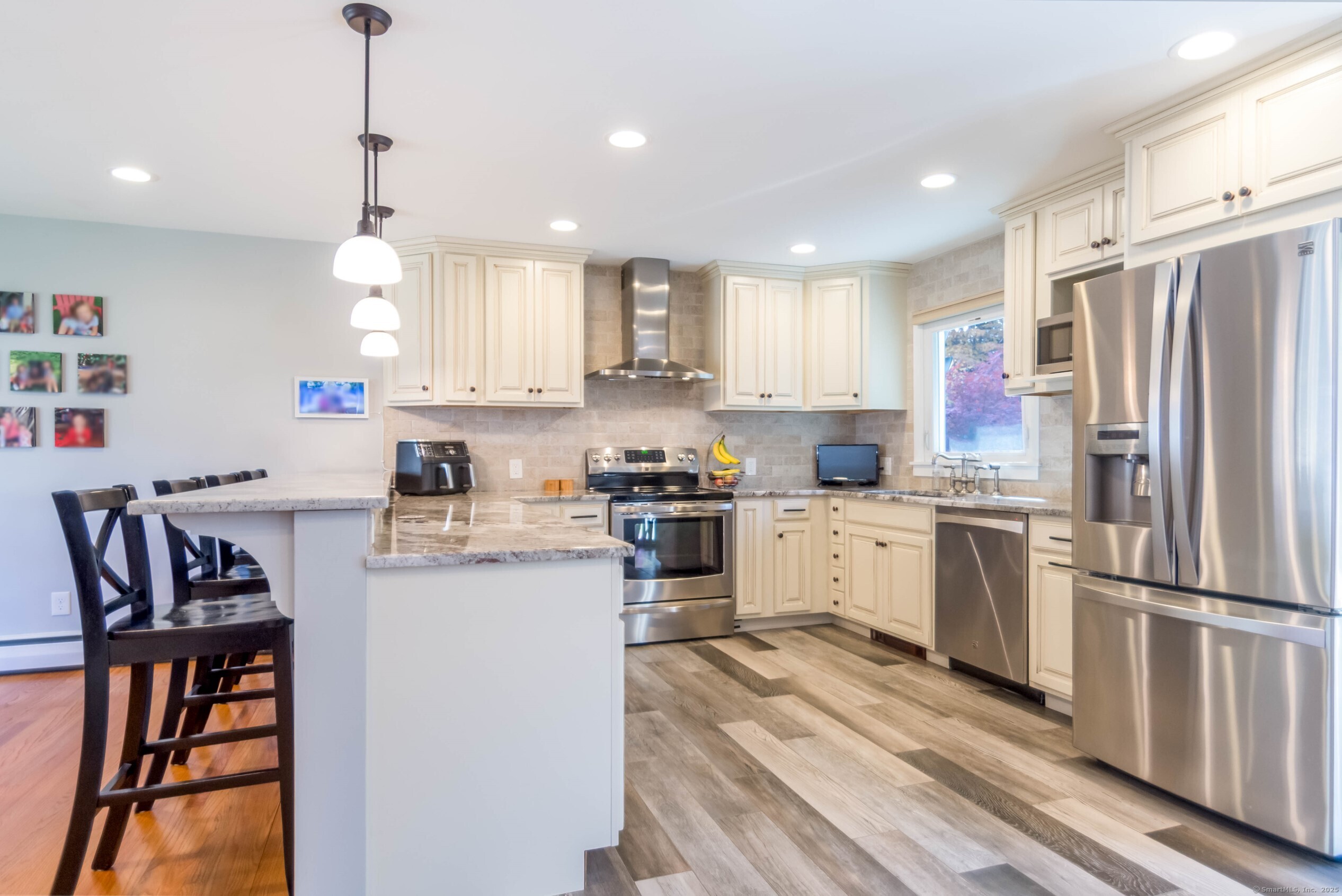 Welcome to this move-in ready split-level home nestled in Fairfield's desirable University area. Thoughtfully updated and impeccably maintained boasting modern updates. Step inside to find beautifully refinished hardwood floors flowing throughout the majority of the home. The updated eat-in kitchen is a true highlight, featuring off-white cabinetry, granite countertops, stainless steel appliances, and a large center island. The kitchen seamlessely opens up to the dining room creating a perfect space for entertaining guests and holiday dinners. Just up a few steps, you'll find a beautifully renovated full bathroom and three spacious bedrooms, each offering natural light and comfort. The finished lower level walkout provides wonderful additional living space, ideal for a family room, rec room, or home office, and includes vinyl flooring and a convenient half bath. Outside, enjoy a flat, private lot-great for outdoor activities. With its prime location close to downtown Fairfield, beaches, parks, and top-rated schools, this property truly has it all. Don't miss the opportunity to make this beautifully maintained, move-in ready home your own!