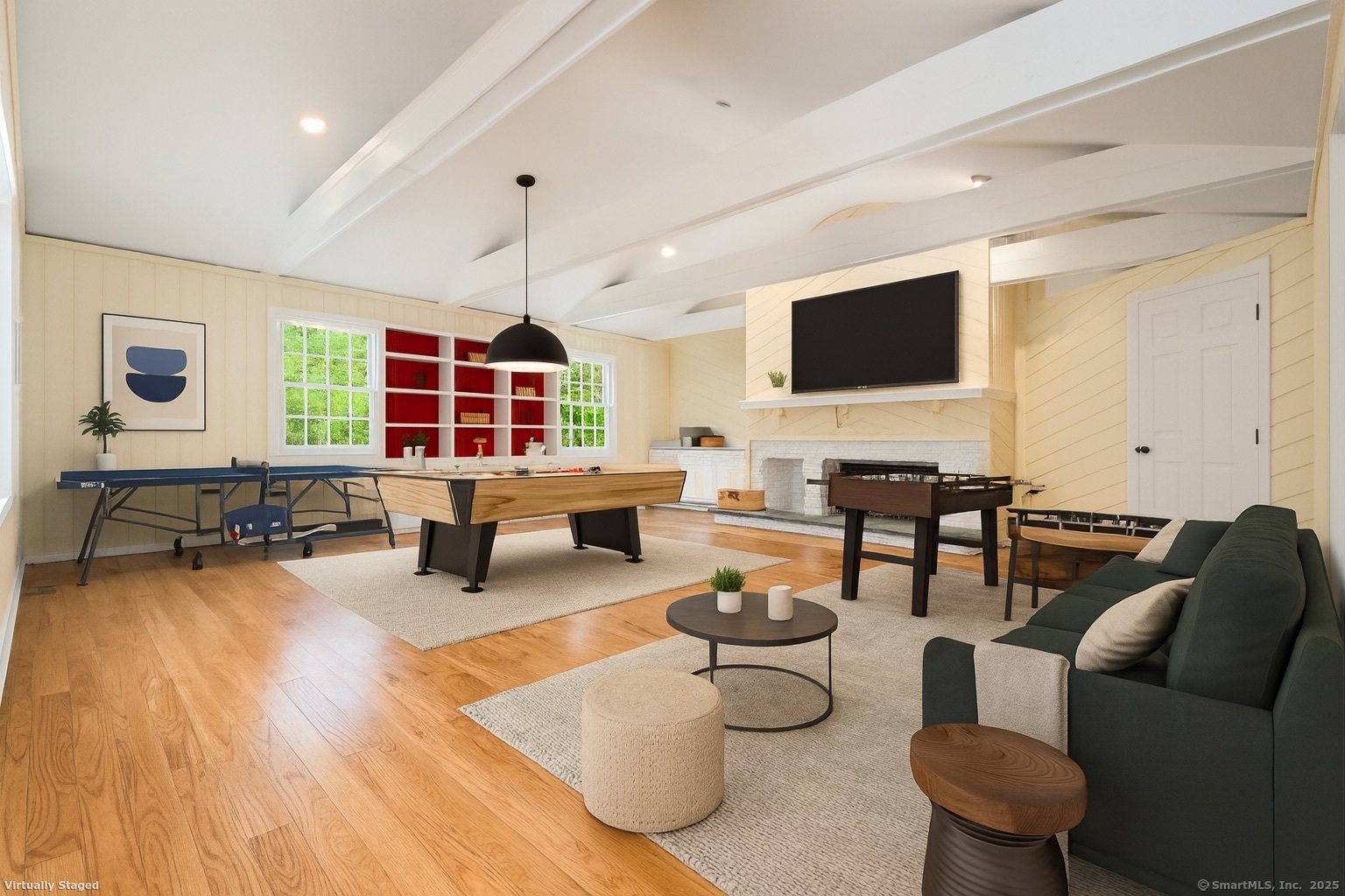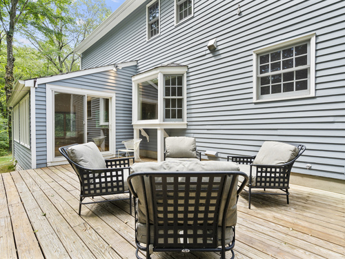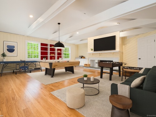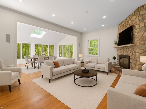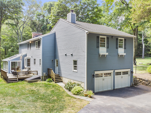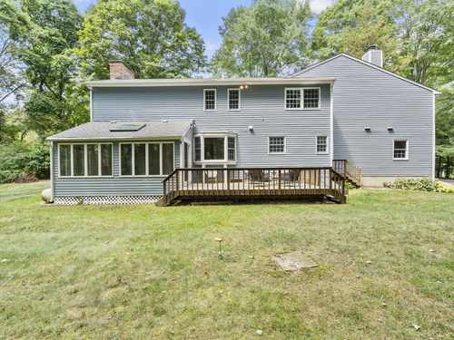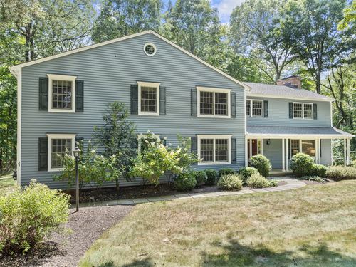 Nestled on 1.12 acres in sought-after South Wilton, this spacious Colonial offers an ideal blend of space, light, and livability. A welcoming entry opens to sun-filled living spaces accented by hardwood floors throughout. The formal dining room provides a sophisticated setting for gatherings, while the eat-in kitchen, appointed with stainless steel appliances and generous counter space, flows seamlessly into the inviting family room. Here, a wall of windows frames the landscaped grounds and a gas fireplace creates a cozy focal point for everyday living. Upstairs, the Primary Suite offers a private retreat with its own gas fireplace, full bath, and walk-in closet. Three additional bedrooms, a dedicated home office, and a spacious media/rec room with cathedral ceiling and fireplace provide exceptional versatility-perfect for entertaining. The beautifully landscaped property backs up to conservation land, ensuring privacy, scenic views, and a tranquil natural backdrop year-round. Additional amenities such as city water, a whole-house generator, and a full irrigation system enhance both comfort and convenience.
