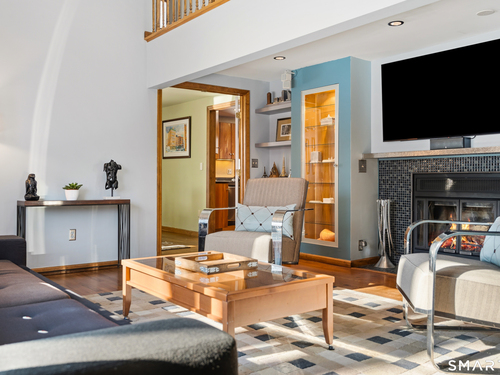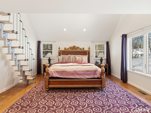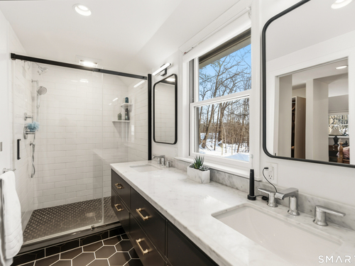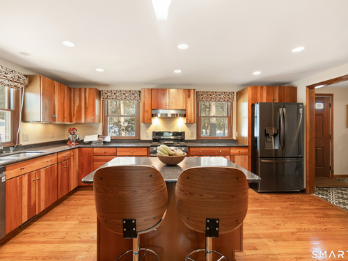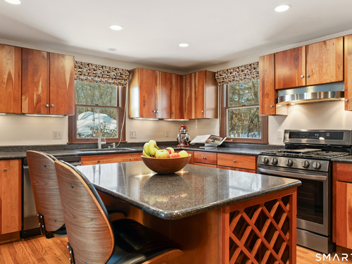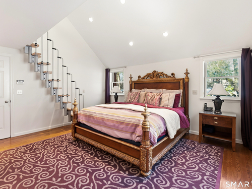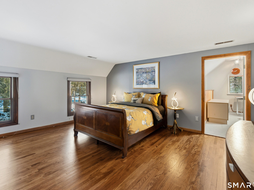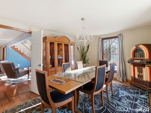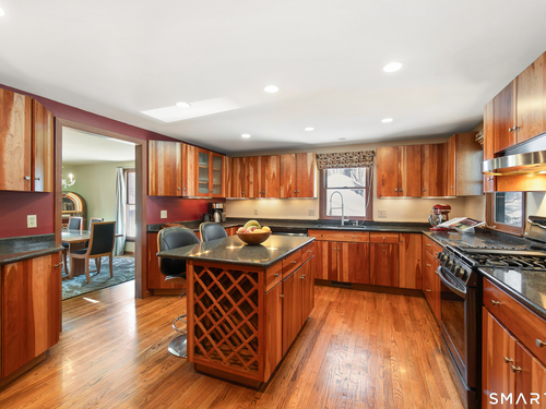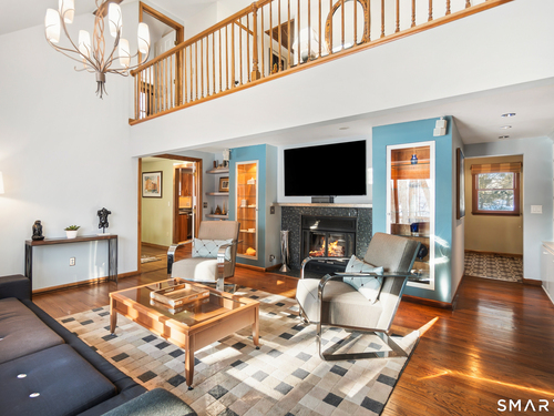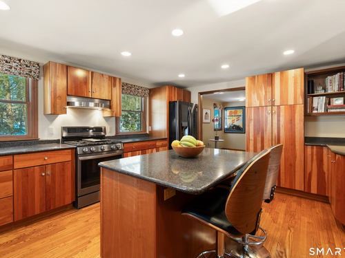 Beautifully updated Saltbox Colonial set on a full acre in North Stamford with easy access to the Merritt Parkway and public transportation. This inviting home offers 4 bedrooms, including a rare first-floor primary suite, and 3.5 updated bathrooms throughout. Sun-filled living spaces showcase a functional layout ideal for both everyday living and entertaining. The flat, lush front and side yard is enhanced by mature landscaping, while the private backyard features a stunning Ipe deck, perfect for relaxing or hosting outdoors. The finished lower level includes a dedicated home theater with surround sound and abundant storage. Additional highlights include a whole-house dehumidifier and generator, natural gas utilities, and a detached two-car garage equipped with an EV charging station. A special opportunity combining land, updates, and convenience in a desirable North Stamford setting.