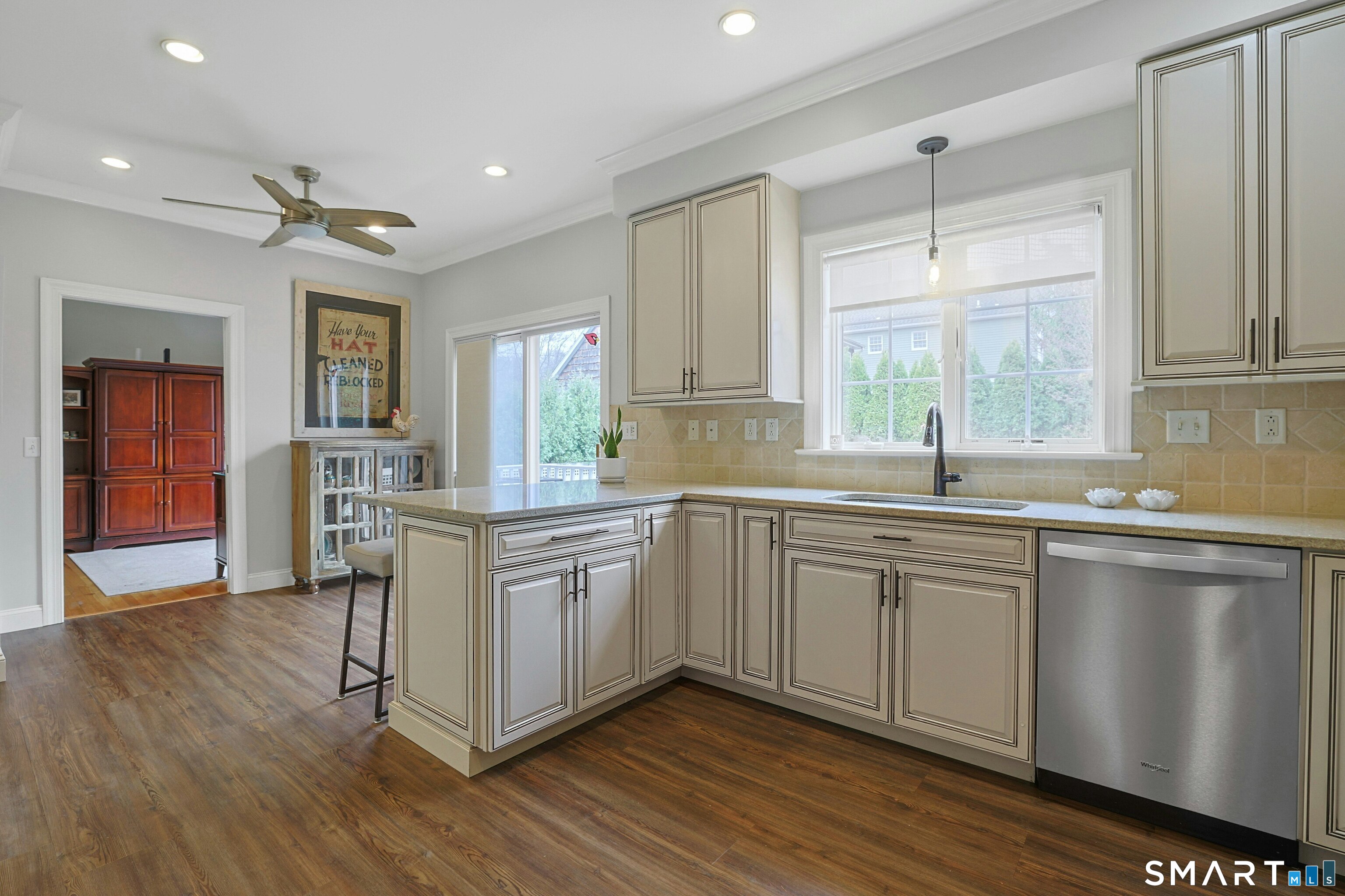Situated in the heart of Pemberwick, this beautifully maintained 3-bedroom home blends classic charm with modern updates. The sun-filled, renovated kitchen opens to a formal dining room and an inviting living room with a fireplace, plus a flexible space perfect for a home office or den. Glass sliders lead out to a fully fenced, professionally landscaped backyard-ideal for gatherings, play, or peaceful relaxation. Upstairs, the spacious primary suite offers a walk-in closet and a luxurious bath with a Jacuzzi tub. Two additional generously sized bedrooms share a full hall bathroom. Set in a welcoming, family-friendly neighborhood just steps from Pemberwick Park and moments from Byram Park's beach, pool, and marina. Enjoy easy access to both I-95 and the Merritt Parkway.