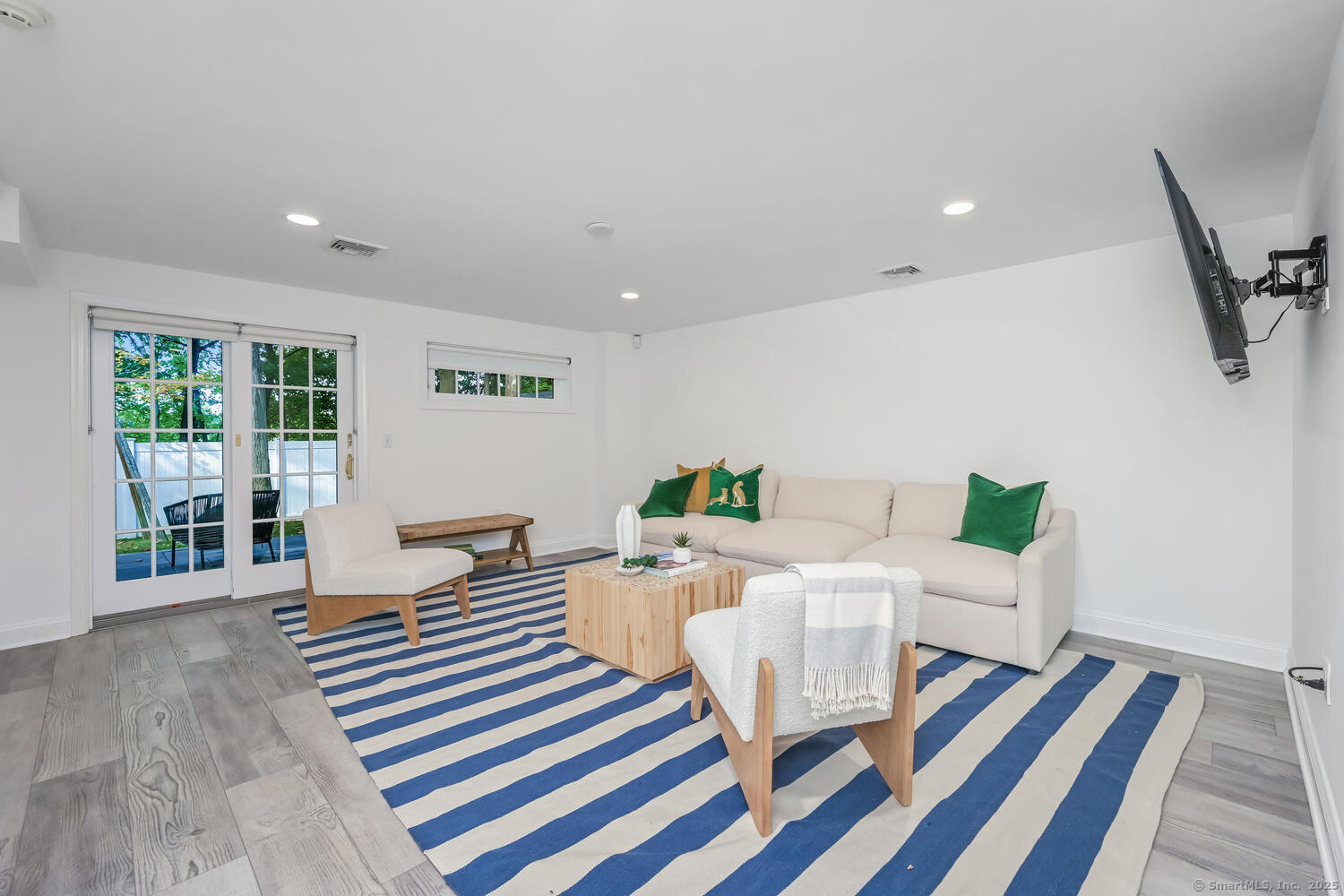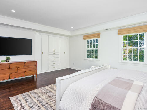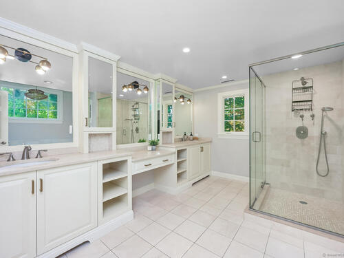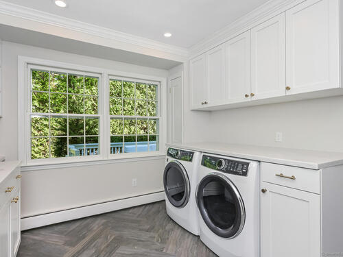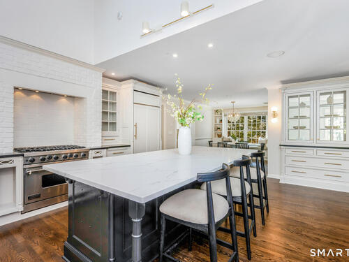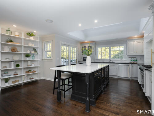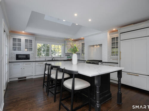 Tucked away on a private 0.58-acre lot at the end of a tranquil cul-de-sac, this exceptional Colonial blends timeless elegance with modern comfort. Offering approximately 5,473 square feet of beautifully finished living space-plus an additional 1,314 square feet in the walk-out lower level-the home features six bedrooms and five and a half baths designed for today's lifestyle. At the heart of the home, a gourmet eat-in kitchen with a large Quartz center island and premium finishes opens seamlessly to the family room with vaulted ceilings and a striking stone fireplace. French doors lead to one of three expansive terraces, creating an effortless flow for indoor-outdoor living and entertaining. Formal living and dining rooms provide elegant spaces for hosting, while the main-level lounge with a wet bar offers a refined retreat. Upstairs, the primary suite serves as a private sanctuary with a spa-inspired bath and custom walk-in closet. Five additional bedrooms surround a bright, skylit office or study nook, offering both comfort and flexibility. The walk-out lower level includes a home gym, recreation area, and private bedroom suite with its own living space. Outdoors, professionally landscaped grounds, multiple patios, and a level yard provide the perfect setting for dining, play, and relaxation in one of Darien's most coveted neighborhoods.