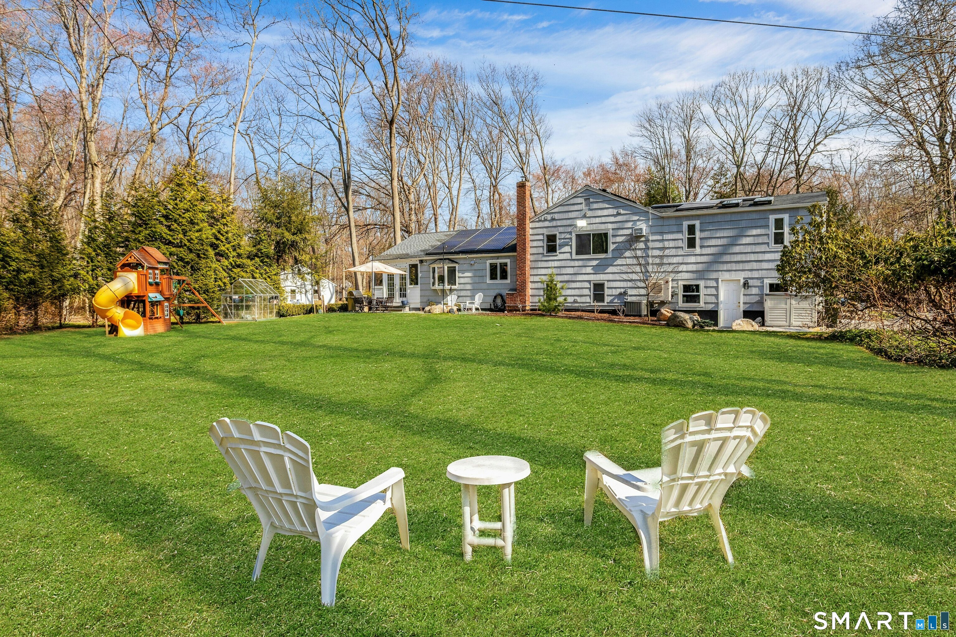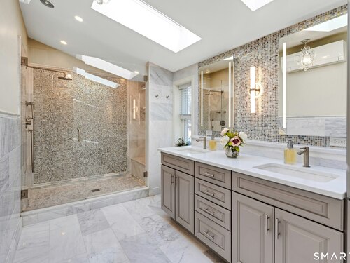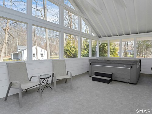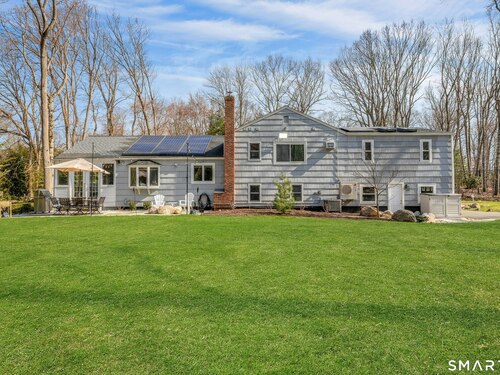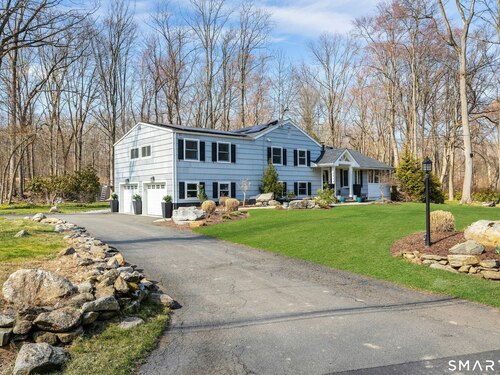 Beautifully renovated split level situated on a centrally located cul-de-sac. This sun-filled residence offers an open floor plan with a bright living room featuring a cozy fireplace, an updated kitchen, and an adjoining dining area. The property includes 4 bedrooms and 3 1/2 renovated baths, highlighted by an oversized primary suite with a spa-like bathroom. The finished lower level provides flexible space for a family room or home office. A spacious sunroom with a large hot tub offers year round enjoyment. The flat one acre lot features a patio, greenhouse, and fire pit. Improvements include: extensive landscaping, new stone walkway, newer roof, solar panels, newer skylights, garage doors, moldings & more. Move-in ready with modern updates throughout. More photos to come.