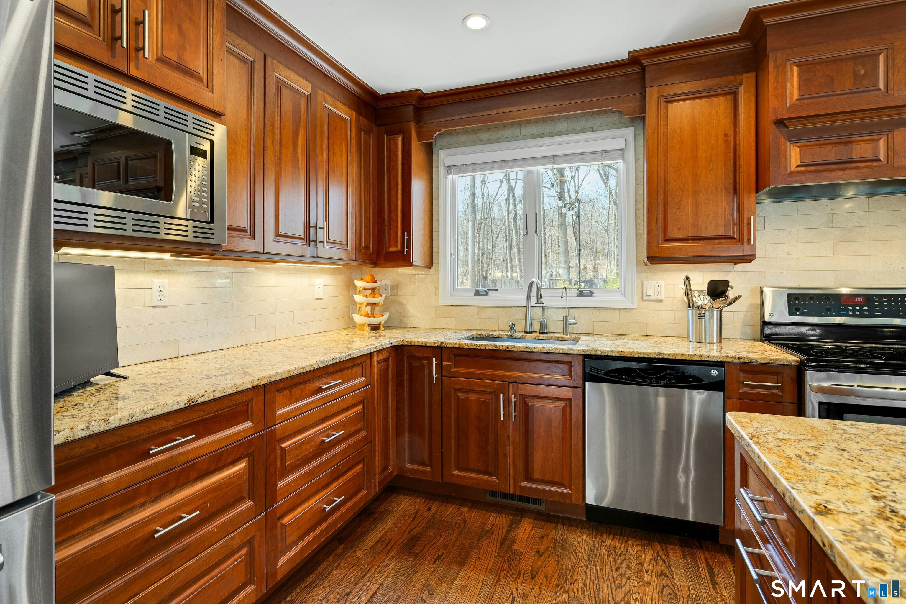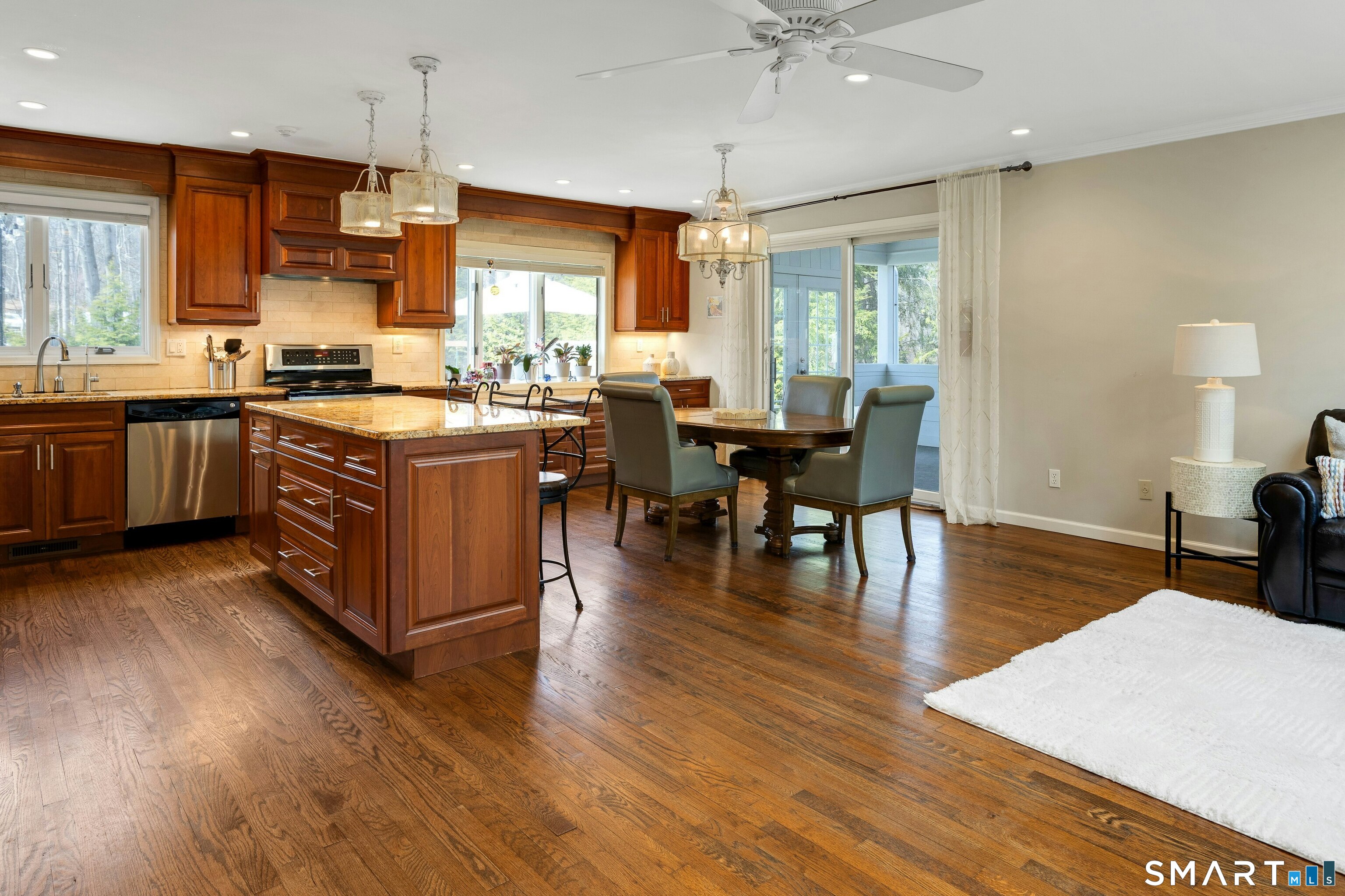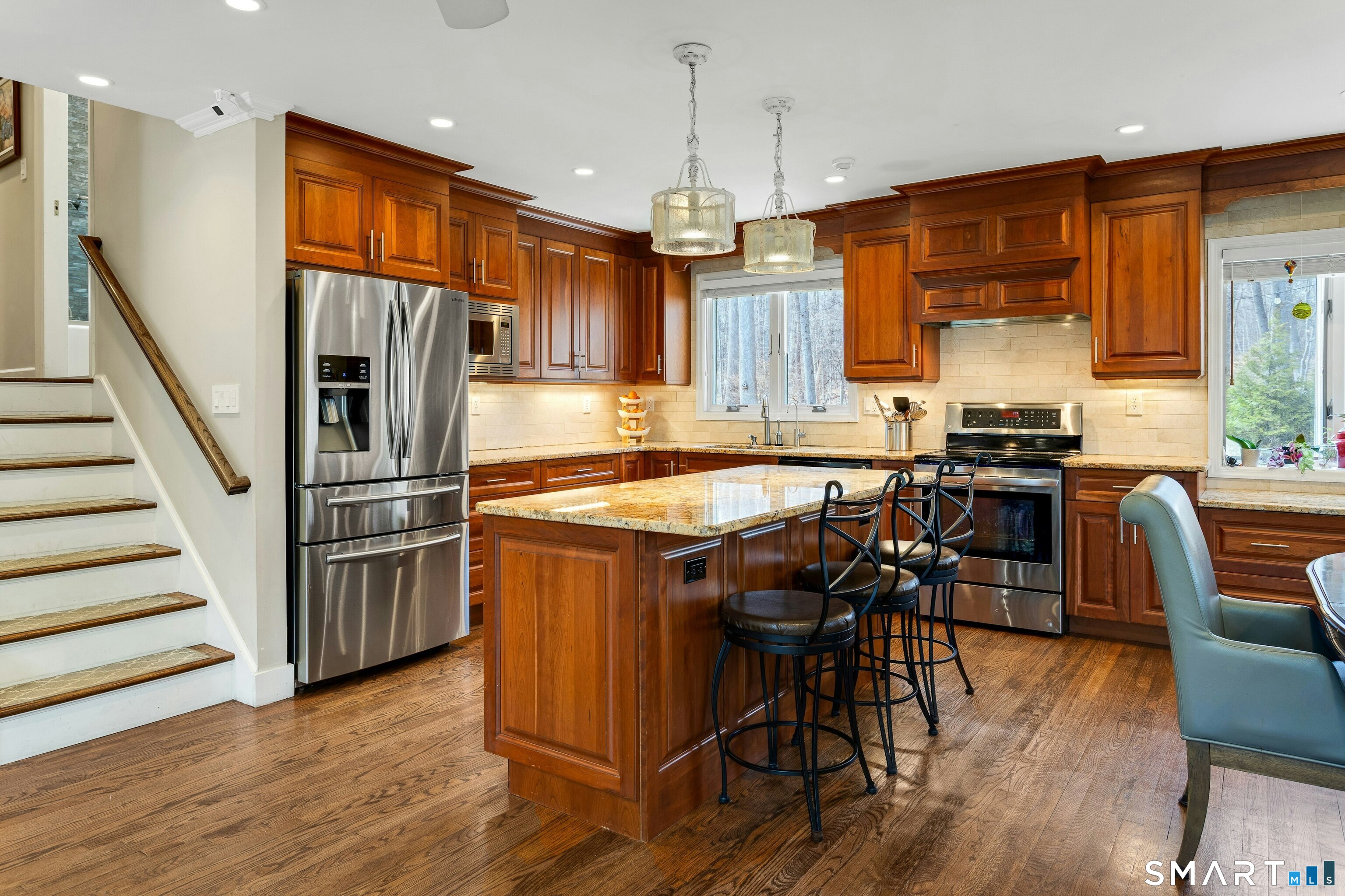 Granite Counters, Island, Hardwood Floor