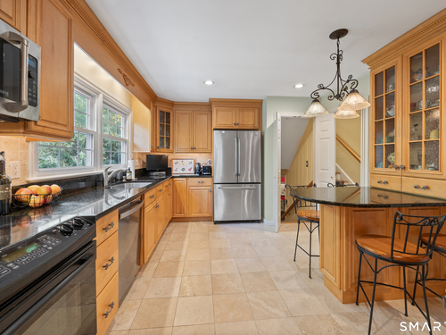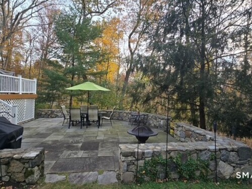Beautifully maintained three-bedroom split-level home offering refined yet comfortable living. Highlights include an elegant living room with fireplace, a spectacular sunroom wrapped in three walls of windows, a private den, and a fully finished lower level. Exceptional flexibility for both everyday living and entertaining, enhanced by a stunning custom-built terrace overlooking a serene, tree-lined property. Ideally situated near New Canaan and Wilton, just minutes to top schools, shopping, dining, the New Canaan train station, and The Lake Club.