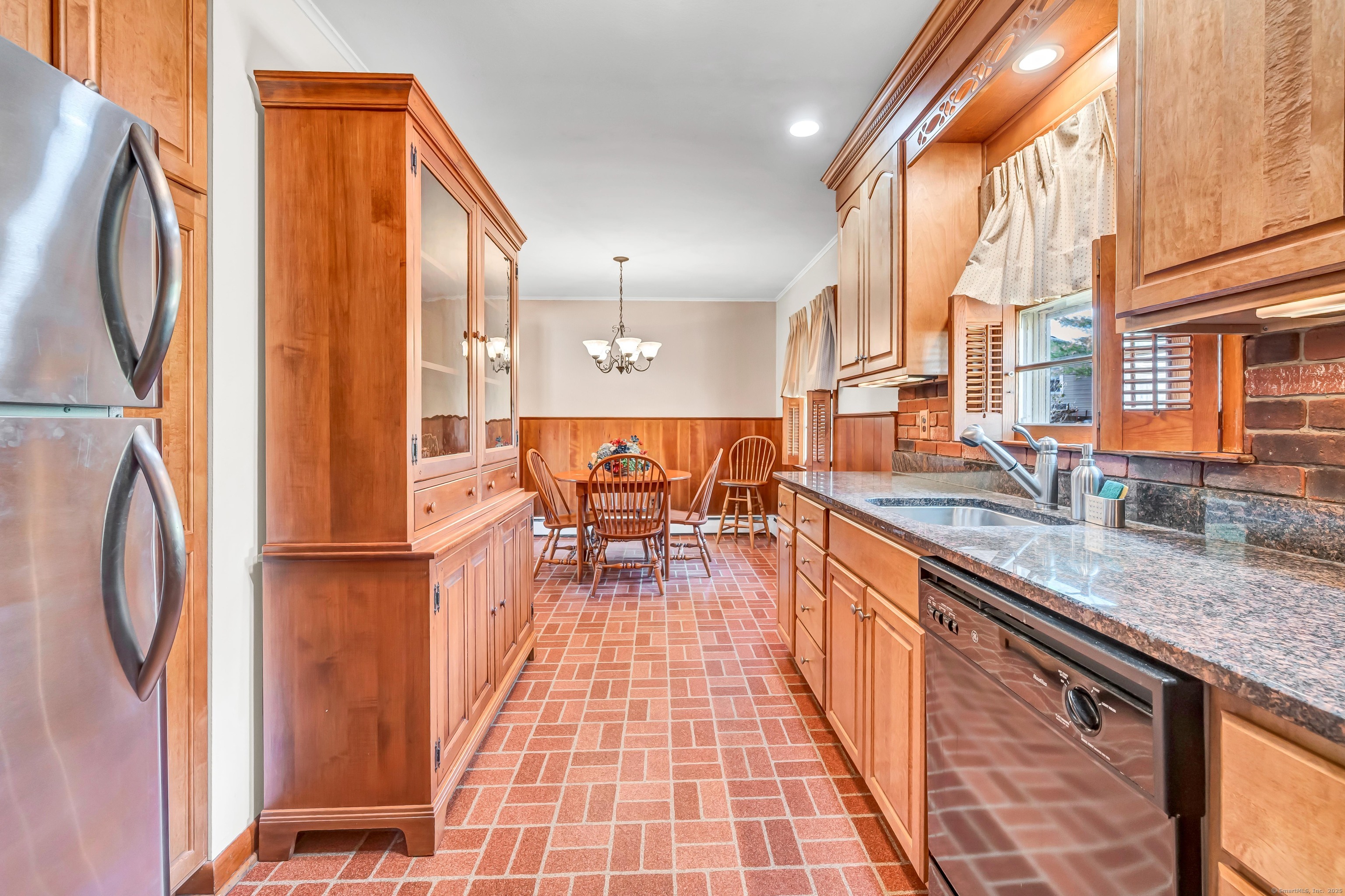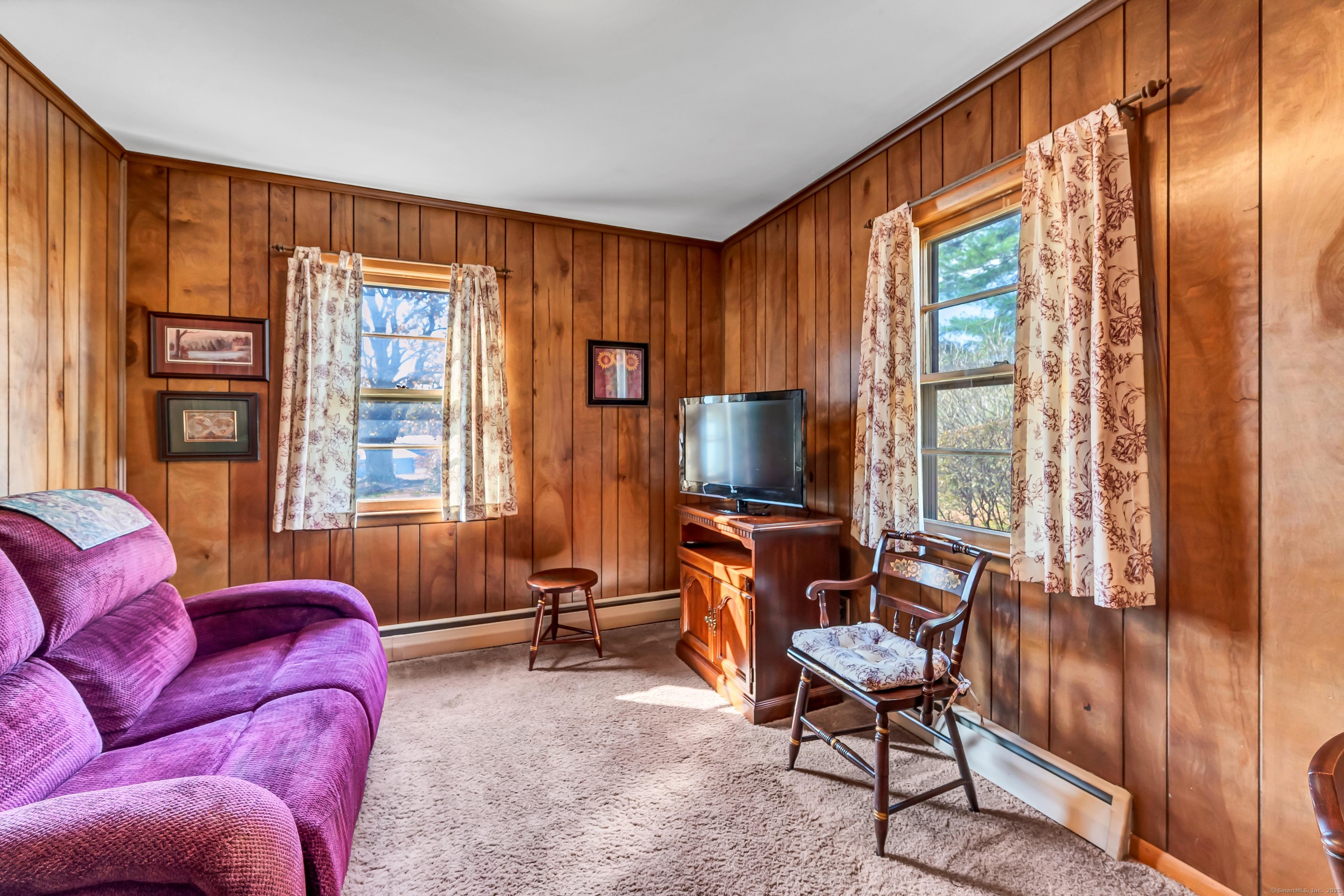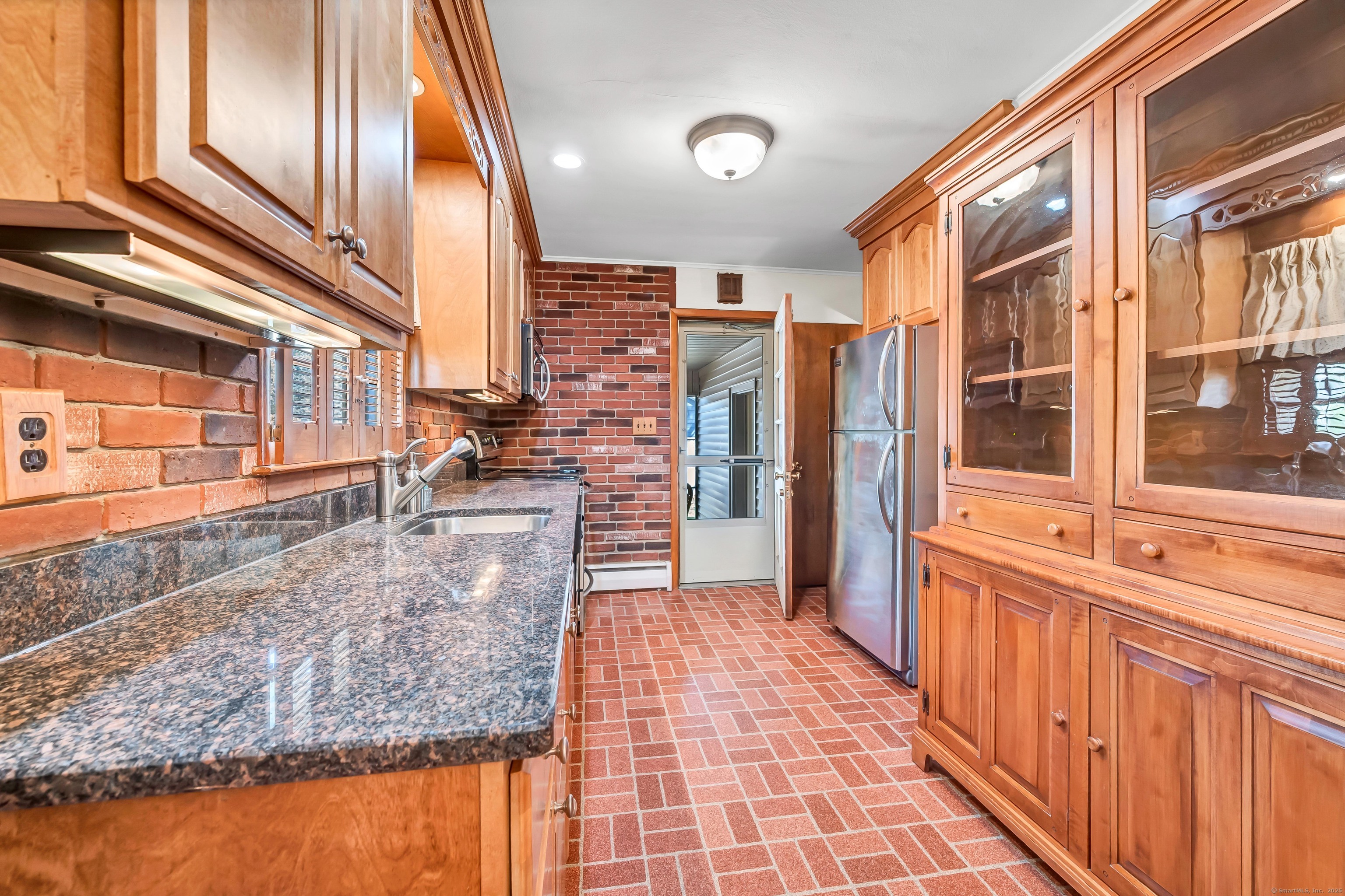 Picture Perfect Ranch-Ideally set on a corner lot just one minute to Federal Rd's shopping and restaurants! This 2-3 bedroom home offers convenient one-level living with a spacious living room with wood-burning fireplace, cozy updated kitchen with granite countertops, upgraded cabinetry and stainless steel appliances, plus an adjoining dining room and a lovely three-season screen porch overlooking the level back yard. The main floor also includes two good-sized bedrooms (a wall was removed to expand one bedroom, could be changed back to a three bedroom setup in the future) and a full bathroom. There is also hardwood flooring underneath the carpeting on the main floor. Downstairs has a large finished bonus room, plus two storage/utility rooms with laundry, which could be finished to add more living space. There is a one car garage on the main level (no steps entry) and a great yard with mature trees for natural privacy, perfect for gardening or outdoor activities. Unbelievable commute location, under two minutes to the highway and shopping and five minutes to Candlewood Lake. Loving cared for and ready for its new chapter! Estate sale, subject to probate approval.
