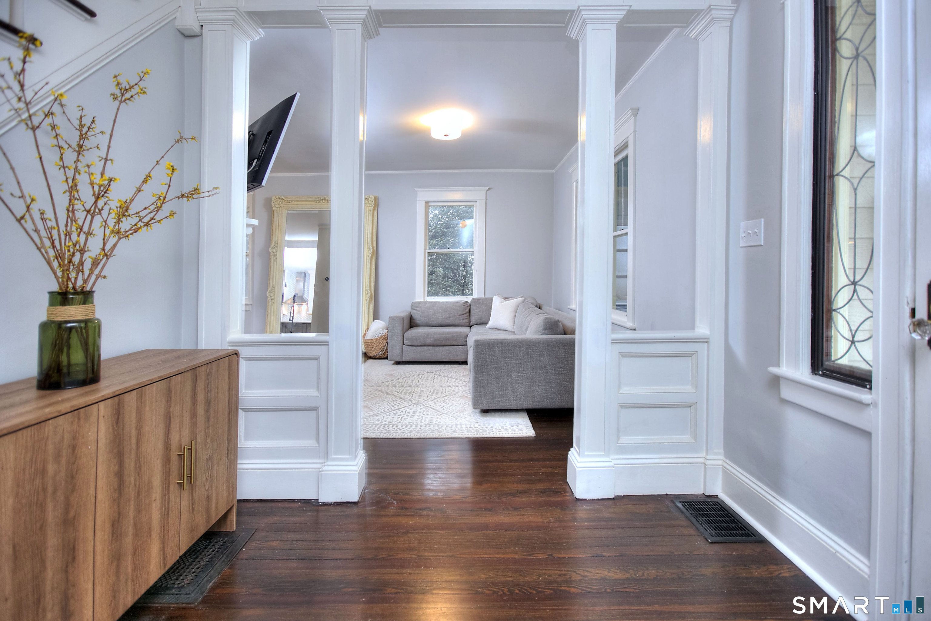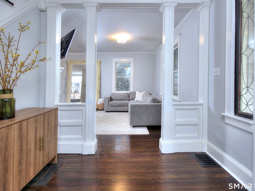 Step into timeless charm with this beautifully restored 1915 Farmhouse located on desirable East Norwalk Street. This home blends historic character with modern updates, featuring stunning original woodwork, stained glass windows, and classic built-ins that showcase the craftsmanship of the era. The first floor offers a bright, open layout with a updated kitchen that flows seamlessly into the living room and dining area. Perfect for everyday living. The second floor features four bedrooms and updated full bath. Outside, enjoy the manicured flat backyard that is fully fenced and perfect area to relax or entertain. Conveniently located 5 minutes from the train station and just minutes from the beach, local shopping. This home offers the perfect combination of charm, comfort, and location.