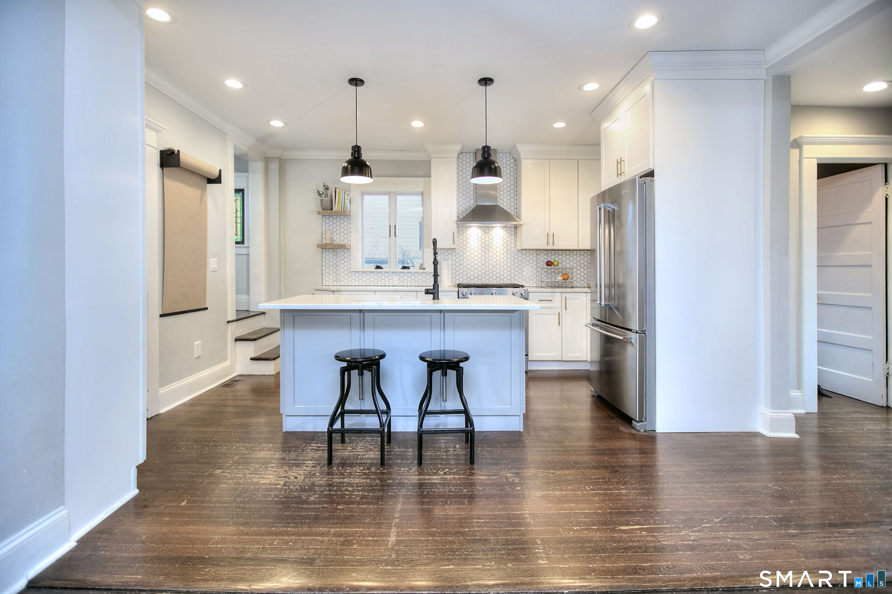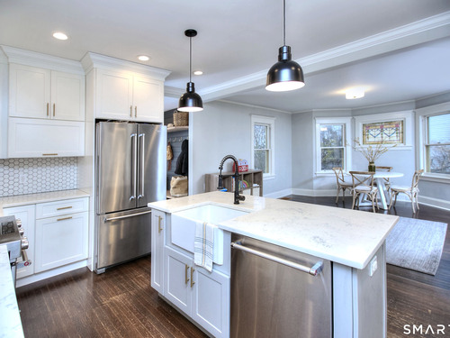 Kitchen (Main Level)Quartz Counters, Island, Hardwood Floor
