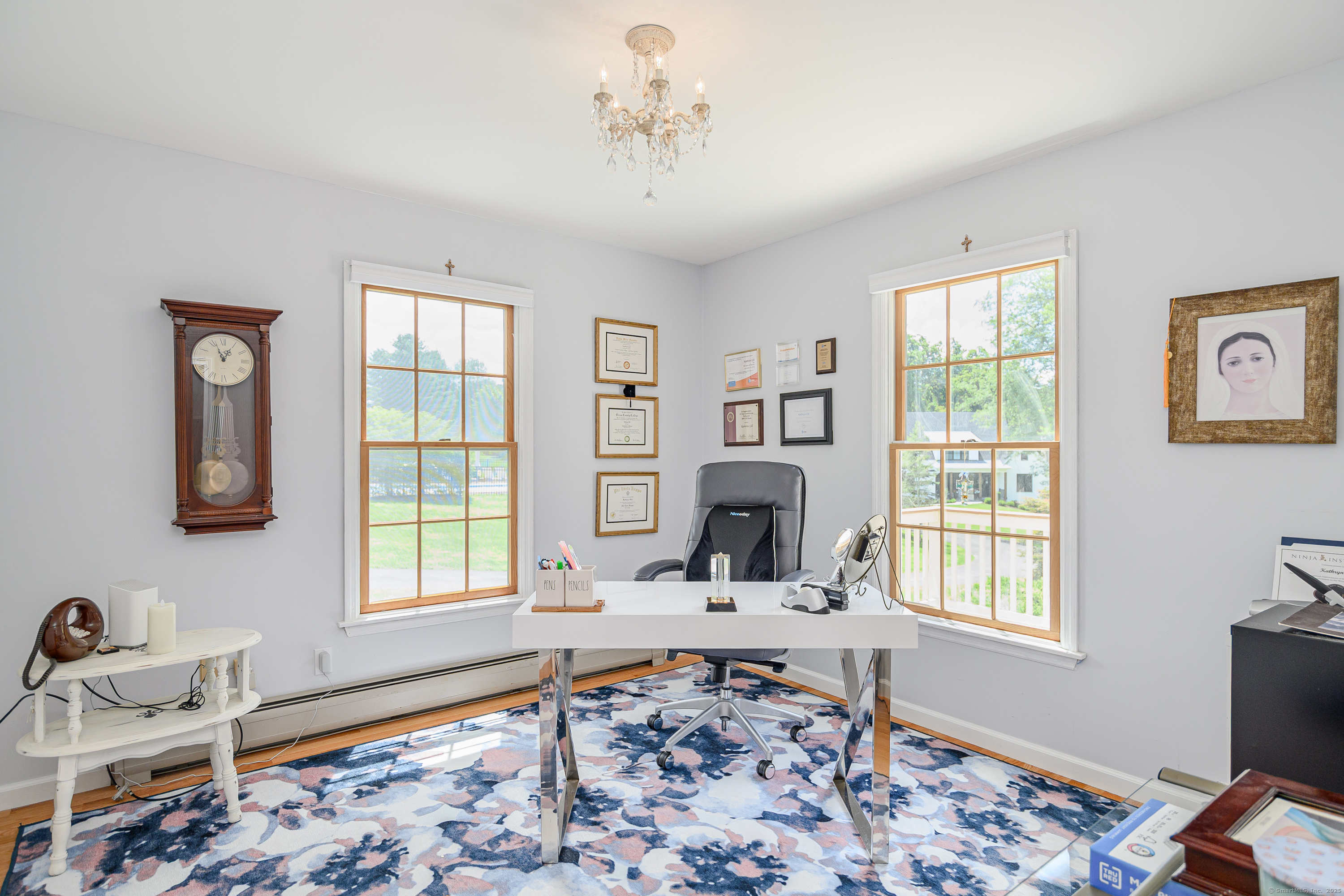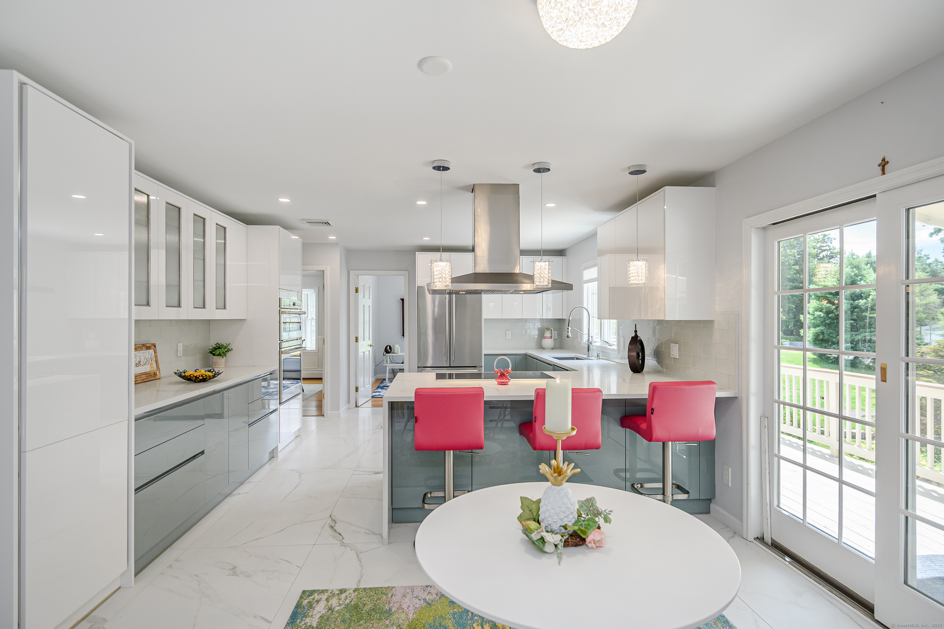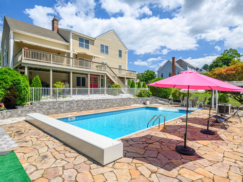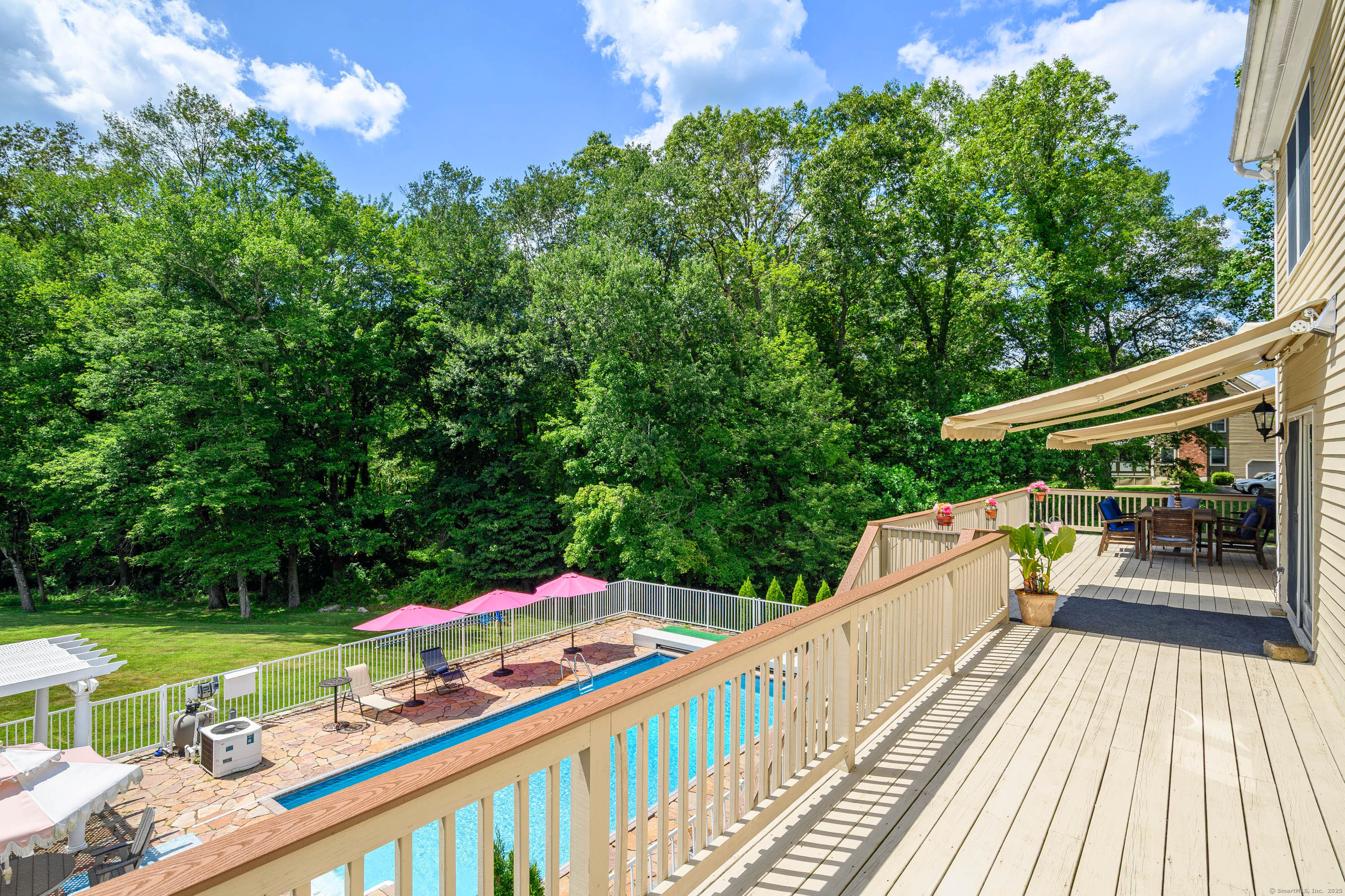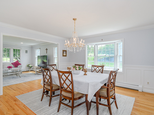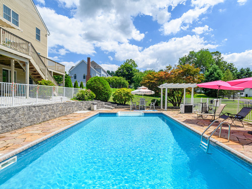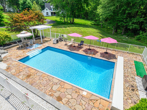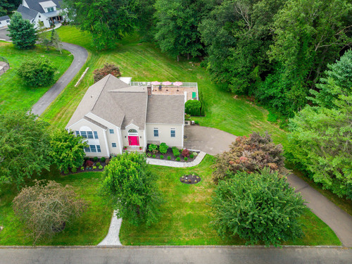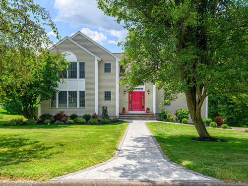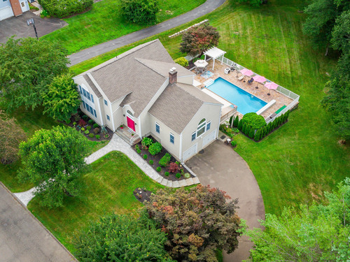 Discover refined living in this beautifully renovated four-bedroom, two full and three half-bath Colonial, perfectly positioned on a quiet cul-de-sac of similar fine homes. This exceptional home seamlessly blends classic charm with contemporary luxury, featuring extensive updates throughout including brand new roof. The main level welcomes you with new porcelain tile flooring in the entry, leading to an upgraded kitchen showcasing high-end appliances. A newly appointed half bath features premium Kohler fixtures, Milano vanity, and electric mirror. The living and dining rooms are enhanced with fresh crown molding, while a stunning new chandelier graces the foyer. Recessed lighting illuminates the family and living areas, and hardwood floors flow throughout all bedrooms. The walk-out finished basement offers additional living space with fresh paint and quality laminate flooring. Outside, the oversized saltwater pool becomes the centerpiece of outdoor entertaining, complete with automatic cover and elegant new stone wall surround. A welcoming stone walkway leads from the street, complementing the home's curb appeal. Additional amenities include a spacious attic and two-car garage, making this home as practical as it is beautiful. New Roof June 2025. Wired for Interlock Generator. Convenient to shopping, restaurants and I-84. Owner/Agent.