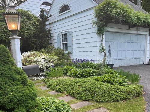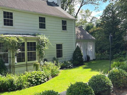 PROFESSIONAL PHOTOS APRIL 8! This enchanting, European-inspired home exudes charm from the moment you step onto the property. Wisteria, boxwood, climbing hydrangea...the beautifully curated landscaping will draw you in and invite you to explore. Once inside, the rooms are elegant yet comfortable, with charmingly unique details throughout - the striking fireplace mantel acquired from a Park Slope brownstone, intricate hand-carved wall paneling brought over from Paris, and the exquisite detail on the family room ceiling. The chef's kitchen with Subzero and Wolf appliances features a separate Breakfast Room, along w/ access to the back patio for morning coffee. The adjacent light-filled Family Room could be a formal Dining Room if desired. The Library is the ideal office or potential 1st fl. bedroom with connected Full Bath. A spacious Living Room currently doubles as a Dining Room and lovely entertaining space. Up the curved staircase to the 2nd floor the luxurious Primary BR with walk-in closet and marble ensuite is a restful retreat. 2-3 Additional Bedrooms and a Full Bath, plus a bonus playroom/workspace offers flexibility. Finished Den in the Lower Level. The covered veranda, set in a secret garden, is perfect for morning yoga or relaxed evenings among the flowers. Dine al fresco on the elevated stone terrace, or wander up the stone steps to a level grassy area, perfect for a swingset or game of badminton. Walk to Lincoln Park/Playground. Don't miss this magical home