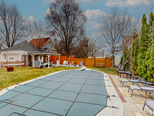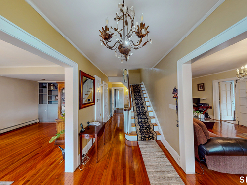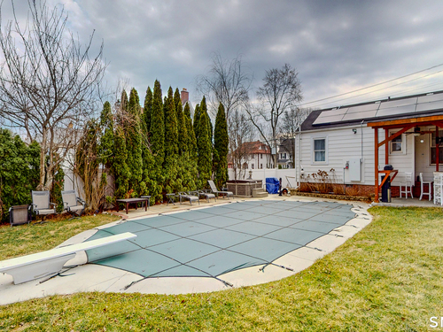 Spacious 3,369 sq ft home with Central Air, a heated in-ground pool, and Half Moon Driveway and an in-law suite with its own separate entrance. 3D Tour available to give you a clear, immersive view of the home. The main house offers 3 bedrooms, 2 full baths, and 1 half. Classic center hall Colonial layout with high ceilings - Front-to-back living room with a fireplace - A bright and spacious formal dining room, built-ins, and a grand staircase with original railings that add timeless character. The kitchen is designed for everyday cooking. The in-law suite has 2 bedroom, 1 full bath, a living room, and an additional room that can be used as an office or sitting area. A great option for extended family, guests, or anyone needing their own private living space. The home also offers extra usable space in the attic, providing flexibility for a variety of needs. The lower level includes a partially-fully finished basement with a bar, half bath and a laundry room. Step outside and enjoy the heated in-ground pool, a great place to relax or entertain during the warmer months. WELCOME HOME!