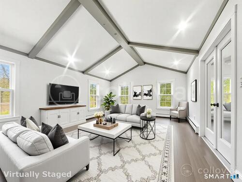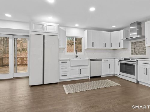 Welcome to this totally remodeled Dutch Colonial in the heart of Fairfield County. House offers hardwood flooring with an outstanding open floor plan. Main level has a huge family room with a white brick woodburning fireplace off the family room we have a french door leading to a light and bright sunroom. Kitchen with white shaker soft close cabinets farmhouse sink with quartz countertop and white glass appliances. There is a breakfast area off the kitchen has a new Anderson french door leading to a huge deck for entertaining. Off the kitchen there is a formal dining room with beautiful views form the newly installed panoramic windows in both living and dining room. Double size living room for those family gatherings. House has recessed lighting through all three floors. Laundry room and half a bath complete main level. Upper level has four bedrooms two fully remodeled bathrooms. Master bedroom has a walk-in closet and a full bathroom with a double white vanity and farmhouse sink. House has plenty of closet space. Lower level has a fully finished heated basement for extra living space. Two car garage with new garage doors and keyless openers. House has a new heating system, newer replacement windows, roof, driveway, masonry walkway. Freshly painted exterior and interior new exterior lights. House is move in ready. Conveniently located near RT25, I84 and Merrit Parkway. Close to walking and biking trails. Enjoy all the beautiful parks and lakes that Monroe has to offer.