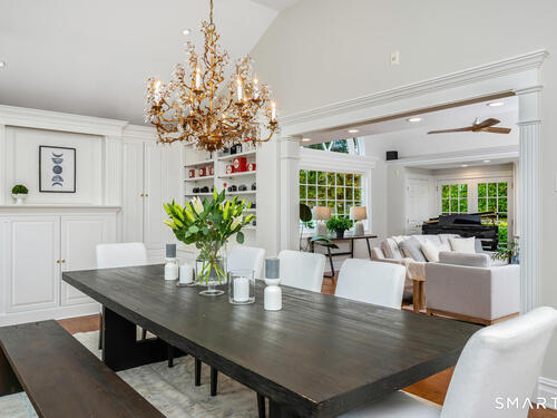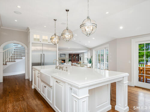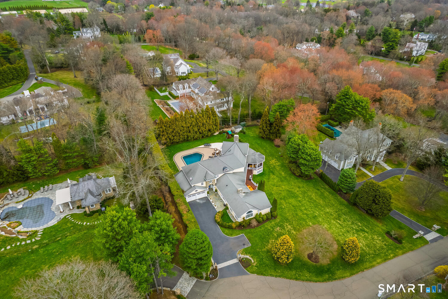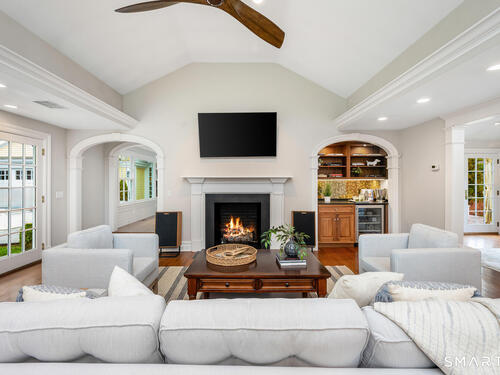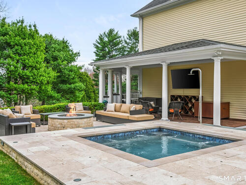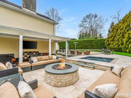 Set at the end of a coveted Fox Hill cul de sac on a private 1 acre lot, this spectacular 5 bedroom, 6 bath home offers an exceptional lifestyle defined by luxury, comfort, and effortless entertaining. Completely redesigned, the home is surrounded by open, beautifully manicured grounds with a premium lawn and expansive feel, combining privacy and serenity with a setting that feels both special and inviting. Designed for modern living, the home features four fireplaces, a stunning chef's kitchen with soaring ceilings, a statement center island, and high end appliances, as well as a private home office, theater room, gym with sauna, and a first floor in law suite with full bath. Outside, the resort style backyard is the ultimate private retreat, complete with a pool, hot tub, outdoor fire pit, and expansive mahogany deck for seamless indoor outdoor living. Warm, inviting, and beautifully designed, this is a rare opportunity to own a private oasis in one of Darien's most sought after locations.