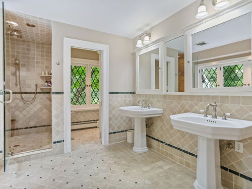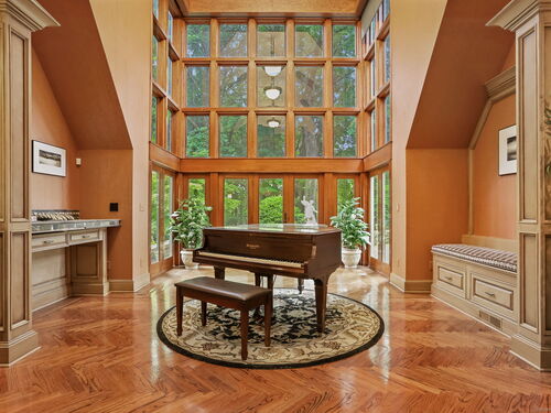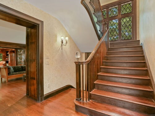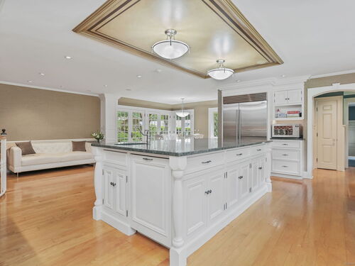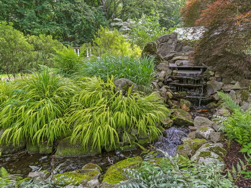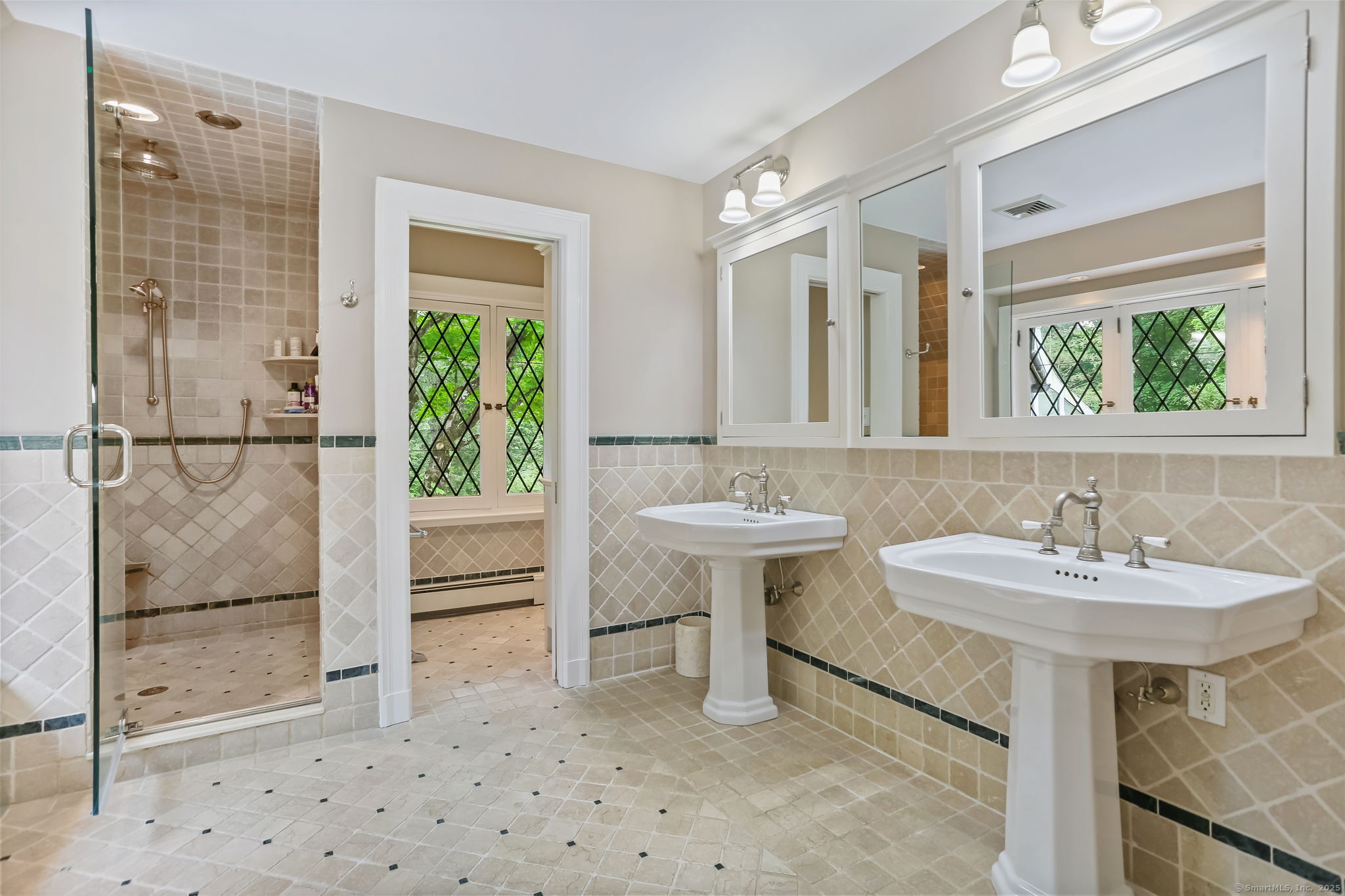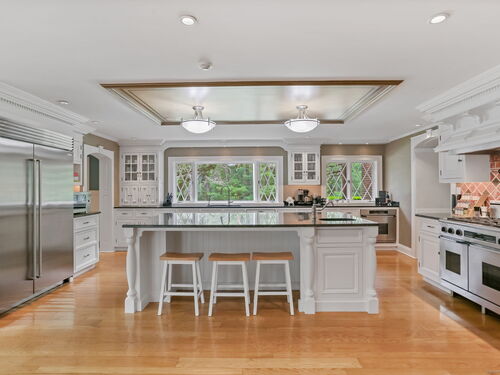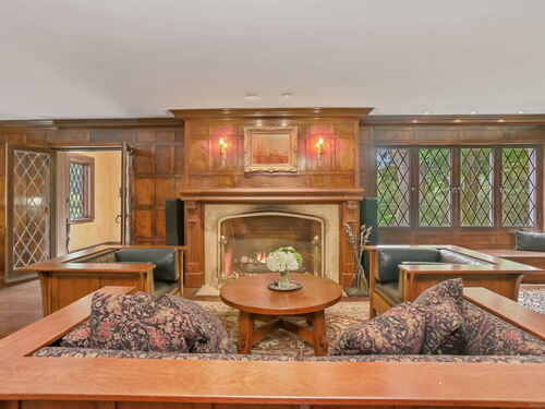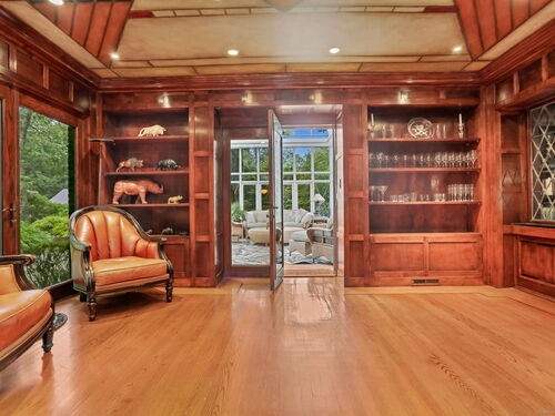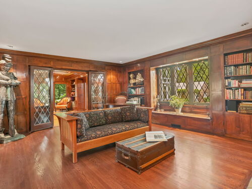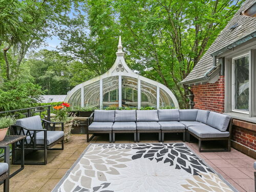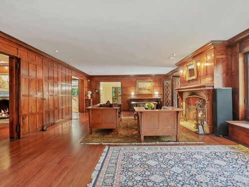 Historic charm meets modern luxury on 5 private acres in lower Weston. Set at the end of a long, tree-lined drive, this distinctive country estate offers rare privacy, character, and fully updated amenities. Once the personal retreat of Godspell creator John-Michael Tebelak, the property features a beautifully reimagined Tudor Revival residence expanded and renovated by noted architect Jack Franzen. The main home blends classic craftsmanship with contemporary comfort, offering 7 bedrooms, 8 full and 2 half baths, and a series of refined living spaces. Highlights include a dramatic two-story media and family wing with an 8x10' retractable theater screen, an elegant library, home office, and vibrant billiard room. The luxurious primary suite features a private balcony and spa-like bath, with additional ensuite bedrooms providing excellent flexibility. A sun-filled conservatory opens to stone terraces, koi pond, and sculpted gardens-ideal for quiet mornings or entertaining. A separate carriage house includes a fully private 1-bedroom guest cottage, and an additional 1,500 sq ft guest house offers upgraded kitchen, bedroom, and full bath-perfect for extended stays, multigenerational living, or work-from-home needs. Significant improvements throughout ensure turnkey, elevated country living close to Weston's top-rated schools, town center, and Westport amenities.