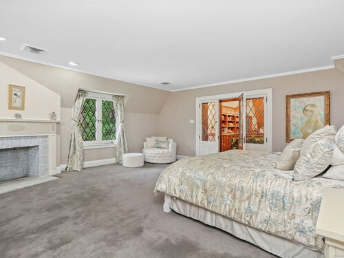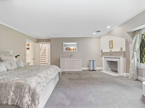 Primary Bedroom (Upper Level)Bedroom Suite, Built-Ins, Dressing Room, Gas Log Fireplace, Full Bath, Stall Shower