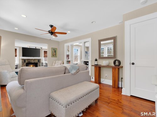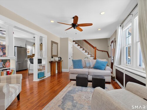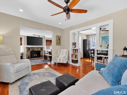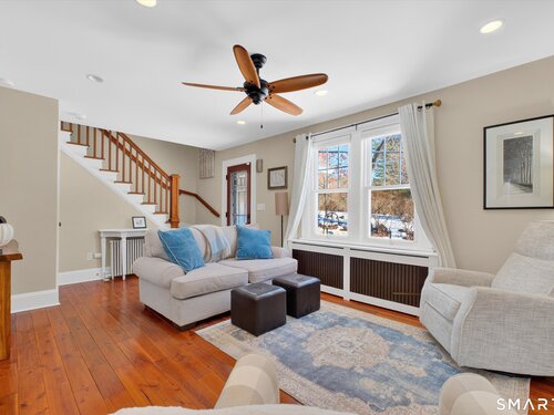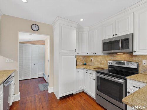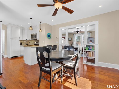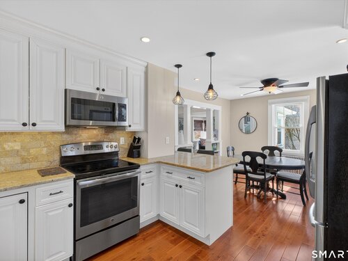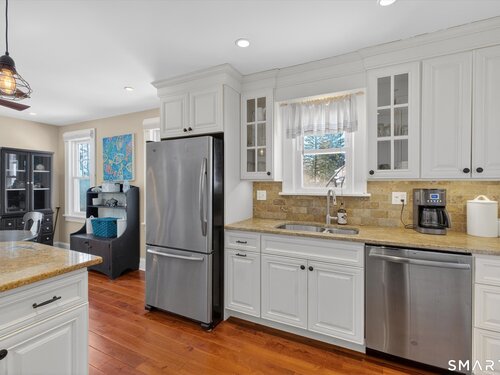 Charming and thoughtfully updated, this 2-bedroom, 2-bath Cape Cod at 22 Driftway Rd offers warmth, character, and everyday convenience in a commuter-friendly Danbury location. Hardwood floors run throughout the entire home - both on the main level and in the upstairs bedrooms - creating a seamless and inviting feel. The updated kitchen features beautiful cabinetry, stainless steel appliances, and granite countertops, with a sunny window above the sink that overlooks the large, flat, grassy backyard - the perfect spot to admire your outdoor space while preparing meals to enjoy on the patio. The eat-in kitchen flows effortlessly into the living room, making entertaining easy and natural. Original woodwork and charming built-ins highlight the home's character, while the lovely stone wood-burning fireplace anchors the living room and adds warmth and charm. Natural light pours in throughout the day, enhancing every room. Upstairs, the primary bedroom includes its own full bath, providing comfort and privacy. An attached one-car garage and convenient laundry room just off the kitchen add to the home's functionality. The unfinished basement offers excellent storage space. Ideally located just minutes from shopping, restaurants, and major commuting routes, this home combines classic Cape charm with modern updates and an unbeatable location. It's worth the look and could be your new home!