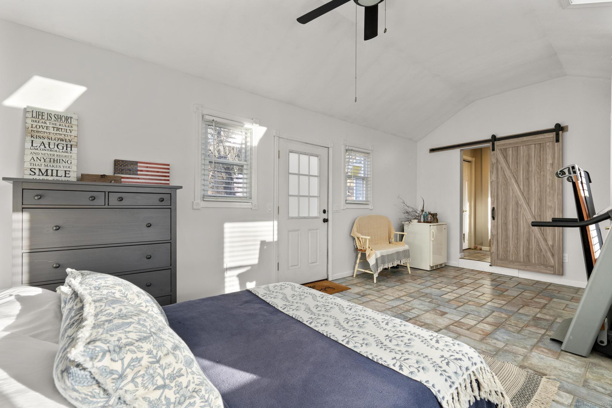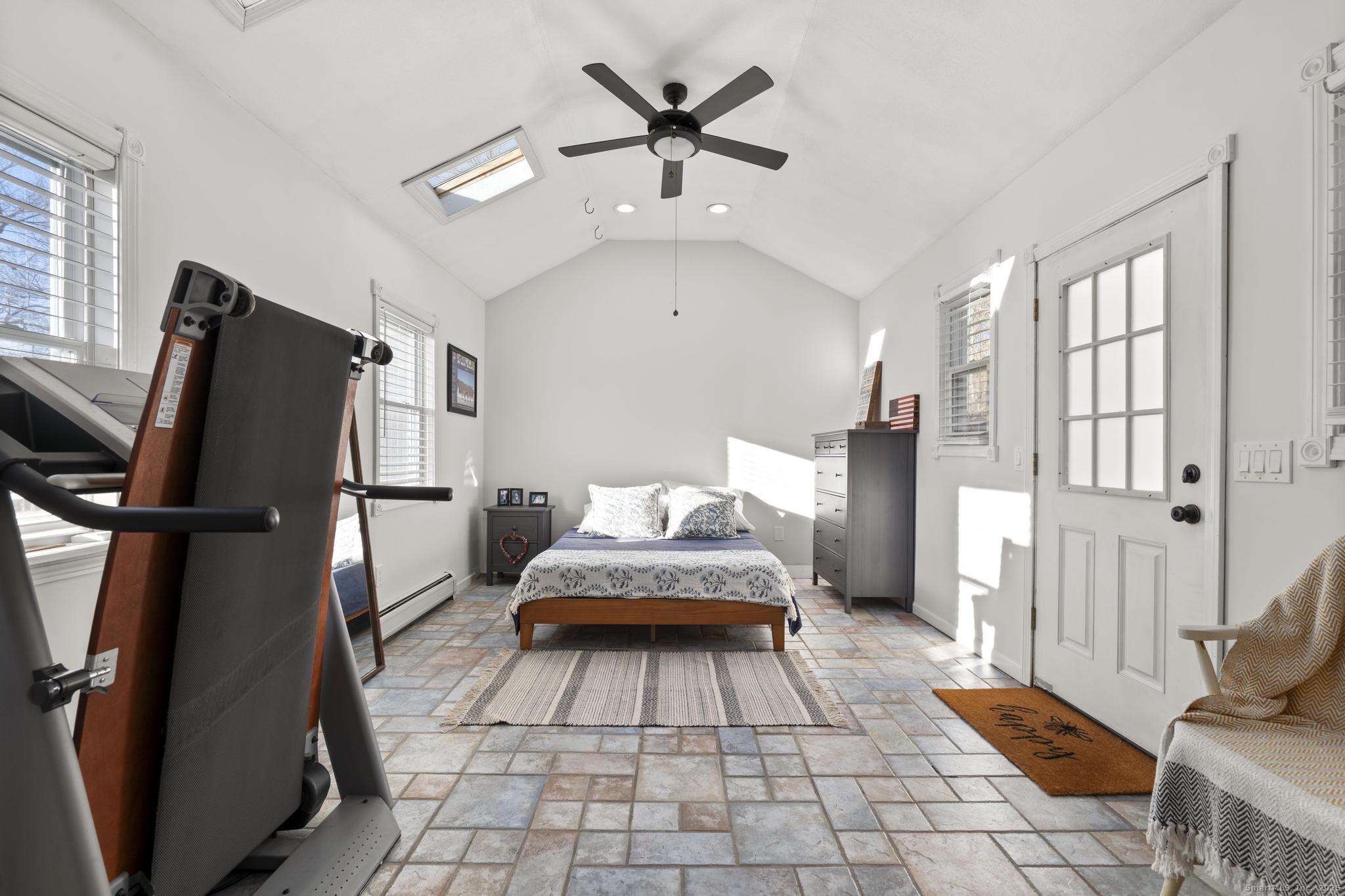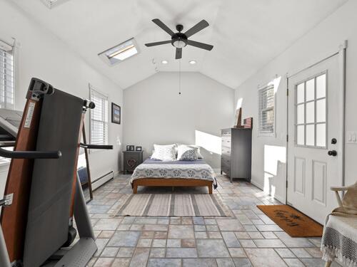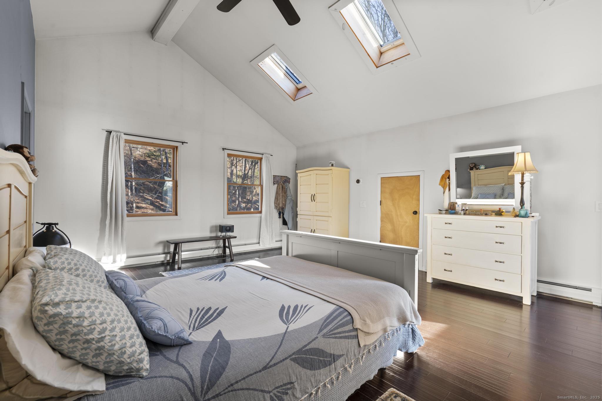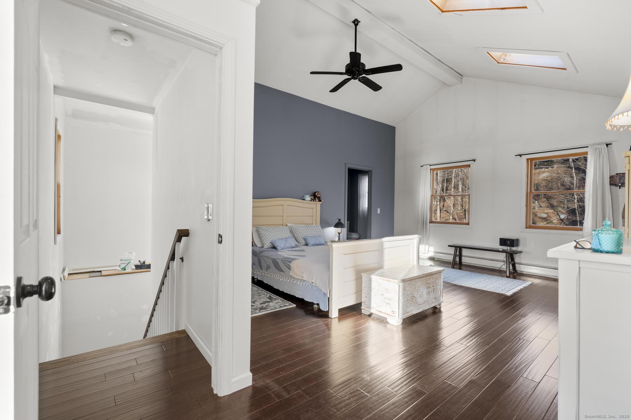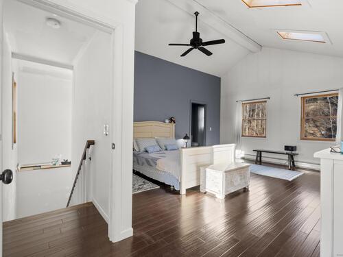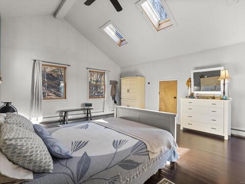 Skylight, Vaulted Ceiling, Bedroom Suite, Ceiling Fan, Full Bath, Hardwood Floor