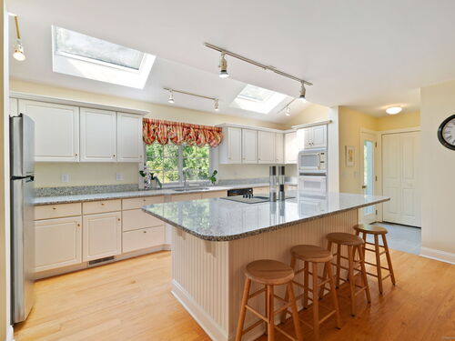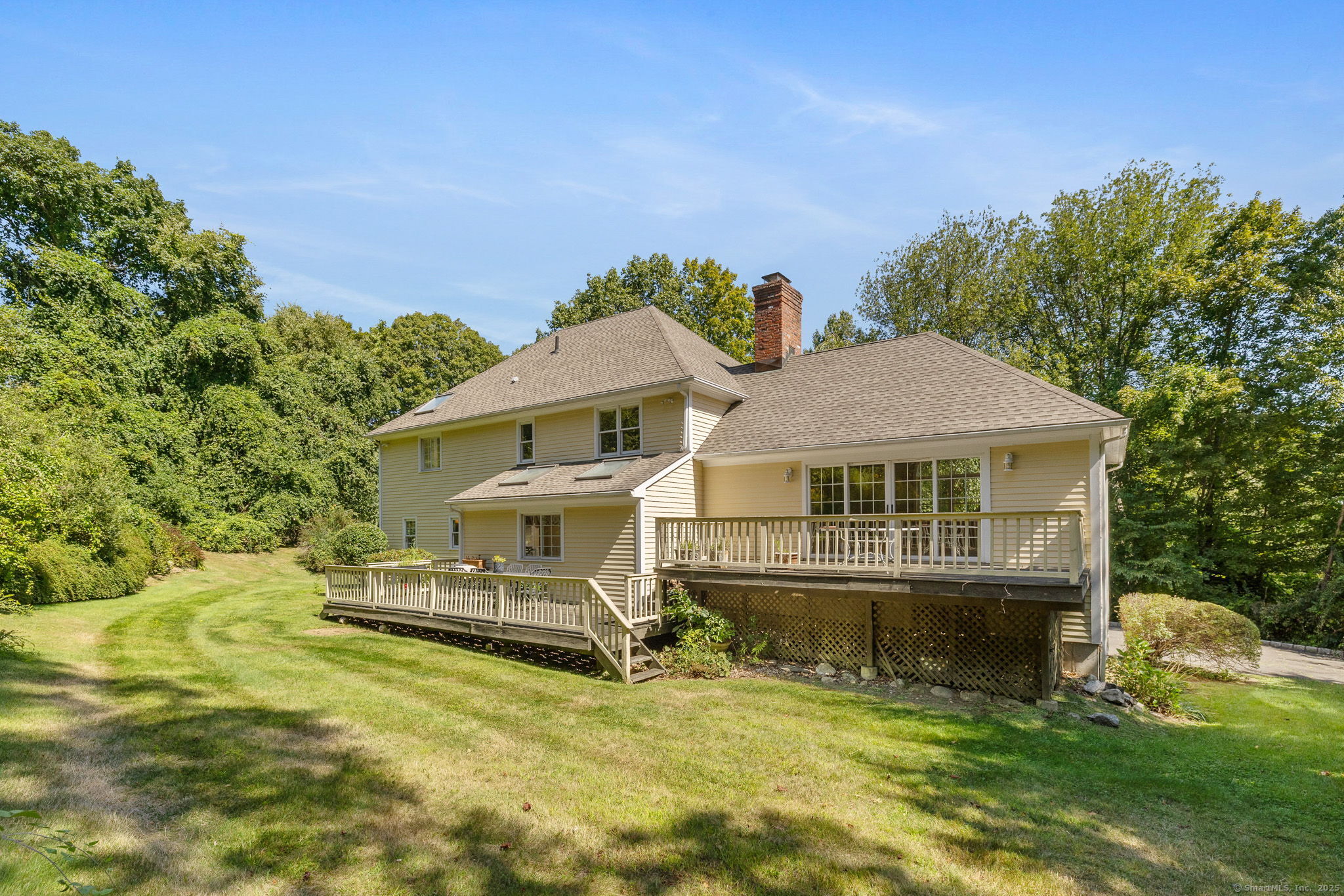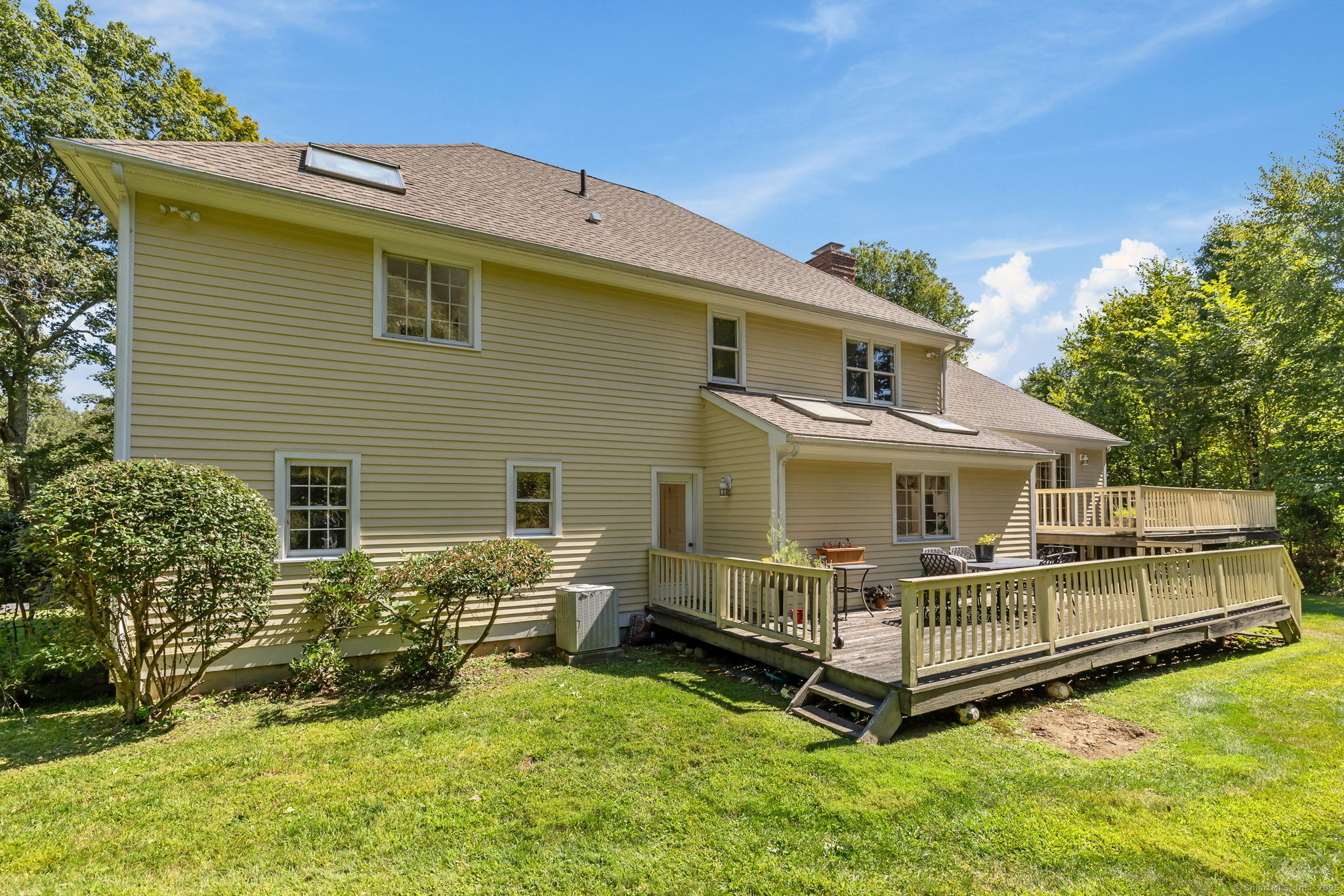 Exceptional Opportunity in a Prime Natural Setting Nestled on two private acres directly across from the Cherry Grove Preserve, this spacious 4-bedroom, 3.5-bath colonial offers a rare blend of character, comfort, and untapped potential. With over 3,000 square feet of living space, the home features a flexible layout ideal for multi-generational living or hosting guests-highlighted by a main-level bedroom with a full bath. Craftsmanship & Charm Throughout Enjoy timeless architectural details including 3" oak hardwood floors, elegant crown molding, chair rail accents, and a gracefully curved staircase. The expansive 21' x 25' family room is a true showpiece, features vaulted ceilings, a fireplace, and dual sliding doors that open to the deck-perfect for entertaining or quiet reflection. Updated Essentials, The kitchen features granite countertops, while key improvements-such as a newer roof and furnace (both approx. 10 years old), updated septic pump chamber, and modern torsion bar garage doors-offer peace of mind. The home is being sold as-is, presenting a golden opportunity to customize finishes and outdoor spaces to your personal style. Two decks, a private backyard, and a garden area create a tranquil retreat with direct access to the Cherry Grove Preserve-ideal for nature lovers, hikers, or anyone seeking a peaceful lifestyle. While the decks work, this is a small investment compared to the lifestyle and long-term value this property offers