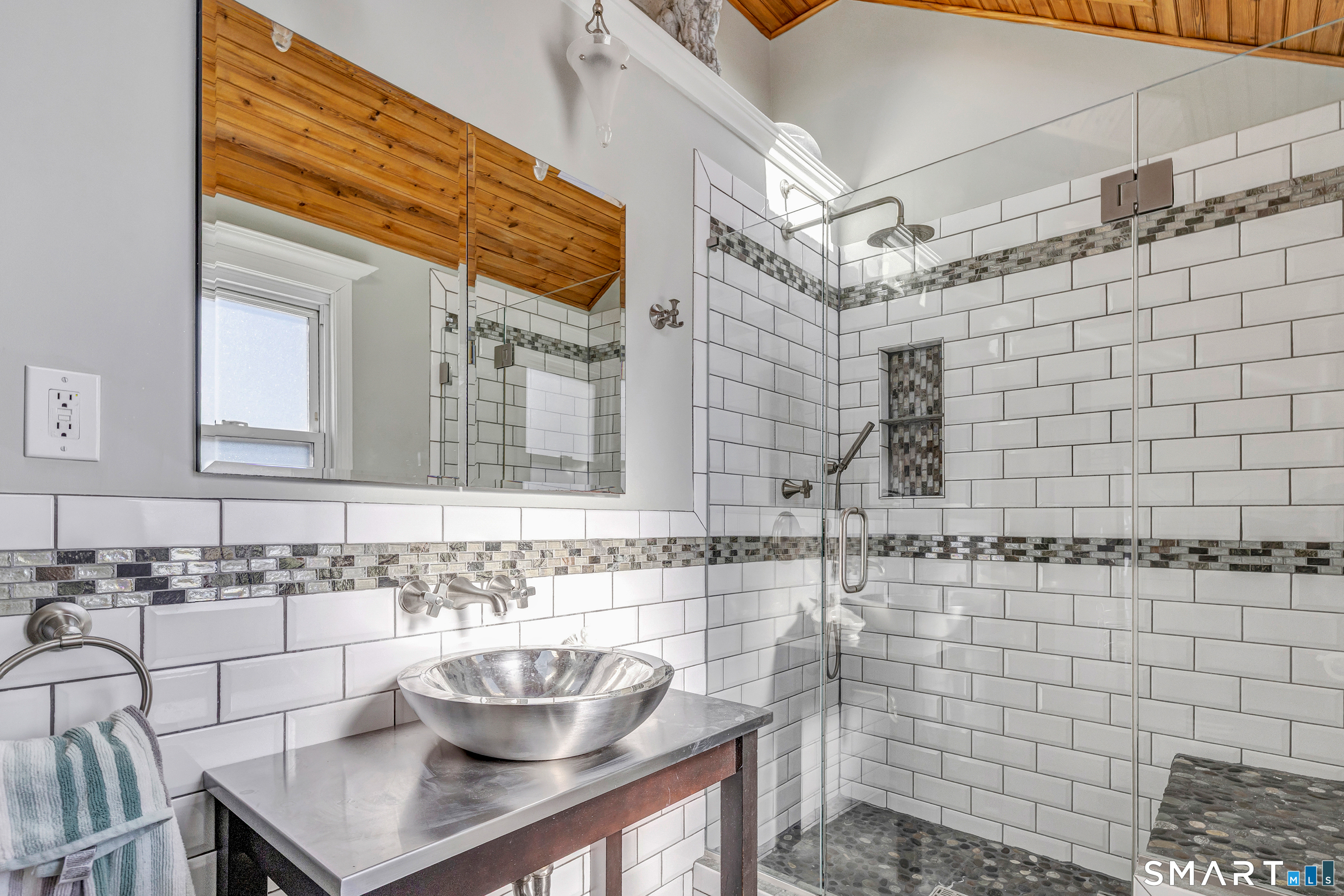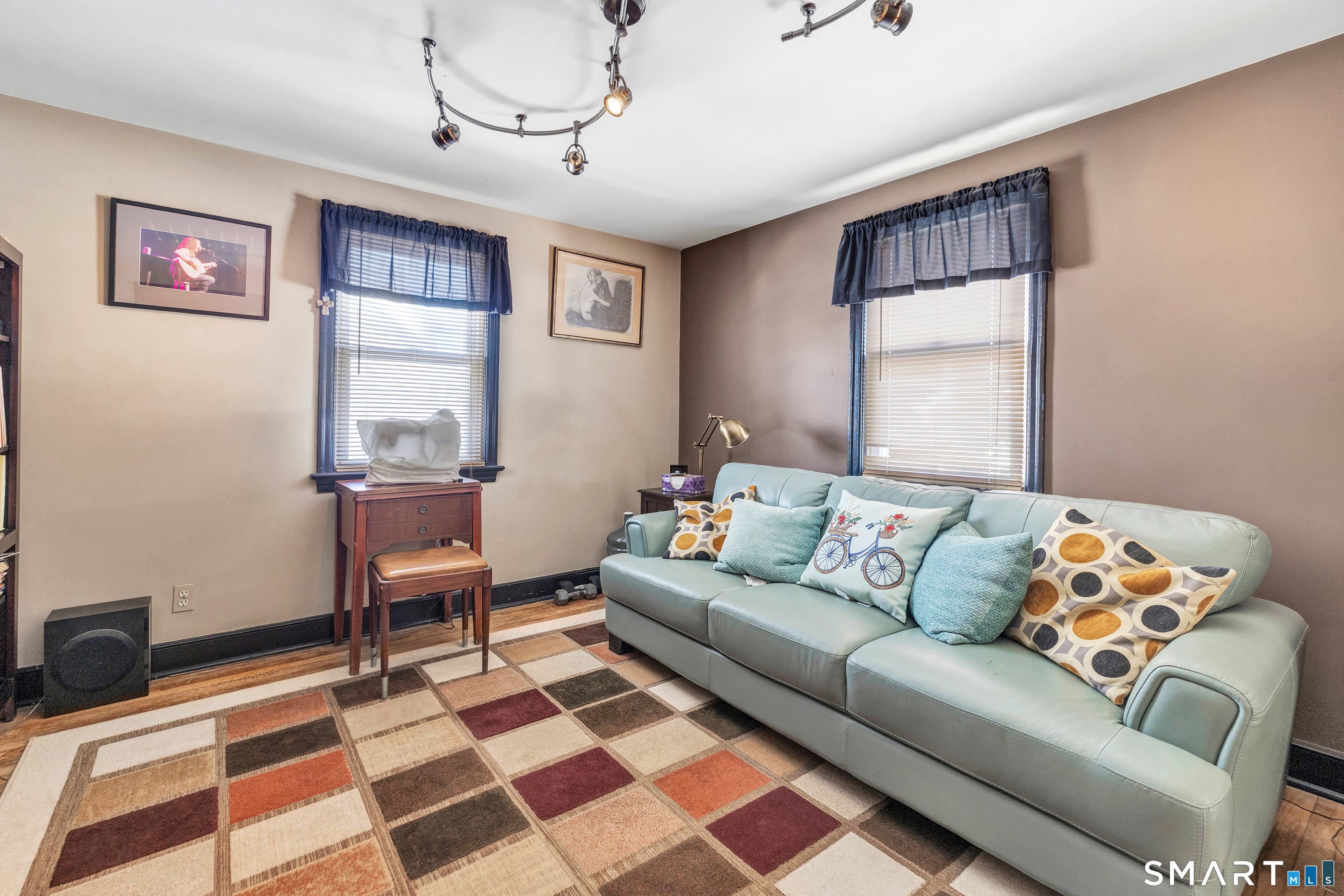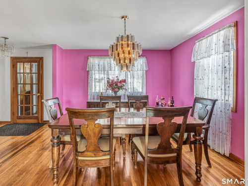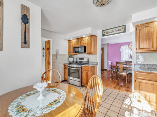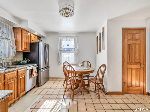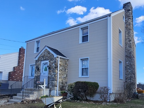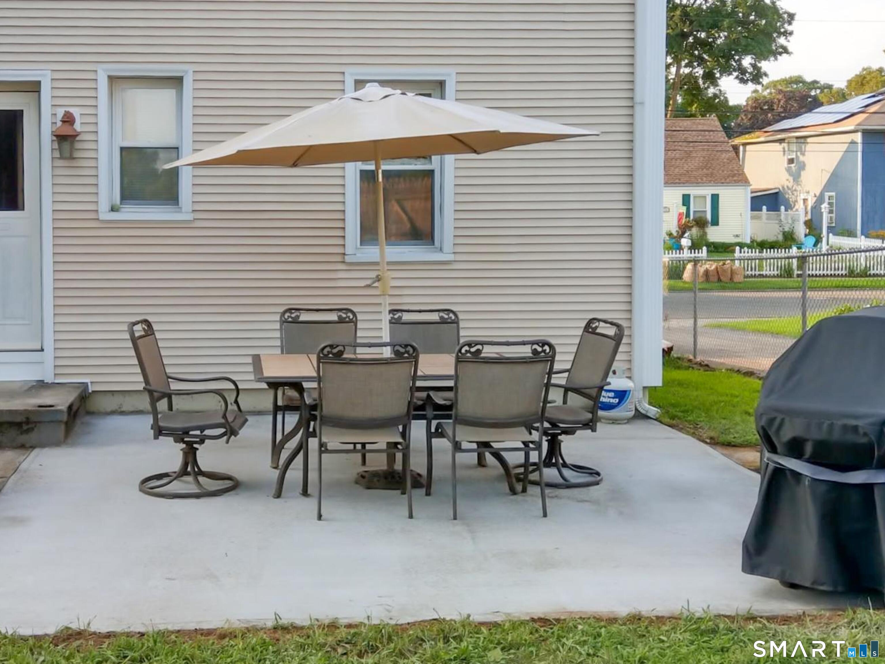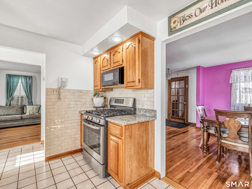 The possibilities are endless in this beautiful center-hall colonial located in the North End of Bridgeport. Current owners have occupied the property for over 30 years! Walk into entry way with coat closet. To the right is a front to back living room with fireplace and newly refinished oak floors. To the left is a large dining room with newly refinished oak floors. Large eat-in-kitchen with stainless steel appliances, granite countertops, half bath and door to patio. Newly refinished oak stair treads and painted risers lead upstairs. The second floor boosts a light and bright hall with 3 bedrooms, all with oak floors and a large custom full bath with heated floor. Walk-up attic. One car garage with recessed lighting that leads into basement with loads of storage space, office/playroom and washer/dryer. Large concrete patio in the backyard to enjoy the outdoors. New roof, vinyl siding. Security system. Convenient location close to Sacred Heart, bus, shopping, library, hospital. Immediate occupancy!